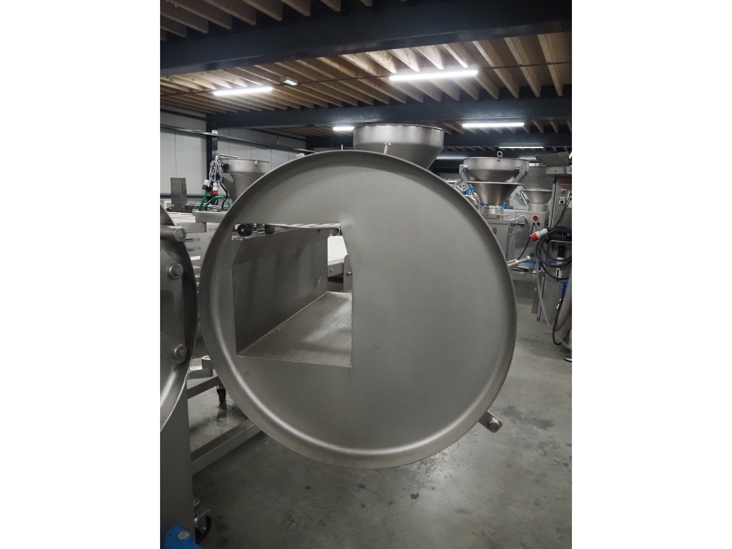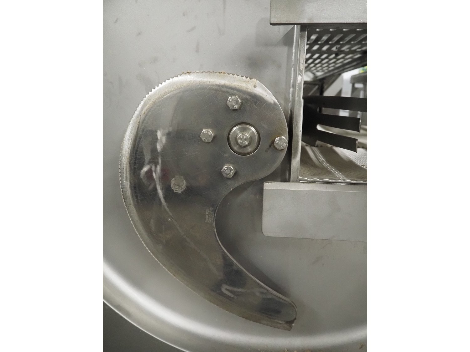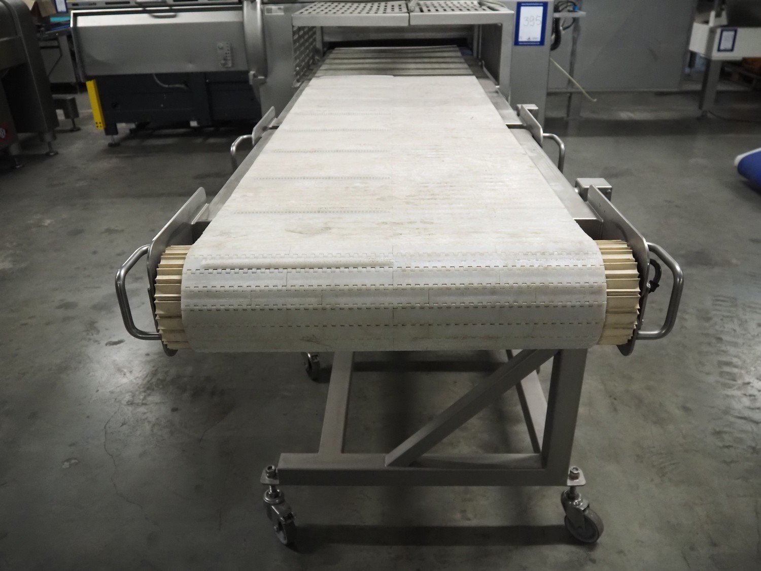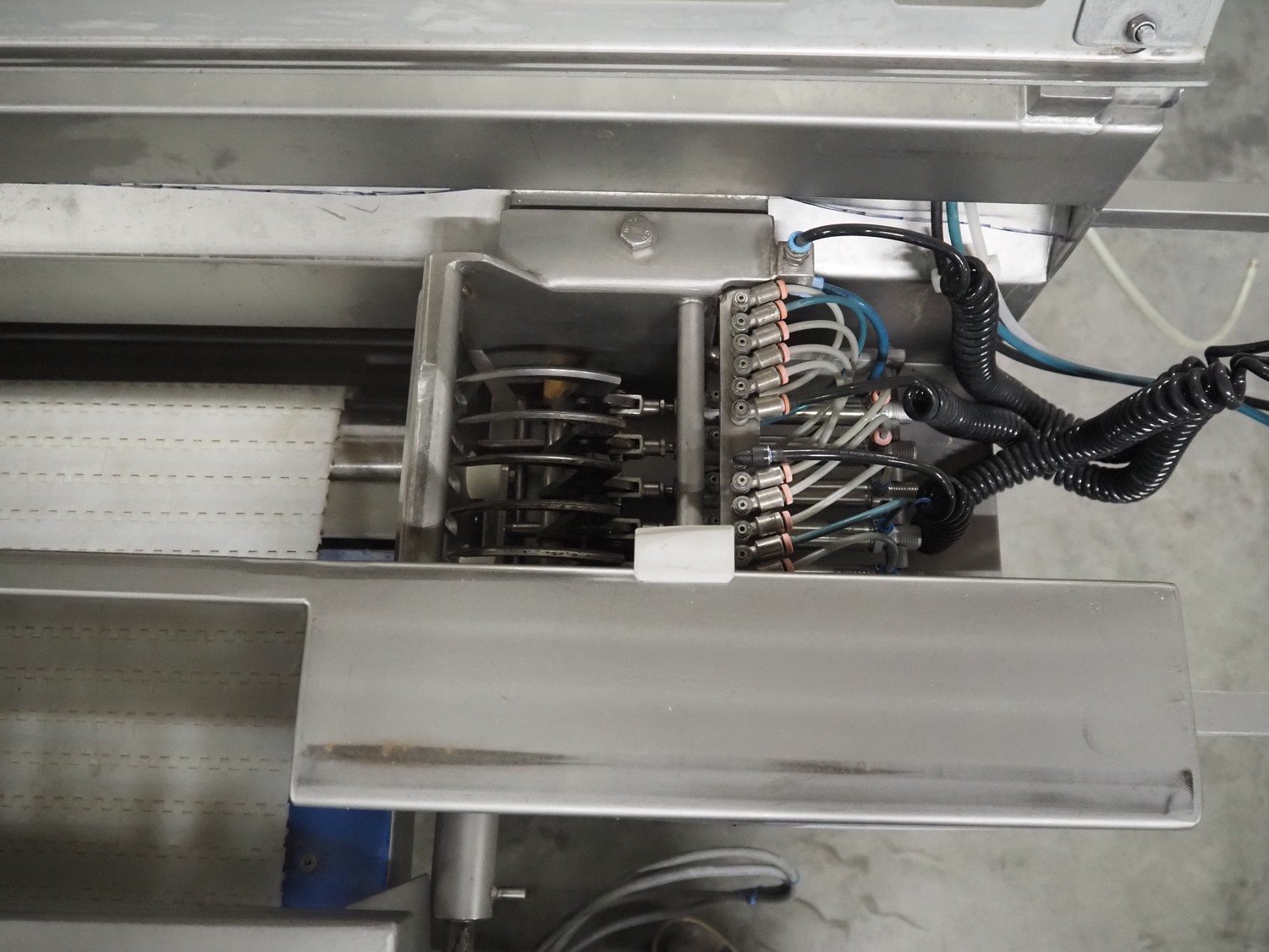 MHS Schneidetechnik GmbH slicer with infeed belt, type: IC610/21, serial number: 010604, year of construction: 2004, 400 V, 15.25 A, 6.1 kW, plastic belt, belt width: 610 mm, dimensions chamber: 210 mm x 210 mm, total dimensions: 2400 mm x 800 mm x 1500 mm, dimensions infeed belt: 2700 mm x 860 mm x 1500 mm.
