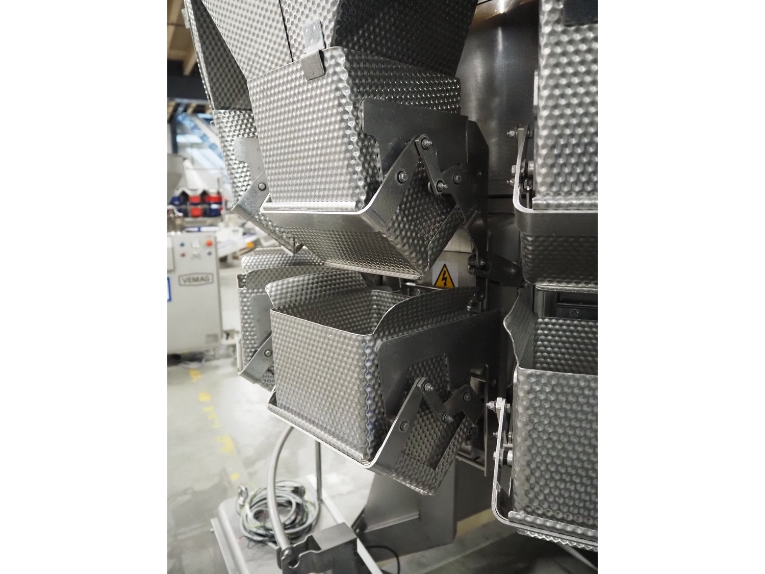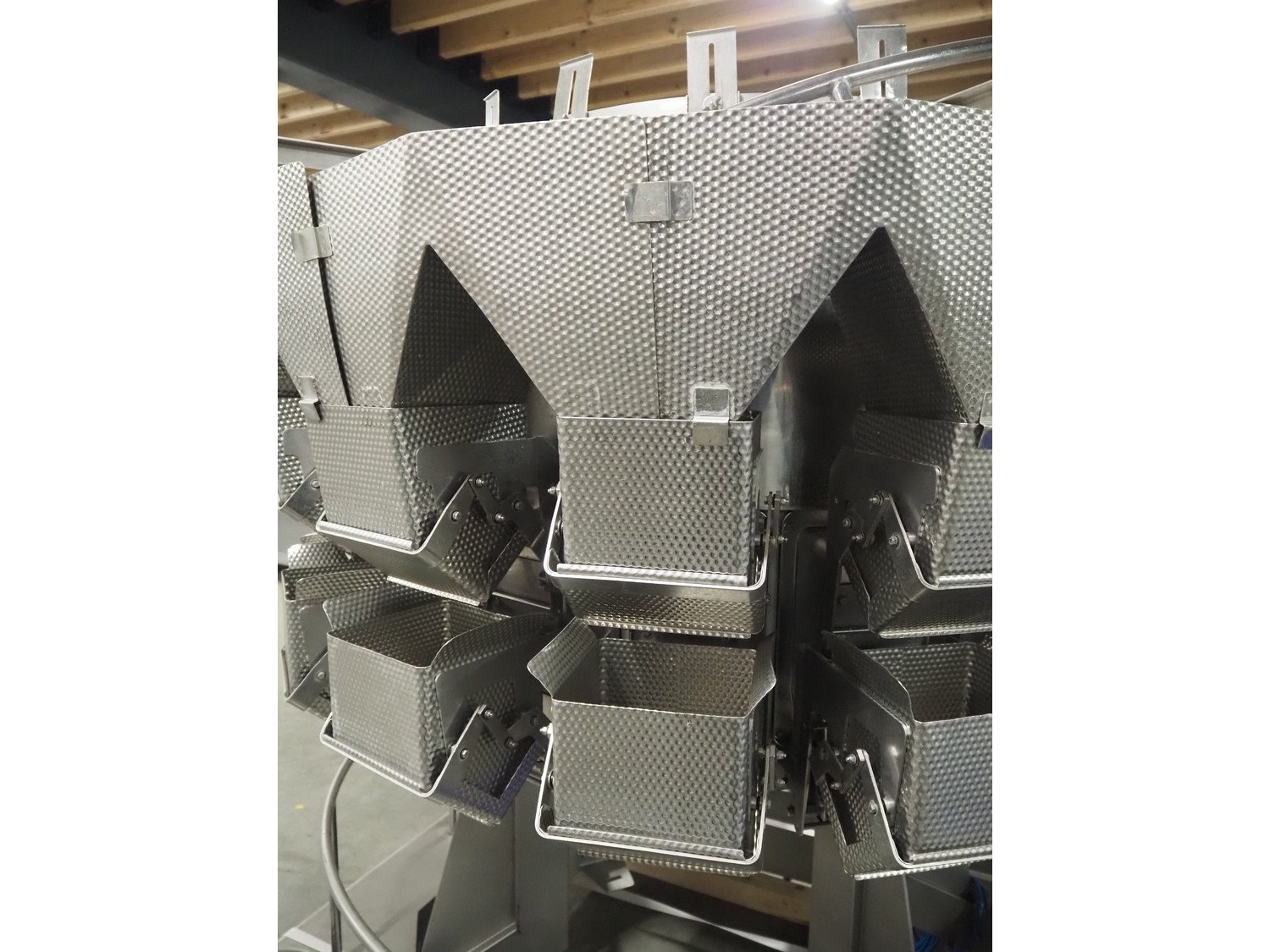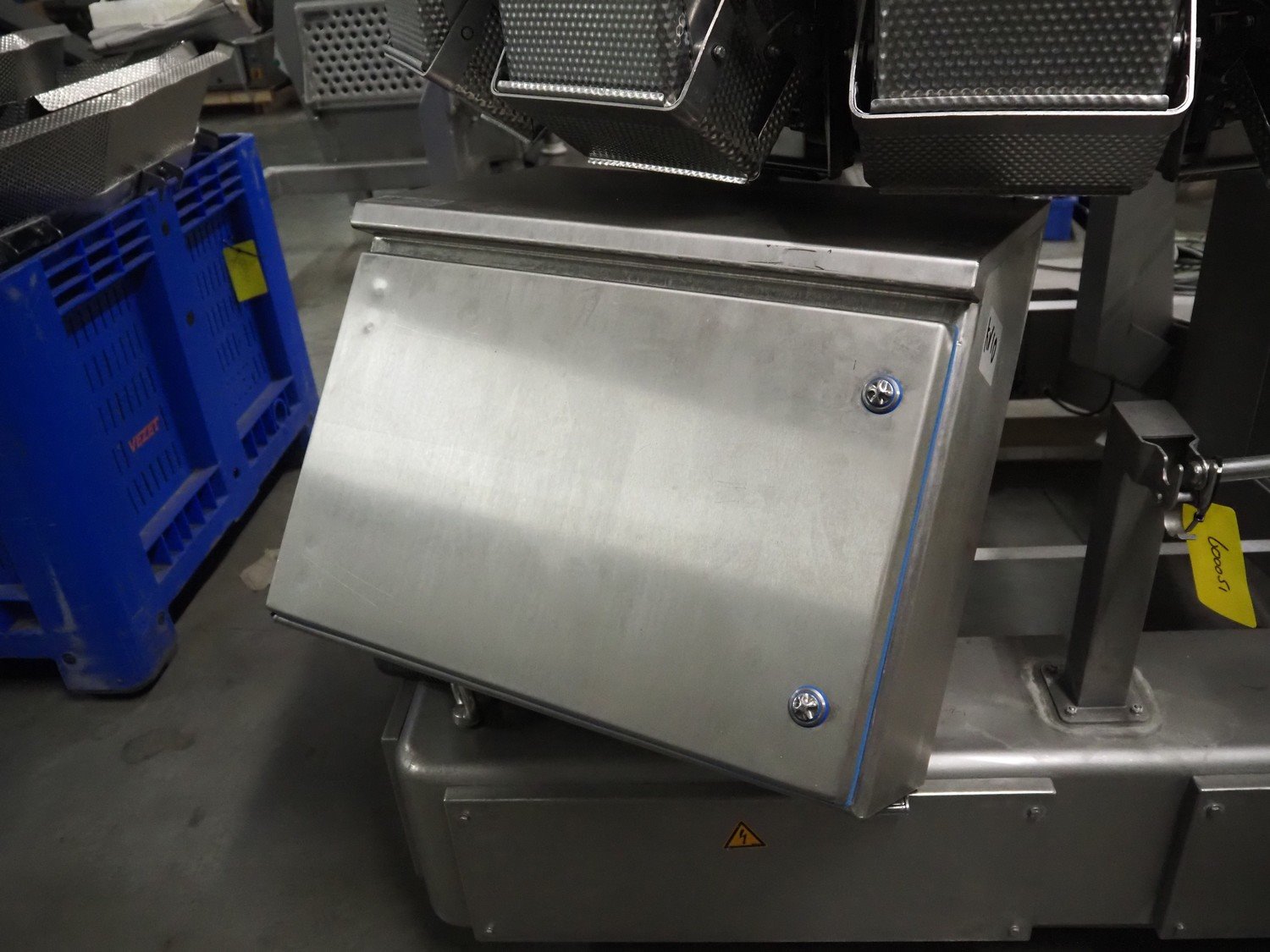 Ishida 14-heads multihead weigher, model: CCW-EM-214W-S/50-WR, serial number: 555175, year of construction: 2005, 220 V, 1 Ph, 50 Hz, 7 A, weight: 920 kg, dimensions: 1850 mm x 1700 mm x 2200 mm. Including pallet box with parts, dimensions pallet box: 1200 mm x 1000 mm x 1250 mm.