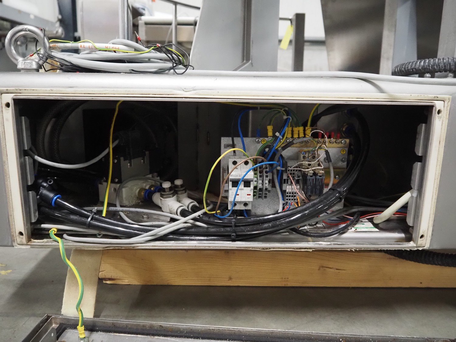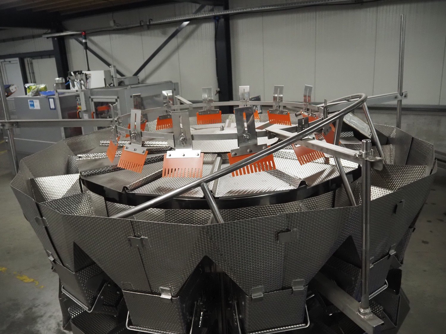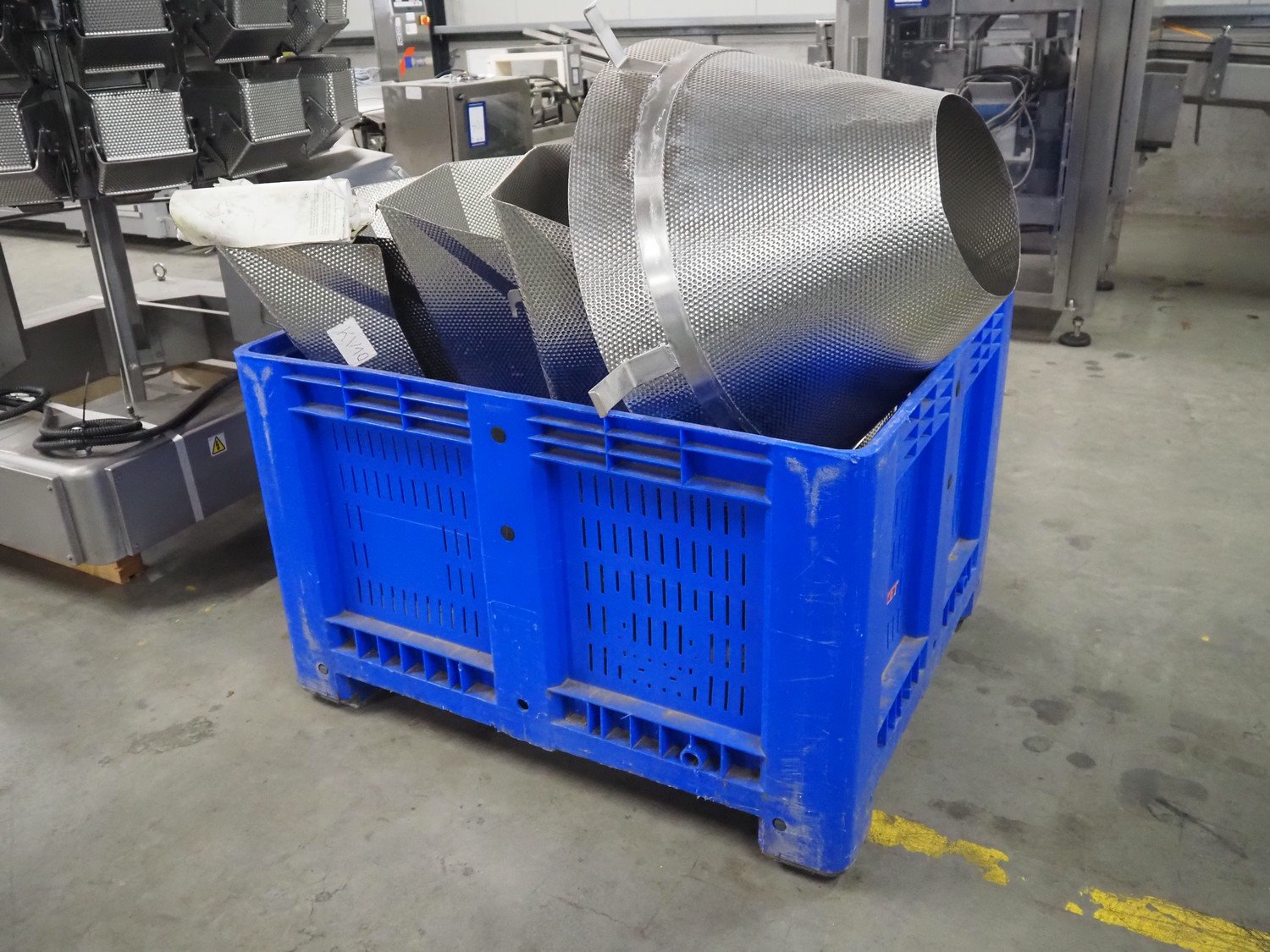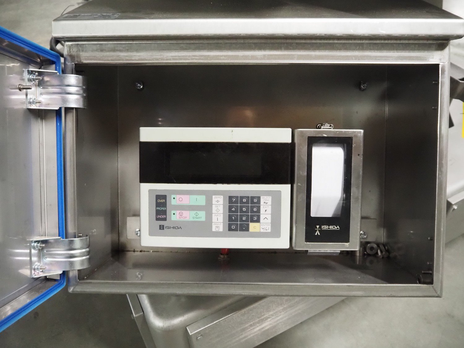 Ishida 14-heads multihead weigher, model: CCW-EM-214W-S/50-WR, serial number: 555175, year of construction: 2005, 220 V, 1 Ph, 50 Hz, 7 A, weight: 920 kg, dimensions: 1850 mm x 1700 mm x 2200 mm. Including pallet box with parts, dimensions pallet box: 1200 mm x 1000 mm x 1250 mm.