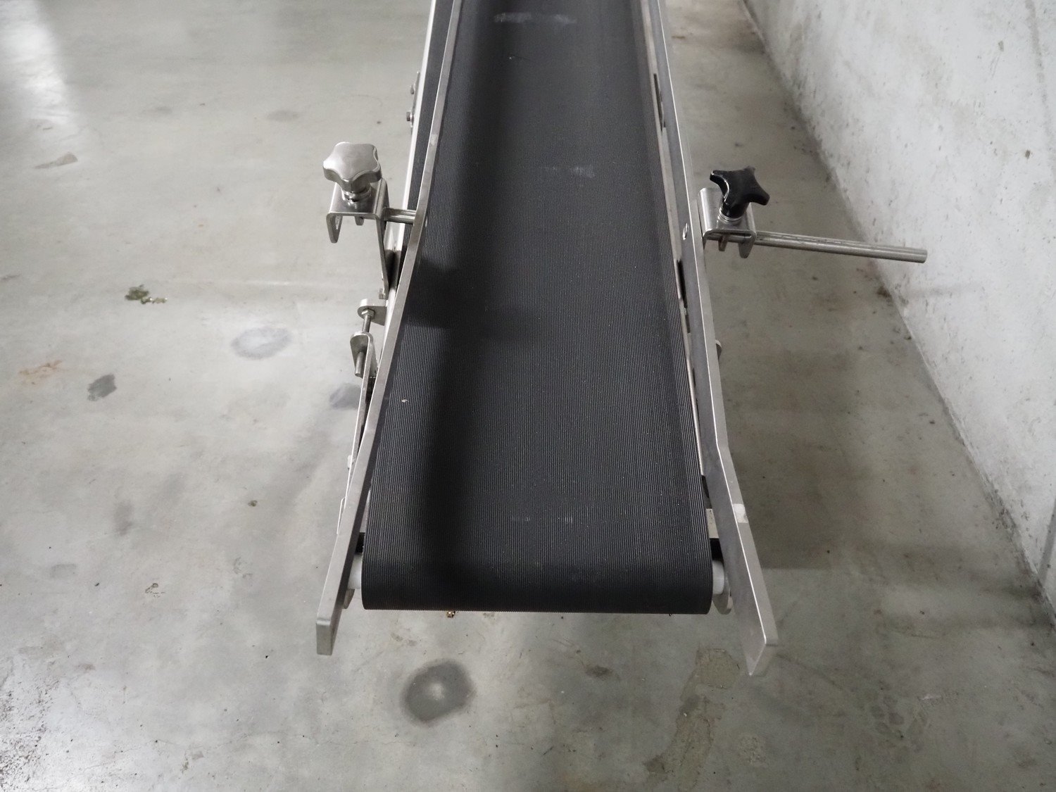 Elevating belt, s/s frame, plastic belt, belt width: 300 mm, elevating height: 1050 mm, total dimensions: 3500 mm x 570 mm x 1170 mm.