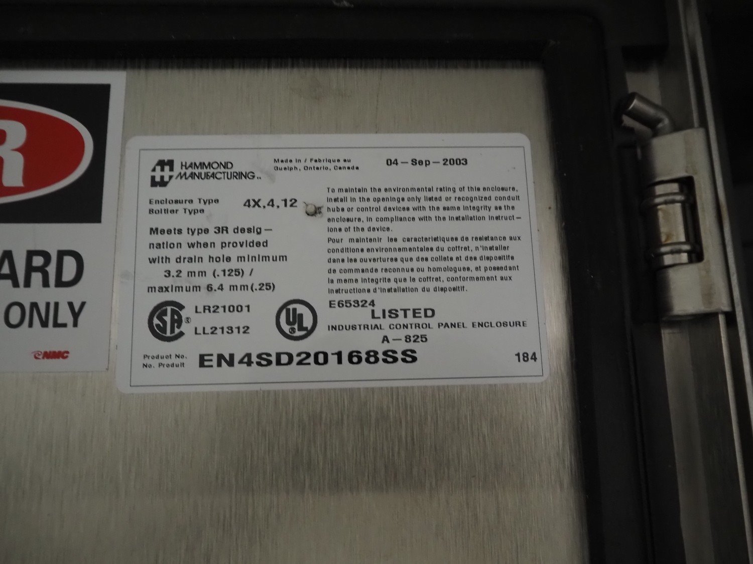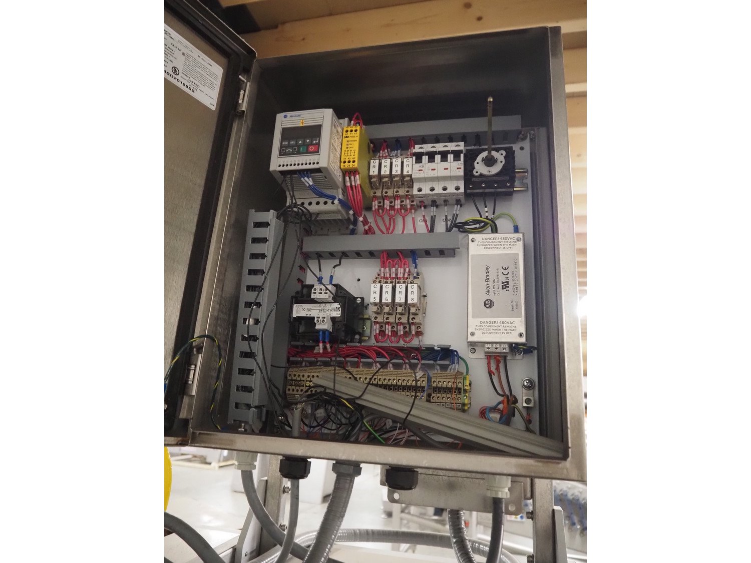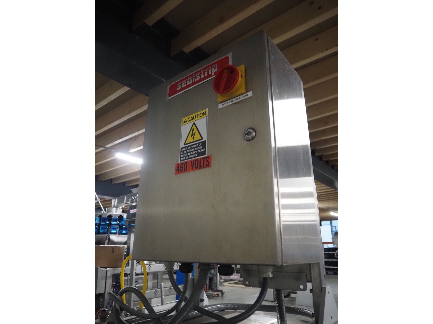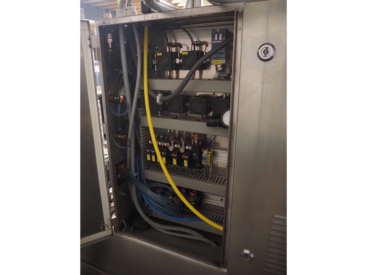 Cryovac horizontal form, fill and seal machine, type: CJ55 MD-BDF, serial number: A91600205, year of construction: 2000, 400 V, 50 Hz, 8 A, 5 kW, plastic belt, belt width: (2x) 200 mm, seal width: 250 mm, clearance: 200 mm x 60 mm, total dimensions: 5000 mm x 1100 mm x 2300 mm.