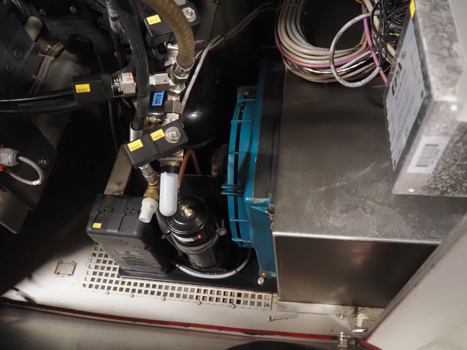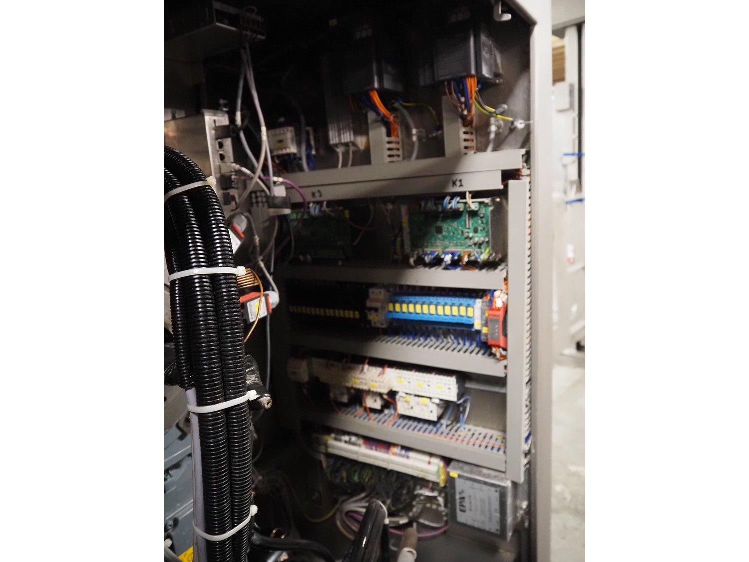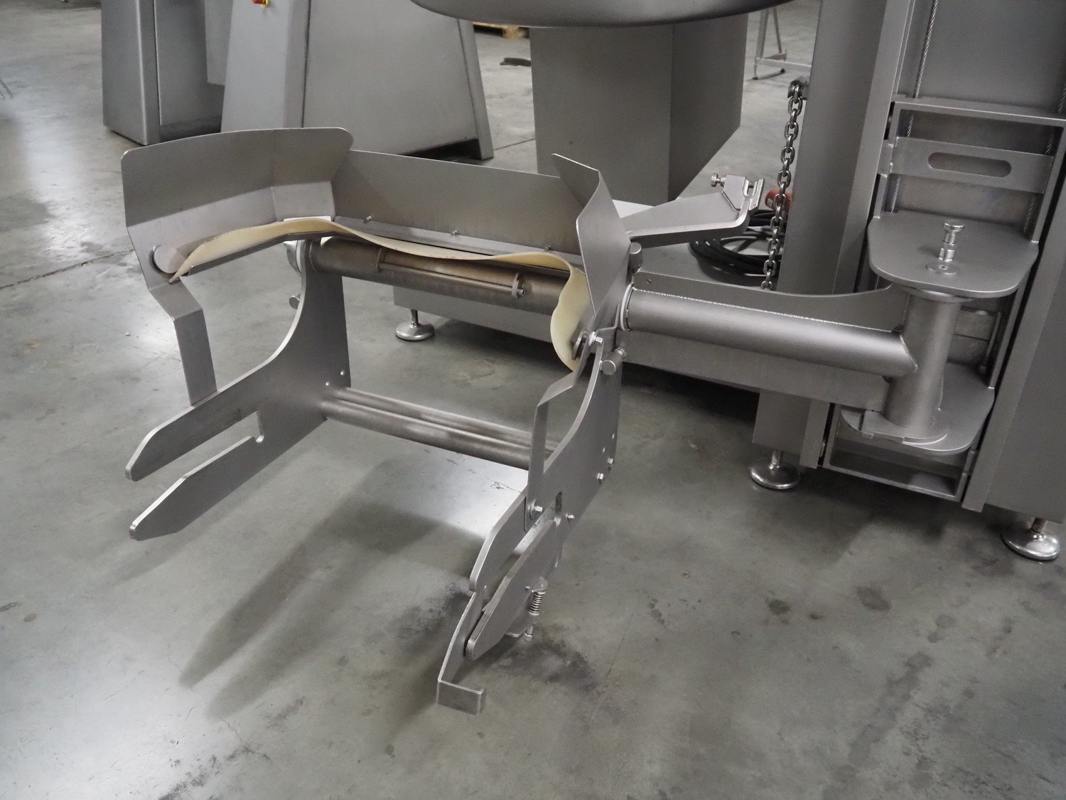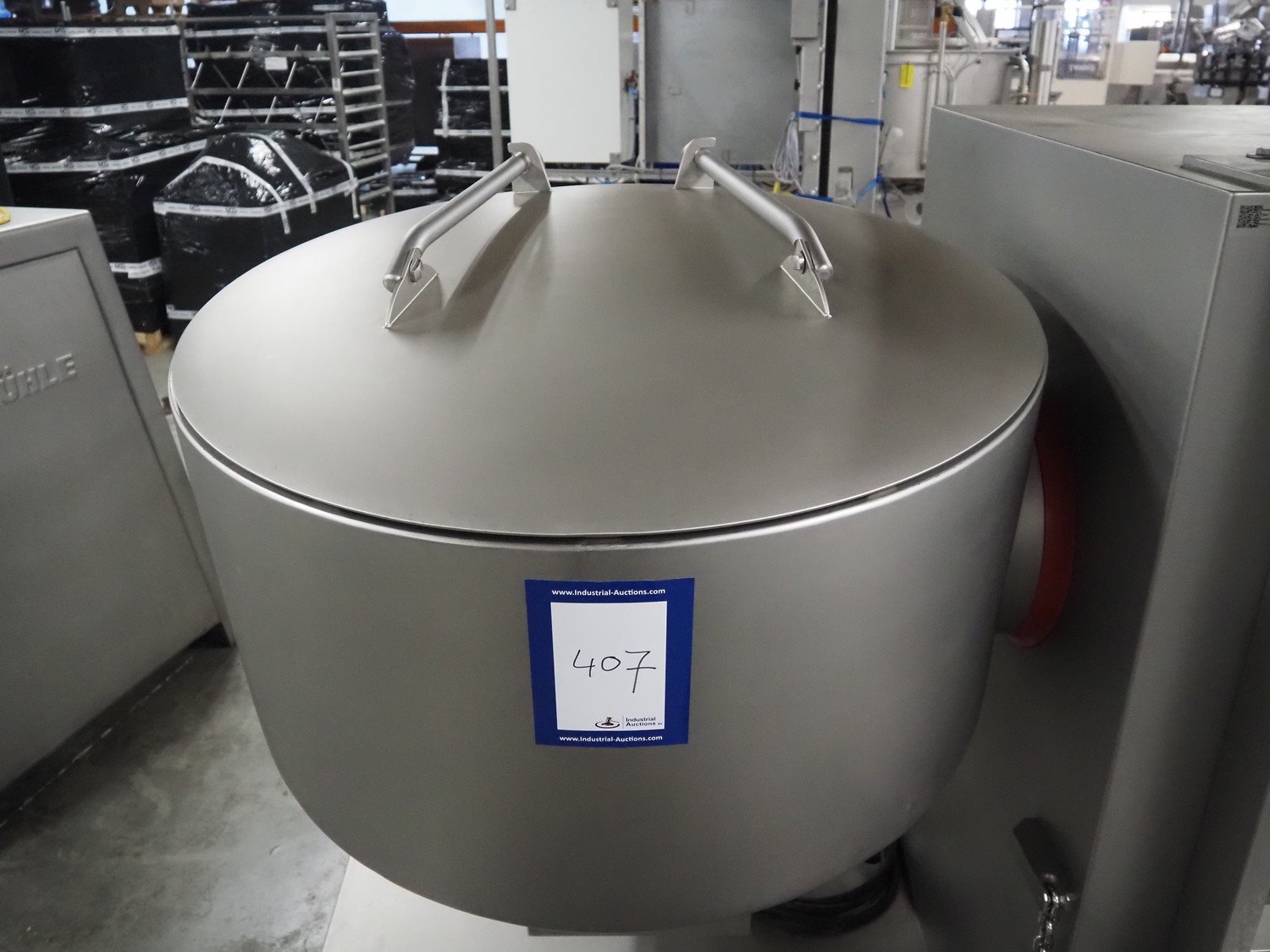 Rühle cooled vacuum tumbler / mixer with lifter for 200 liter meat bins, model: MGR 400, serial number: 10110144, year of construction: 2015, 400 V, 50 Hz, 8.9 kW, volume: 400 liter, Busch vacuum pump, capacity: 10 m³ per hour, dimensions: 2200 mm x 2100 mm x 2200 mm.