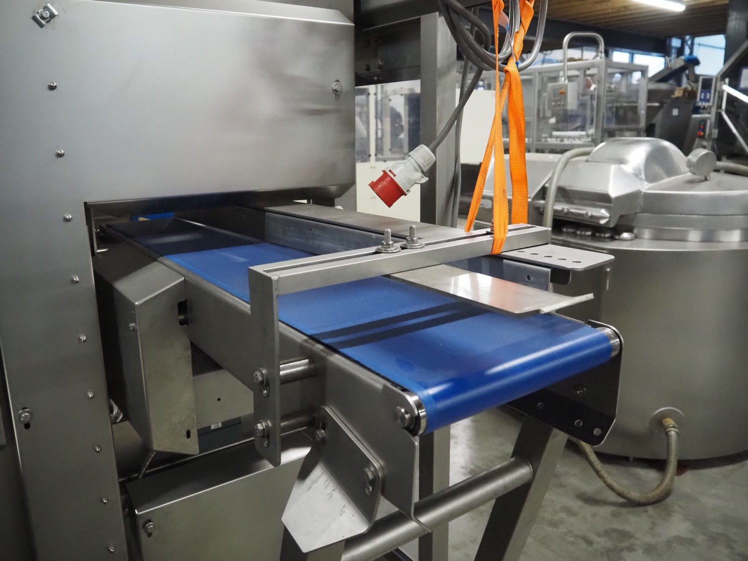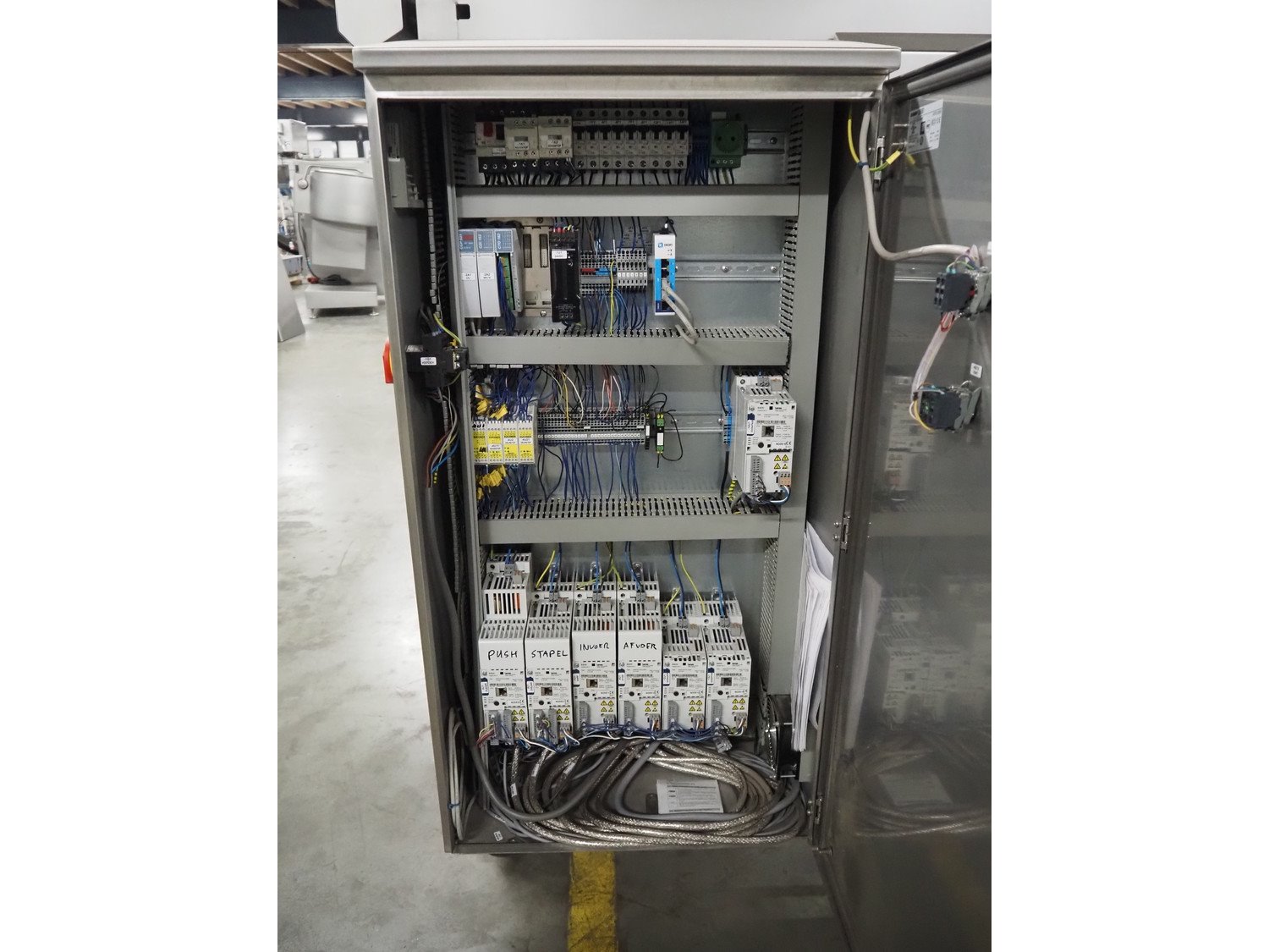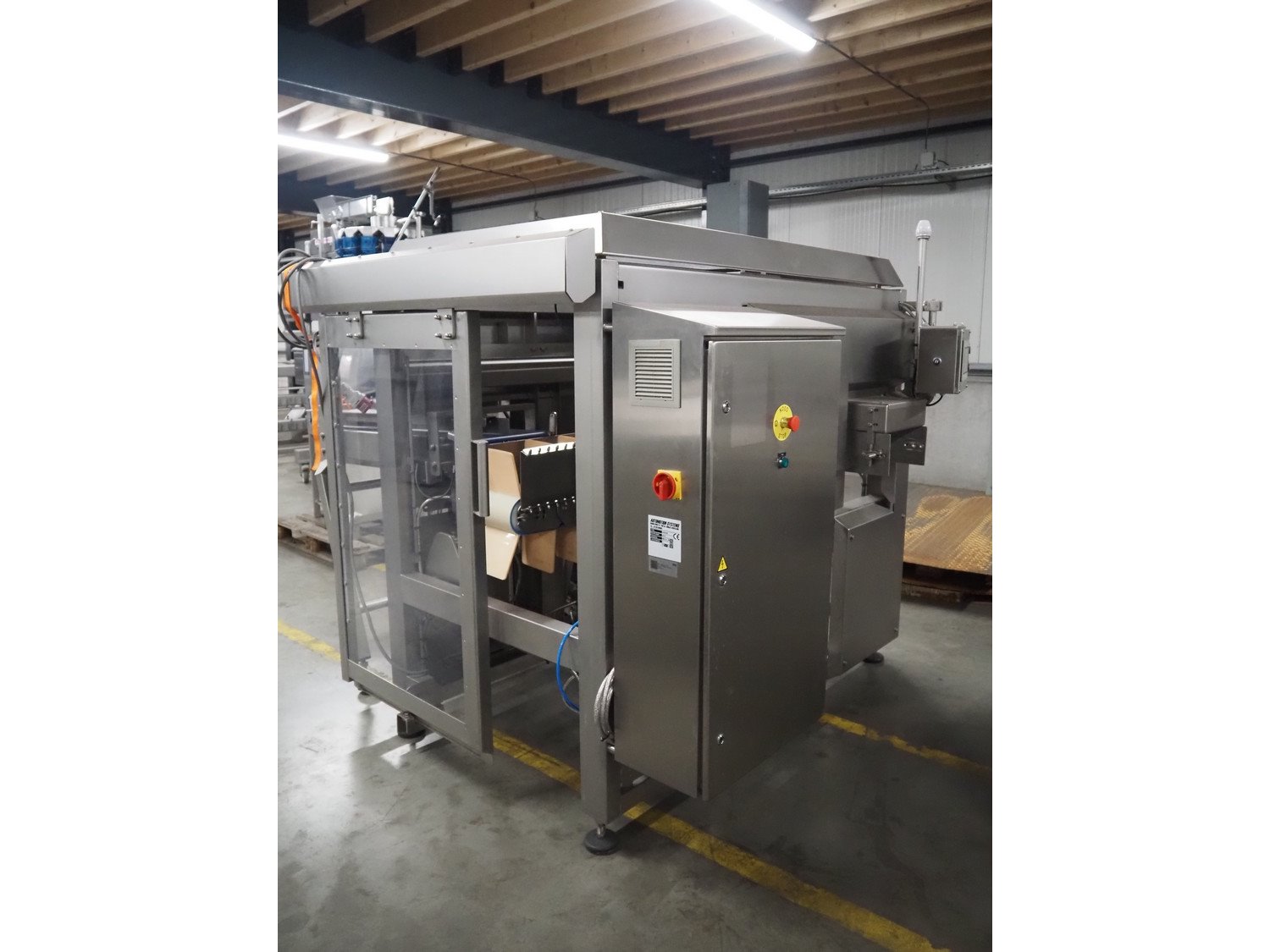 Automotion Systems BV box filling machine, type: ARE008, year of construction: 2018, 400 V, 3 Ph, 16 a, 3 kW, plastic belts, belt width: 280 mm and 170 mm, distance between dividers: 150 mm, divider height: 150 mm, total dimensions: 2300 mm x 2000 mm x 1850 mm. Including crate with extra parts.