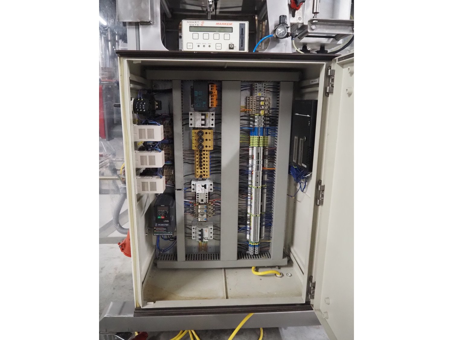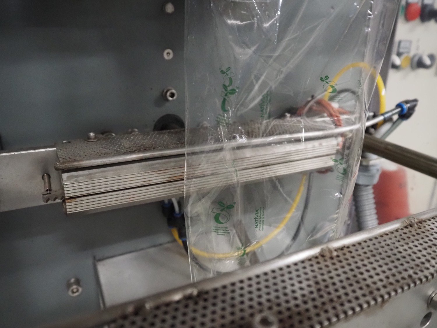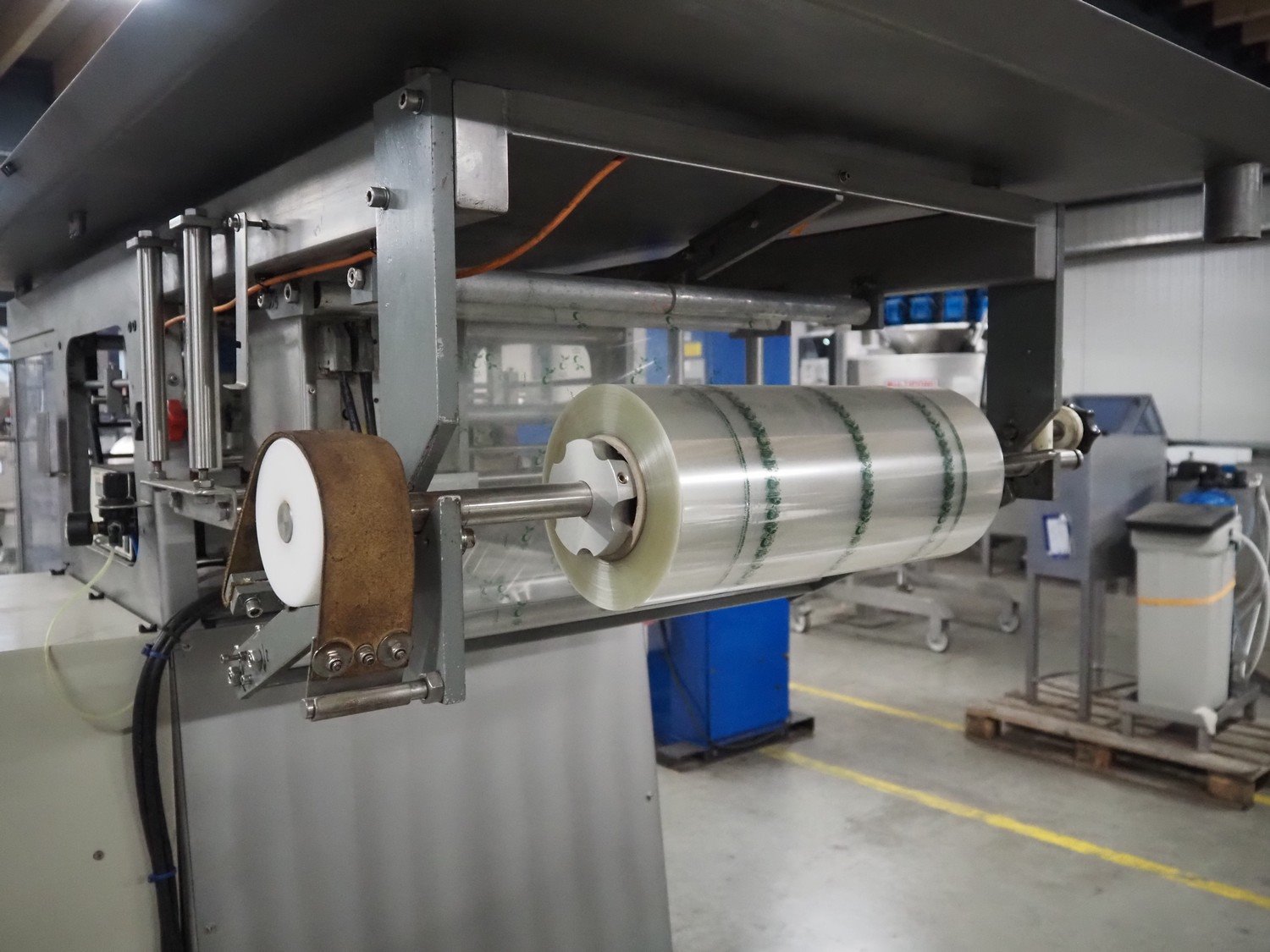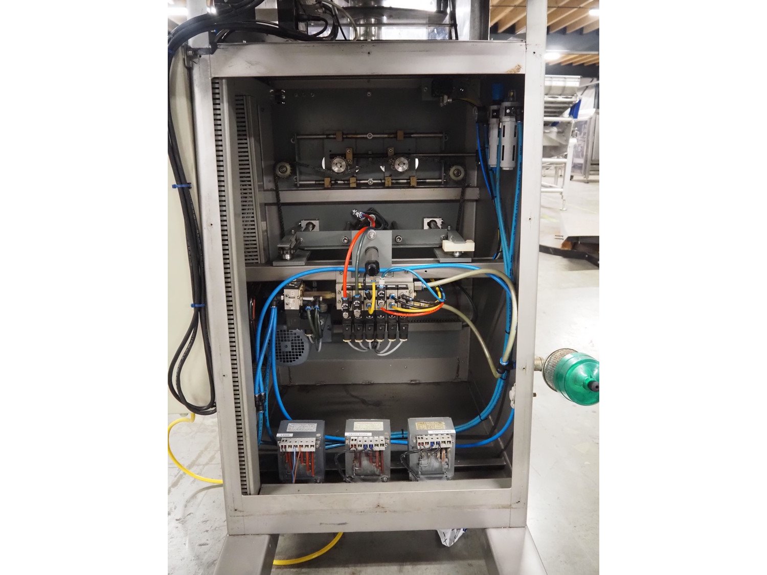 Prewa mobile vertical form-, fill-, and seal machine, type: 250, film width: 355 mm, seal length: 270 mm, total dimensions: 2800 mm x 2150 mm x 2050 mm.