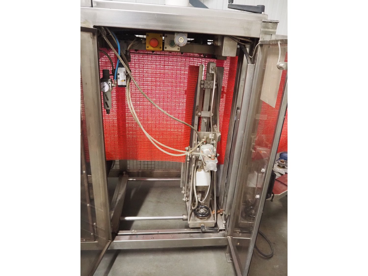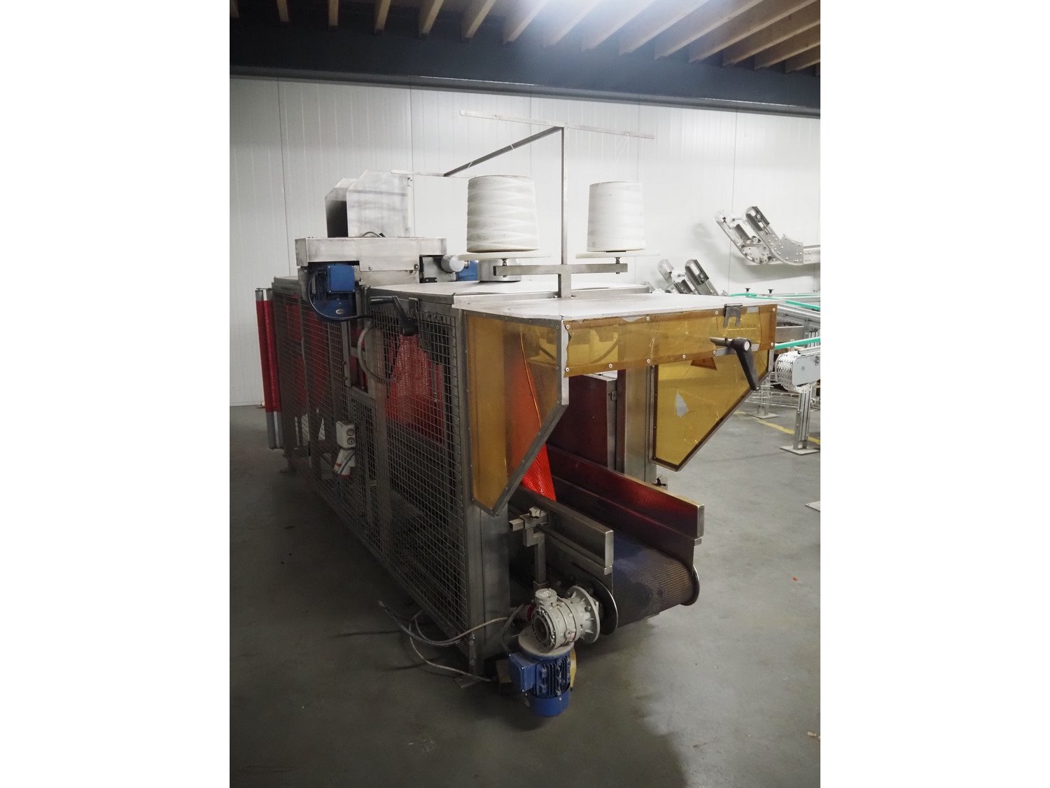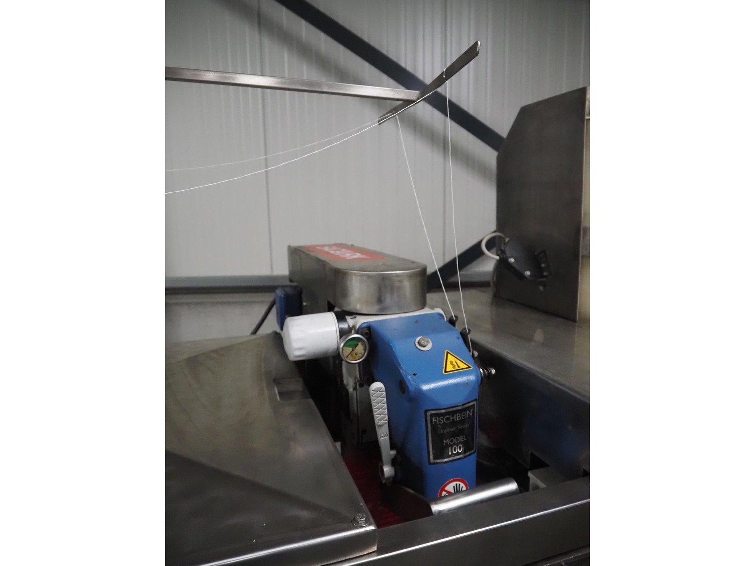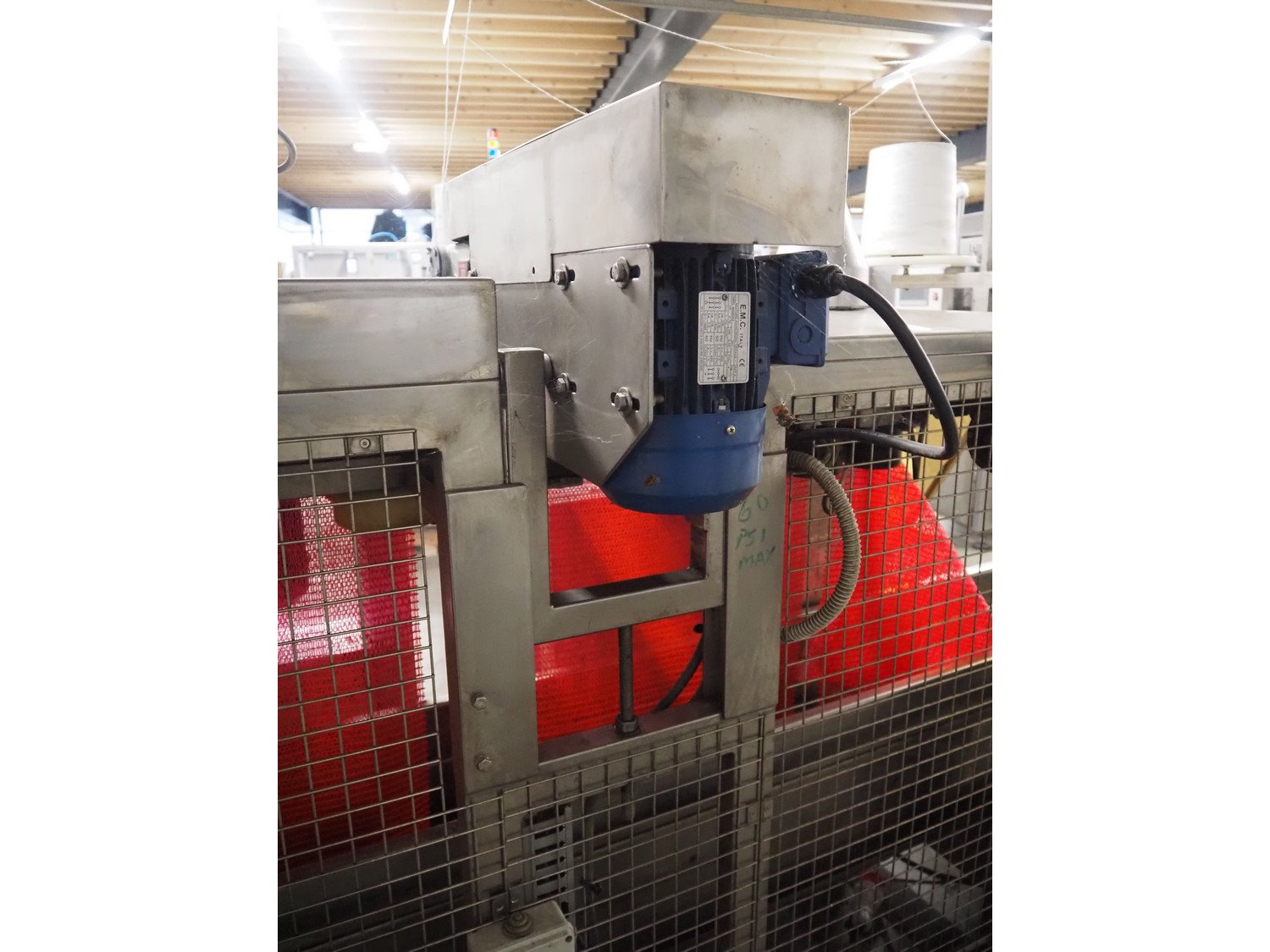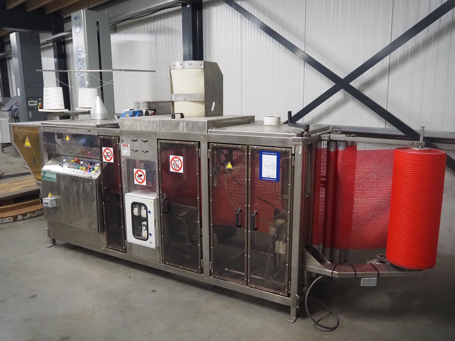 Saclark rollstock bag filling machine, type: SCH 35, number: 166 06, year of construction: 2006, 220 V, 3 Ph, 50 Hz, net width: 900 mm, plastic belt, belt width: 300 mm, total dimensions: 4000 mm x 1000 mm x 1800 mm.