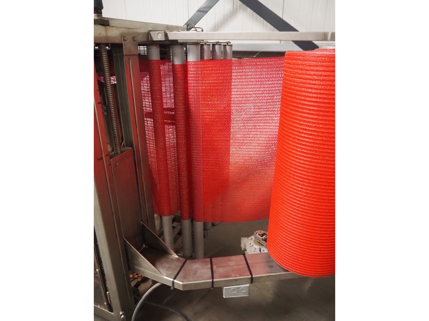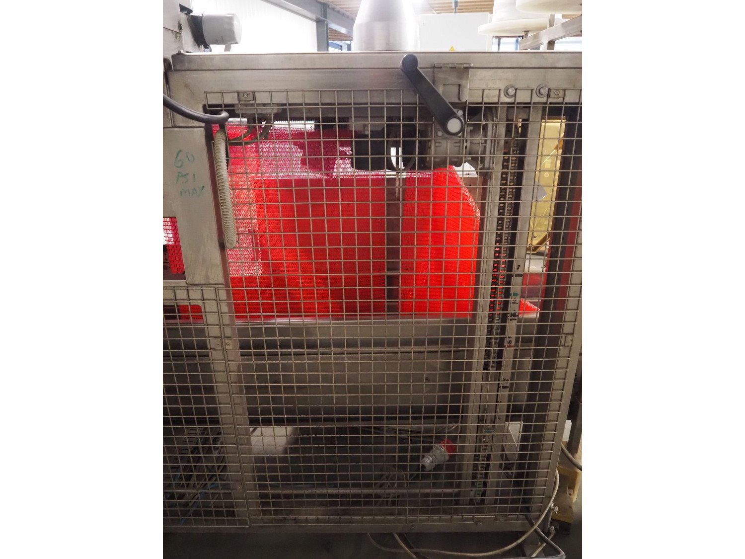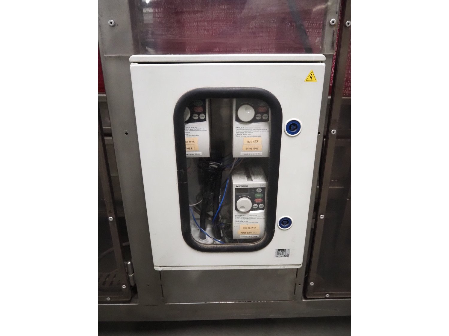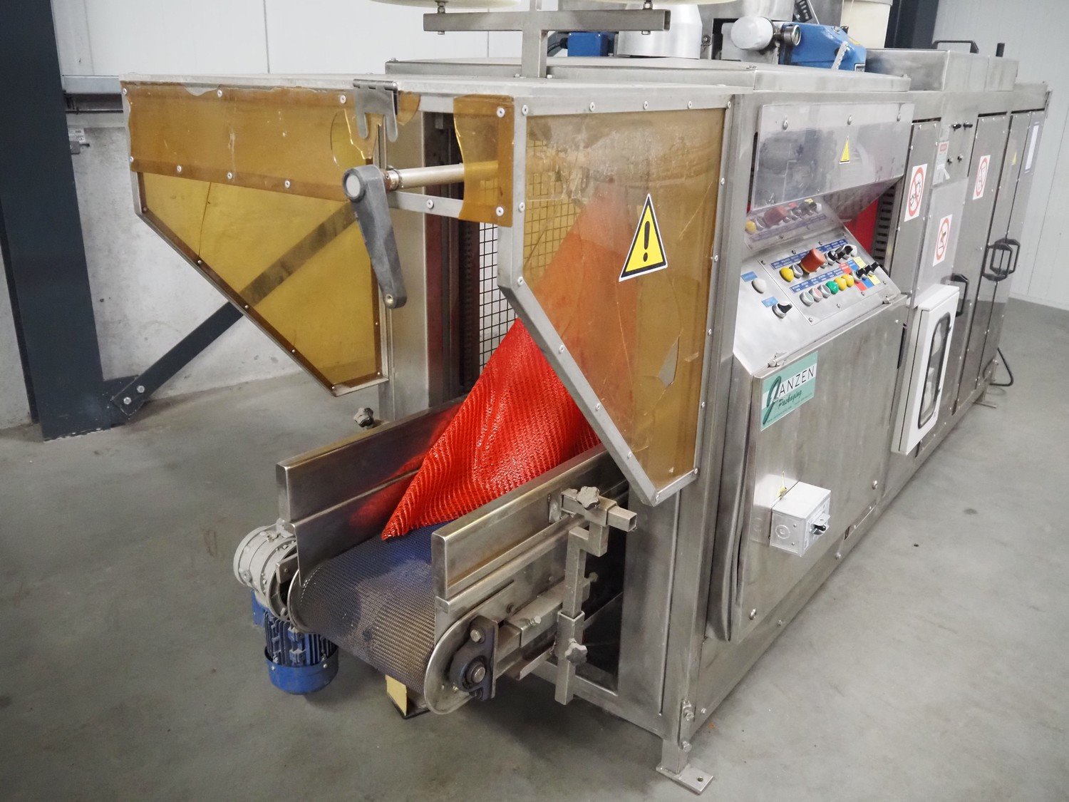 Saclark rollstock bag filling machine, type: SCH 35, number: 166 06, year of construction: 2006, 220 V, 3 Ph, 50 Hz, net width: 900 mm, plastic belt, belt width: 300 mm, total dimensions: 4000 mm x 1000 mm x 1800 mm.