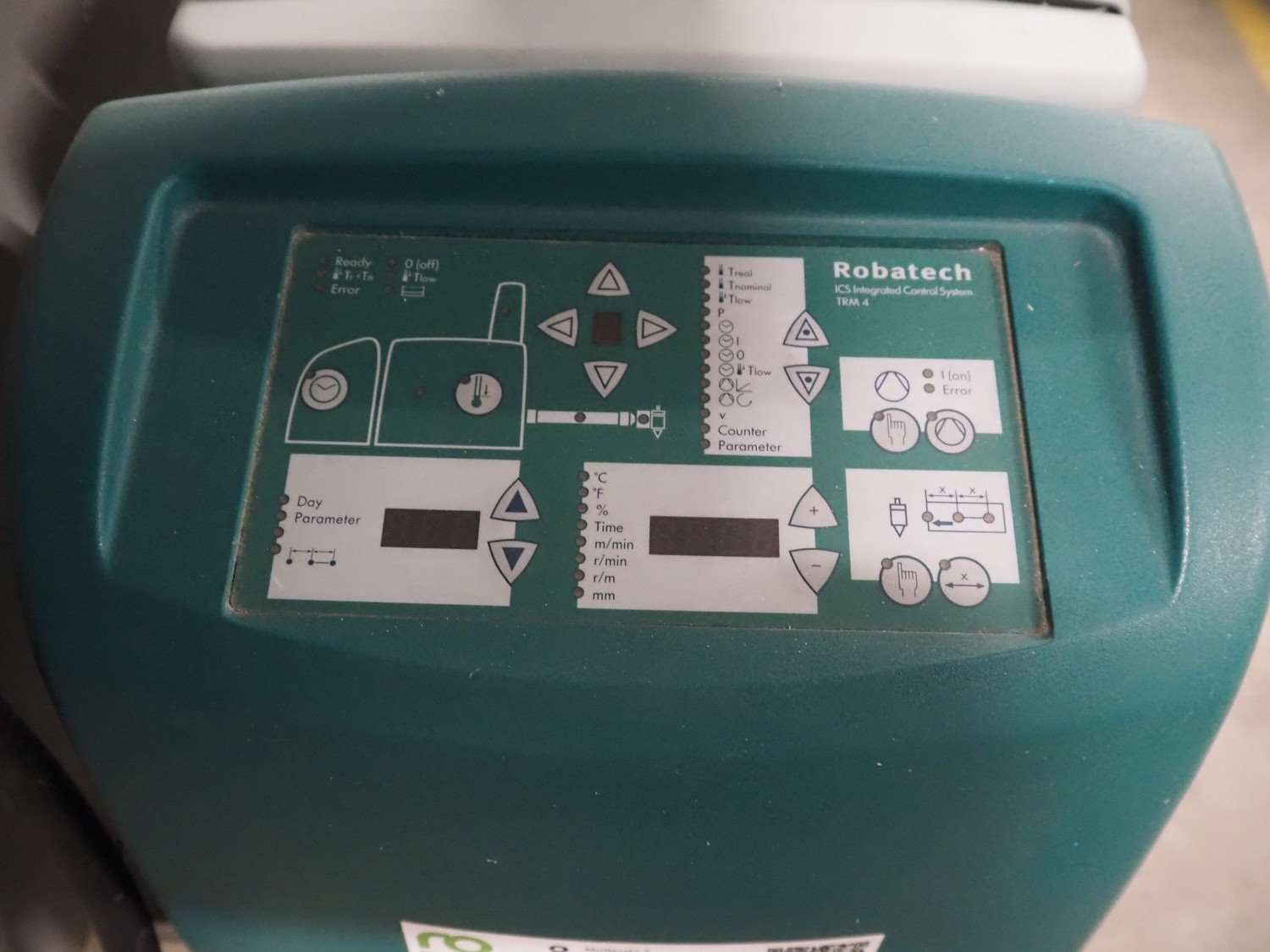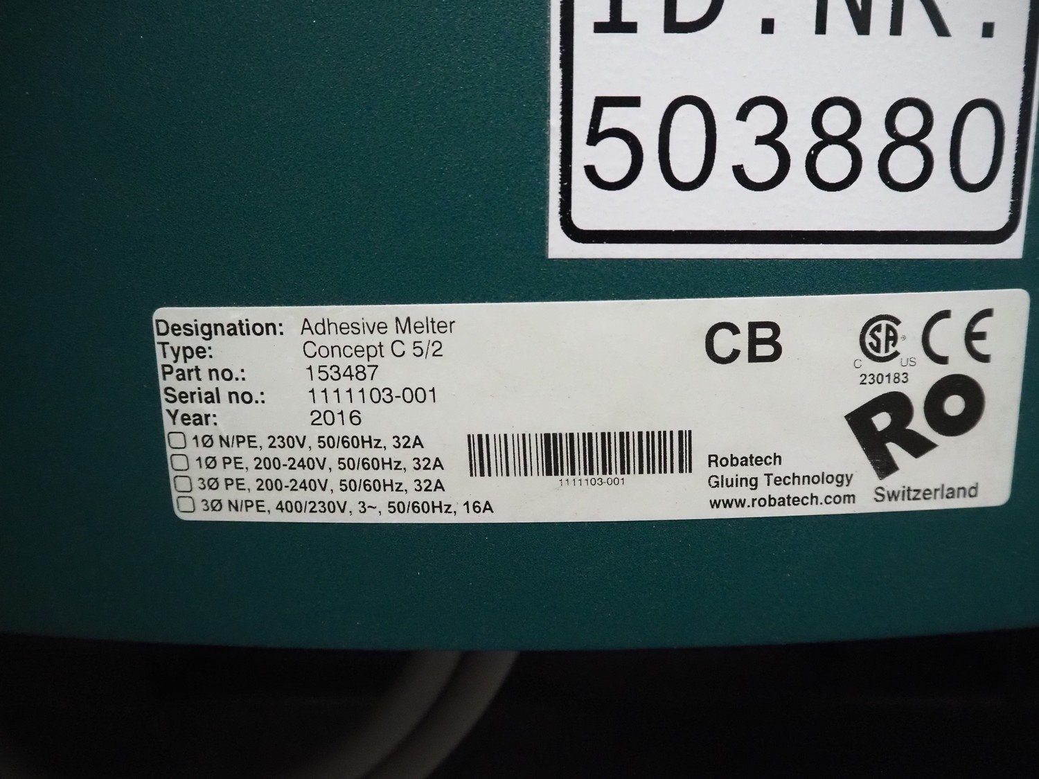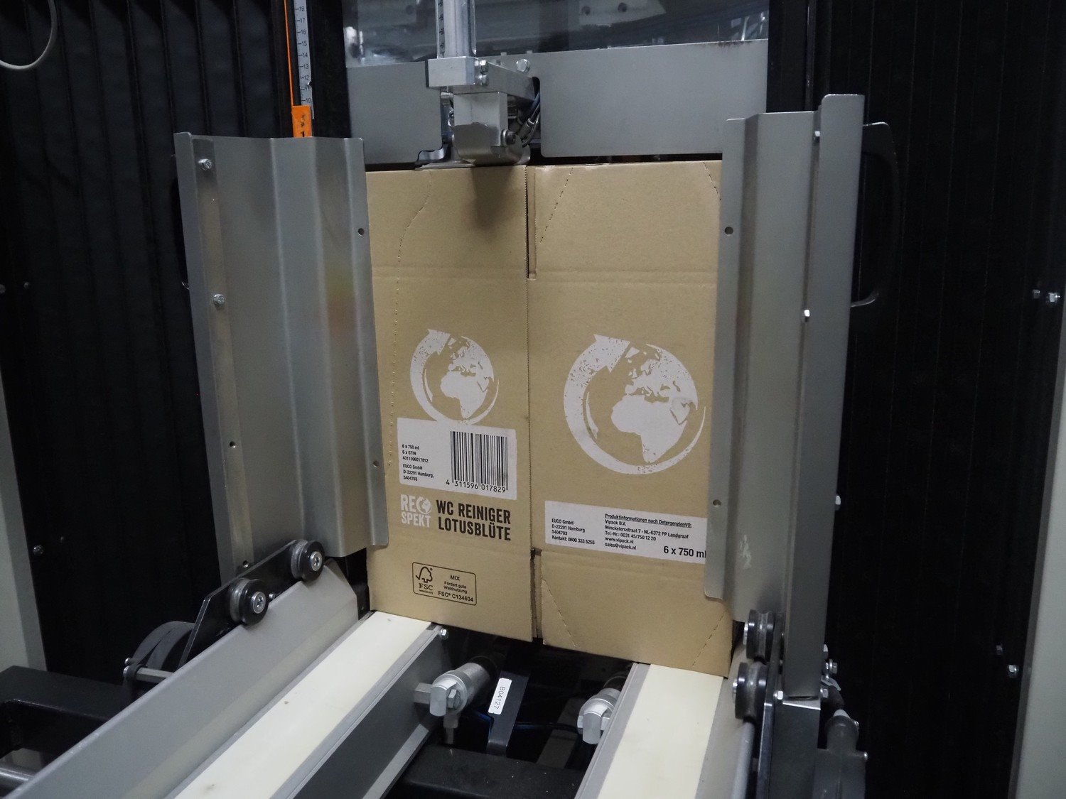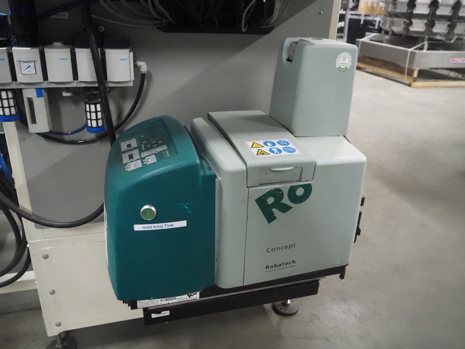 Lantech carton erecter, model C-1000-Hotmelt, serial number: SM20164280, year of construction: 06-jul-2016, 400 V, 3 Ph, 50 Hz, 4.37 kW, Robatech glue unit, type: Concept C 5/2, serial number: 11111103-001, year of construction: 2016, plastic belts, belt width: 65 mm, dimensions plano: 680 mm x 450 mm, total dimensions: 2400 mm x 2300 mm x 2600 mm.