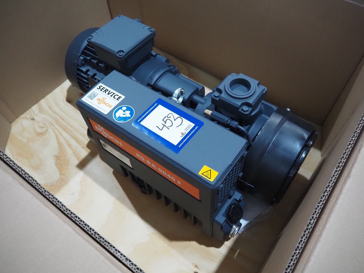 Busch vacuum pump, type: RA 0040 F 5R3, serial number: DEM124430385, year of construction: 2024, capacity: 40 m³ per hour, dimensions: 620 mm x 270 mm x 260 mm.