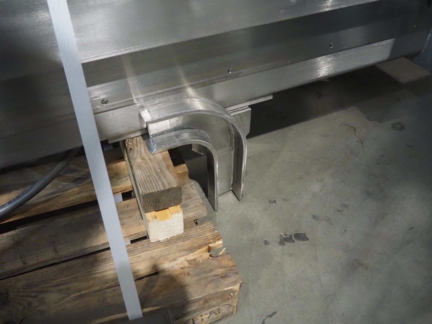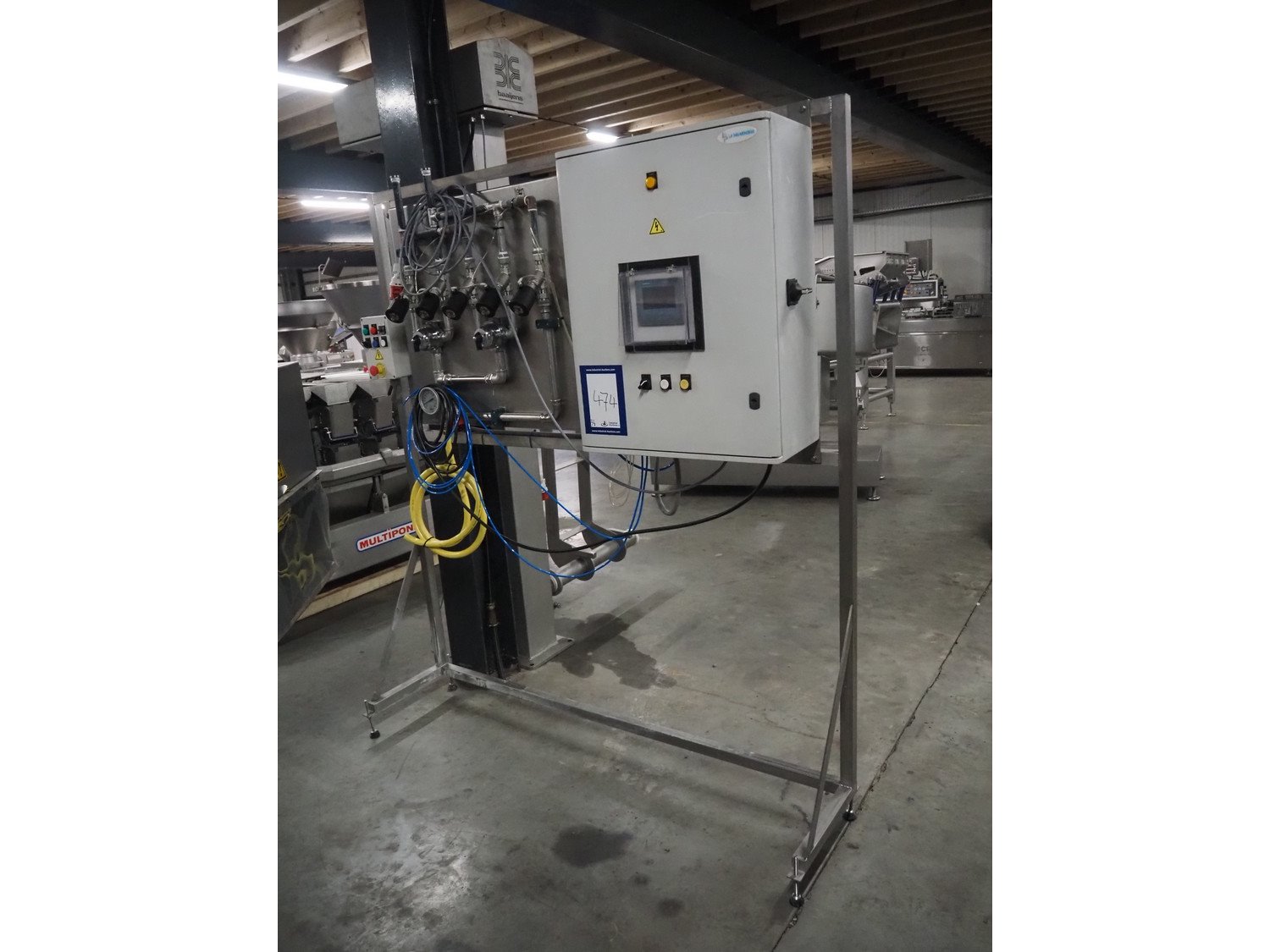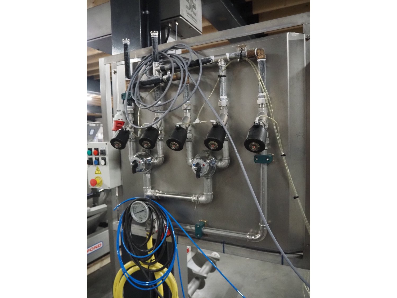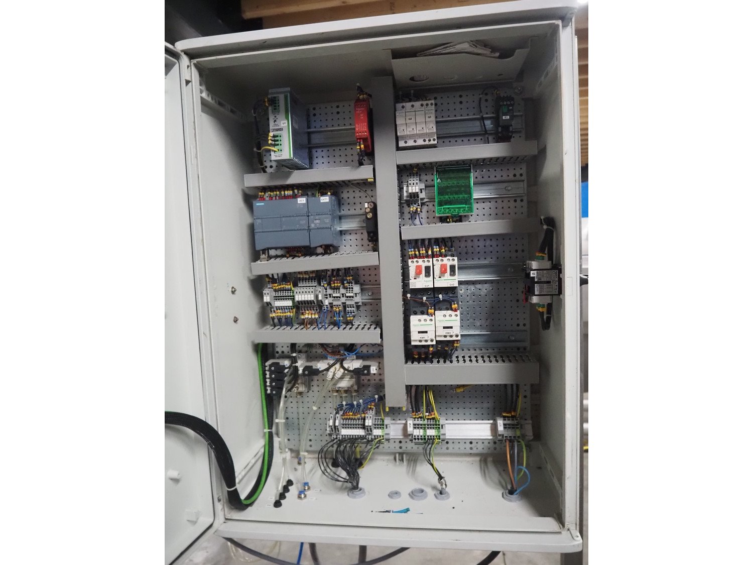 Ollari e Conti defrosting machine with lifter for meat bins, model: TF-1500, serial number: 2022, year of construction: 2020, 400 V, 7.7 kW, dimensions defrosting machine: 2400 m mx 2100 mm x 3000 mm, dimensions lifter: 2900 mm x 1600 mm x 1300 mm. With s/s frame with switch cabinet, dimensions: 2000 mm x 500 mm x 2500 mm.