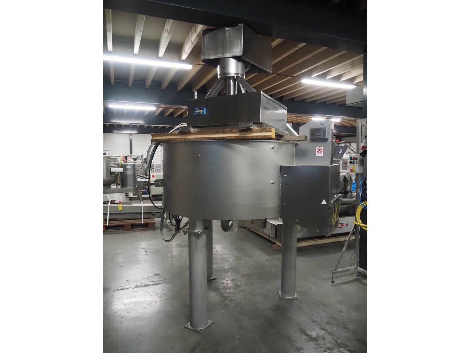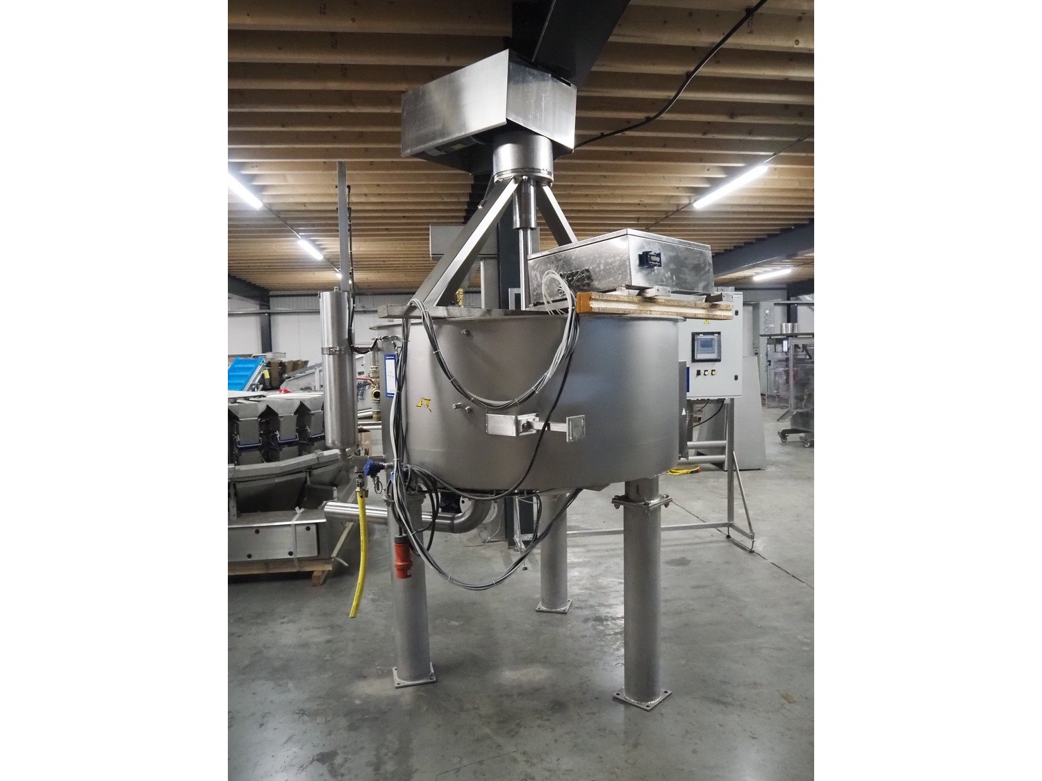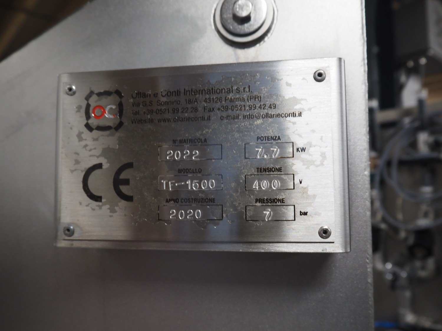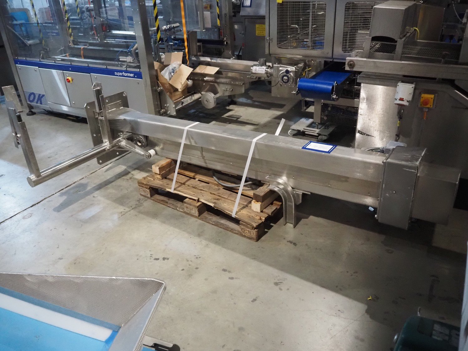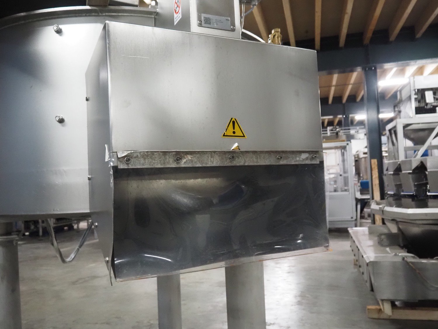 Ollari e Conti defrosting machine with lifter for meat bins, model: TF-1500, serial number: 2022, year of construction: 2020, 400 V, 7.7 kW, dimensions defrosting machine: 2400 m mx 2100 mm x 3000 mm, dimensions lifter: 2900 mm x 1600 mm x 1300 mm. With s/s frame with switch cabinet, dimensions: 2000 mm x 500 mm x 2500 mm.