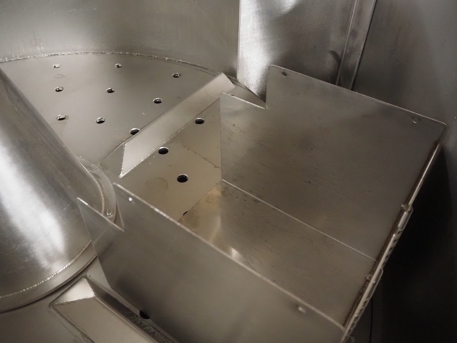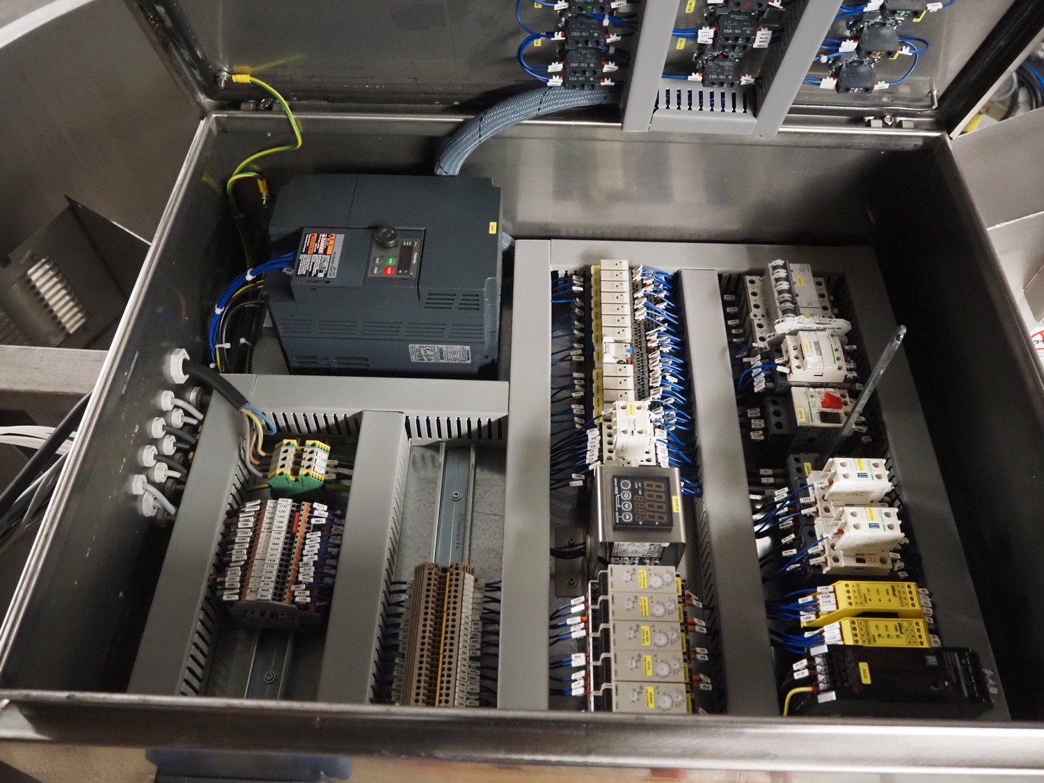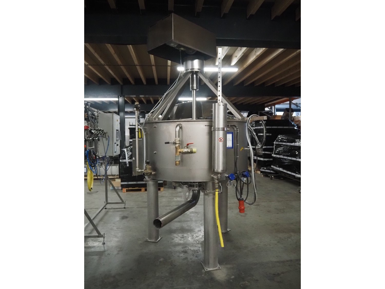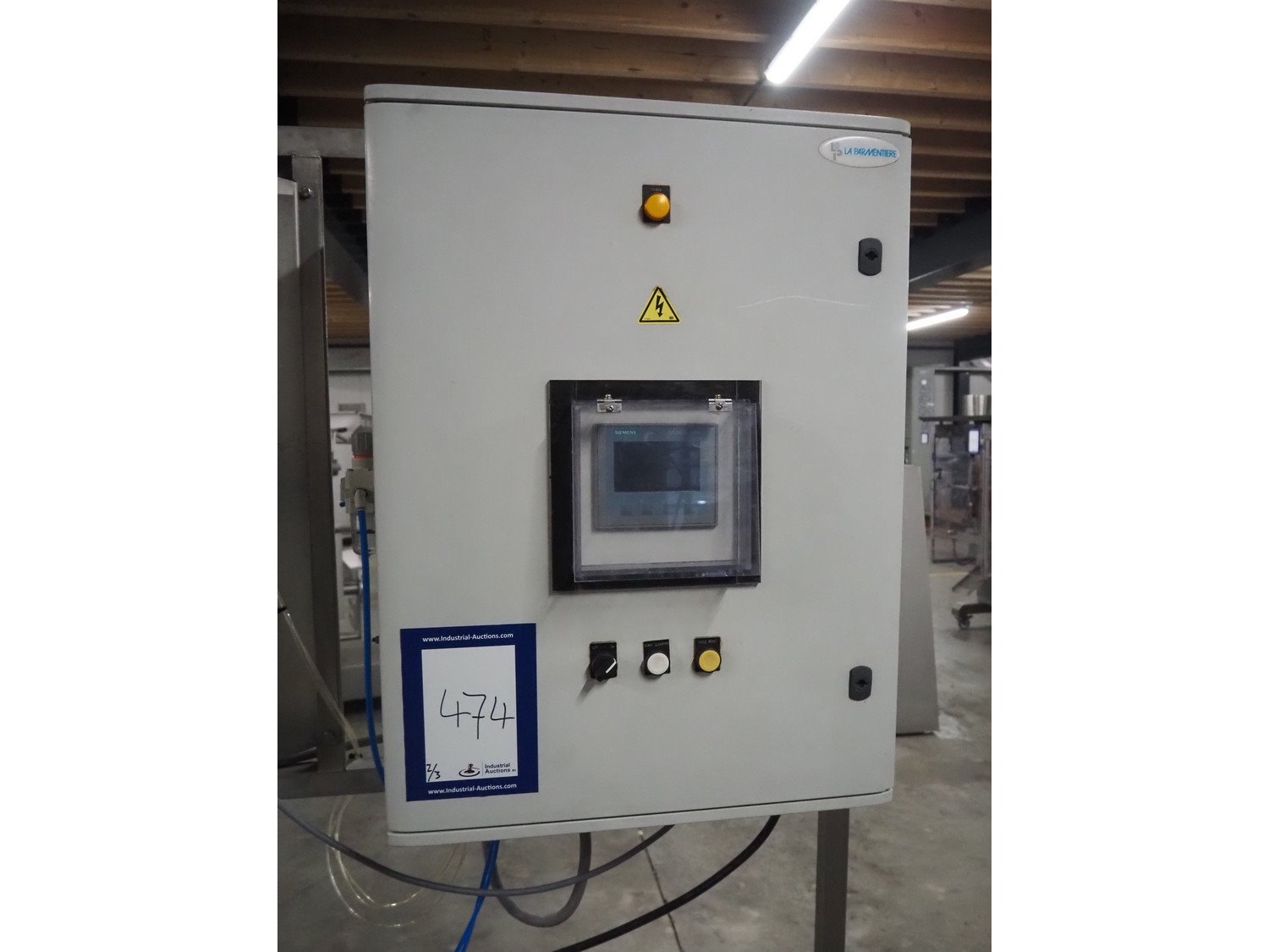 Ollari e Conti defrosting machine with lifter for meat bins, model: TF-1500, serial number: 2022, year of construction: 2020, 400 V, 7.7 kW, dimensions defrosting machine: 2400 m mx 2100 mm x 3000 mm, dimensions lifter: 2900 mm x 1600 mm x 1300 mm. With s/s frame with switch cabinet, dimensions: 2000 mm x 500 mm x 2500 mm.