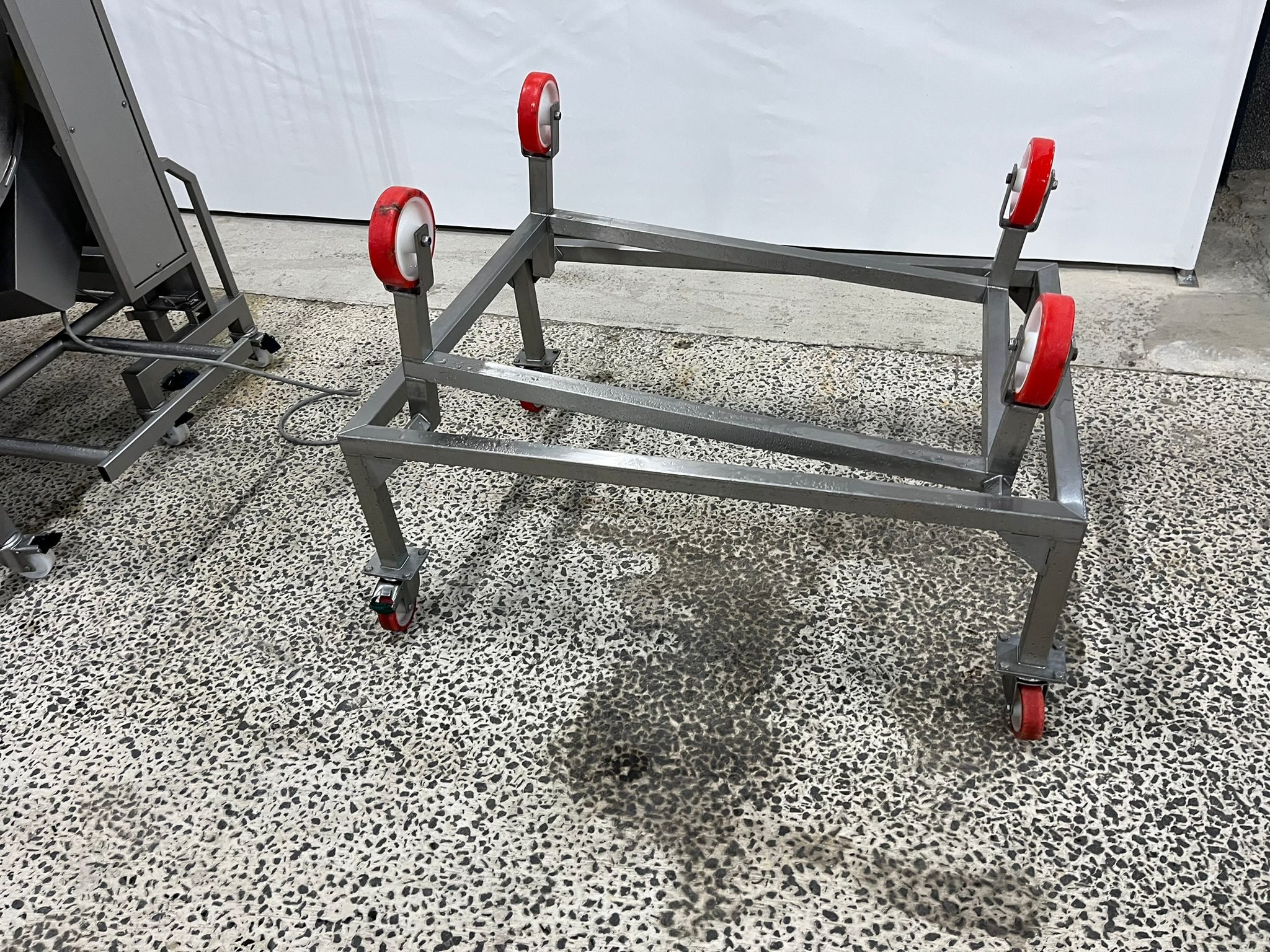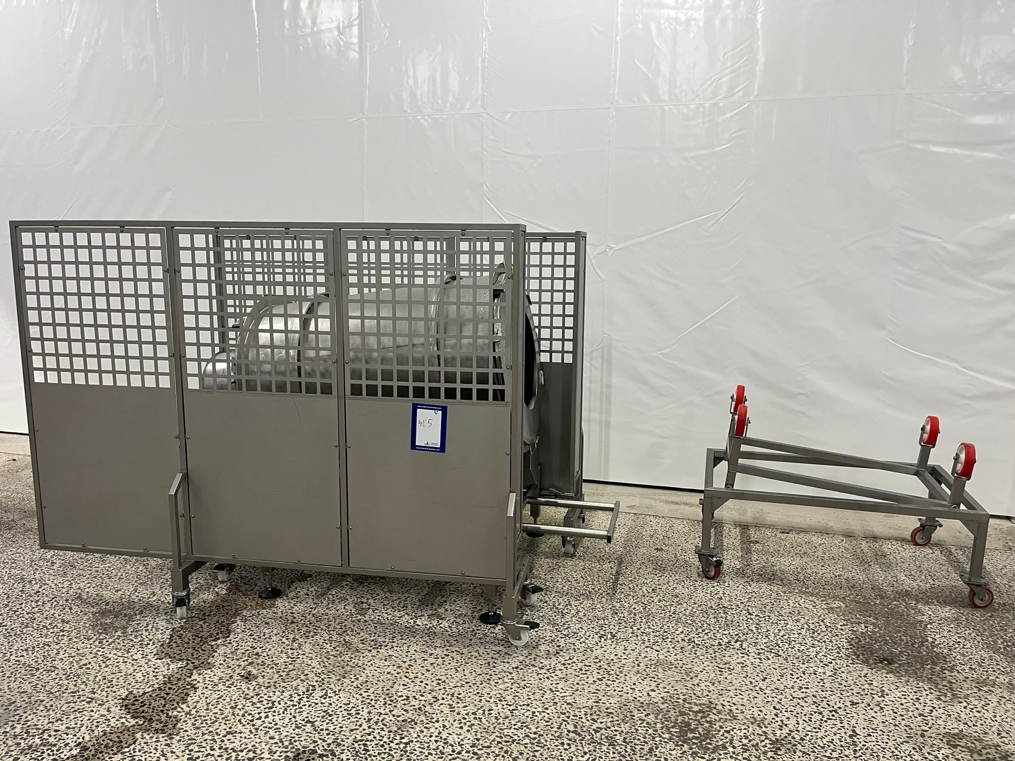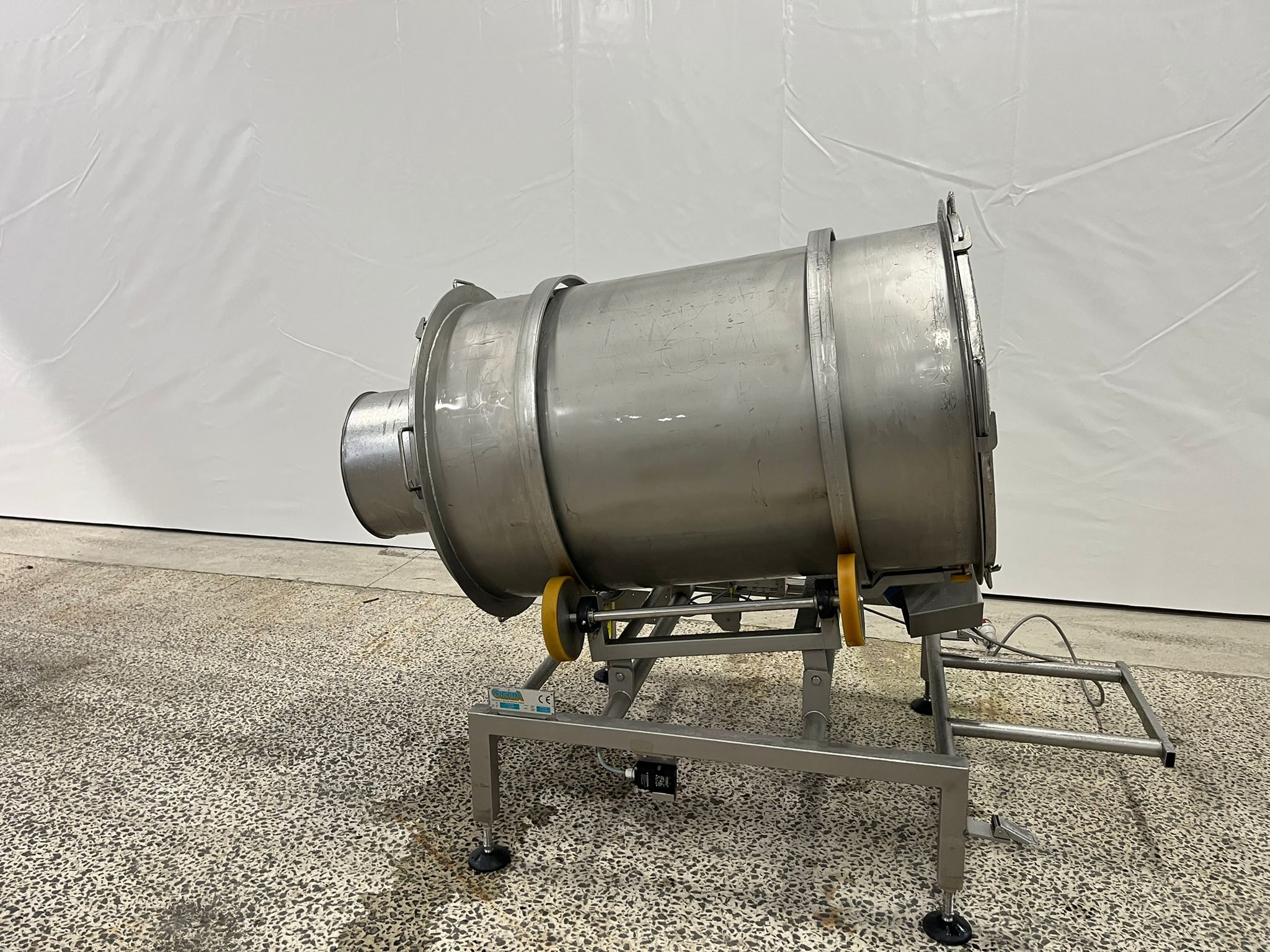 Groba starch mixing tumbler, type: PM-800, order number: 110466, year of construction: 2005, 300 kg, dimensions drum: Ø 800 mm x 1200 mm, total dimensions: 2400 mm x 1300 mm x 1660 mm. With trolley for washing drums.
