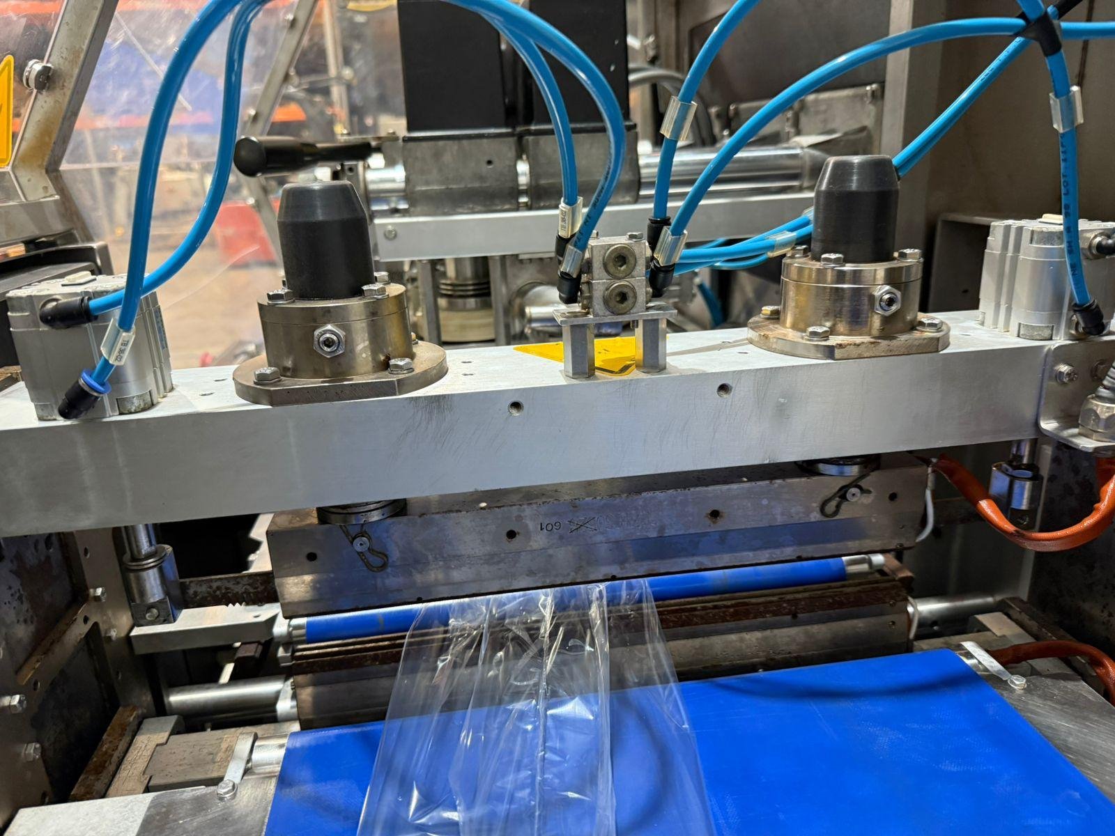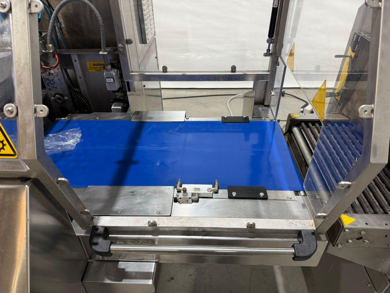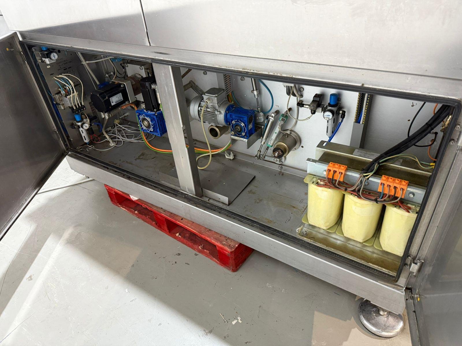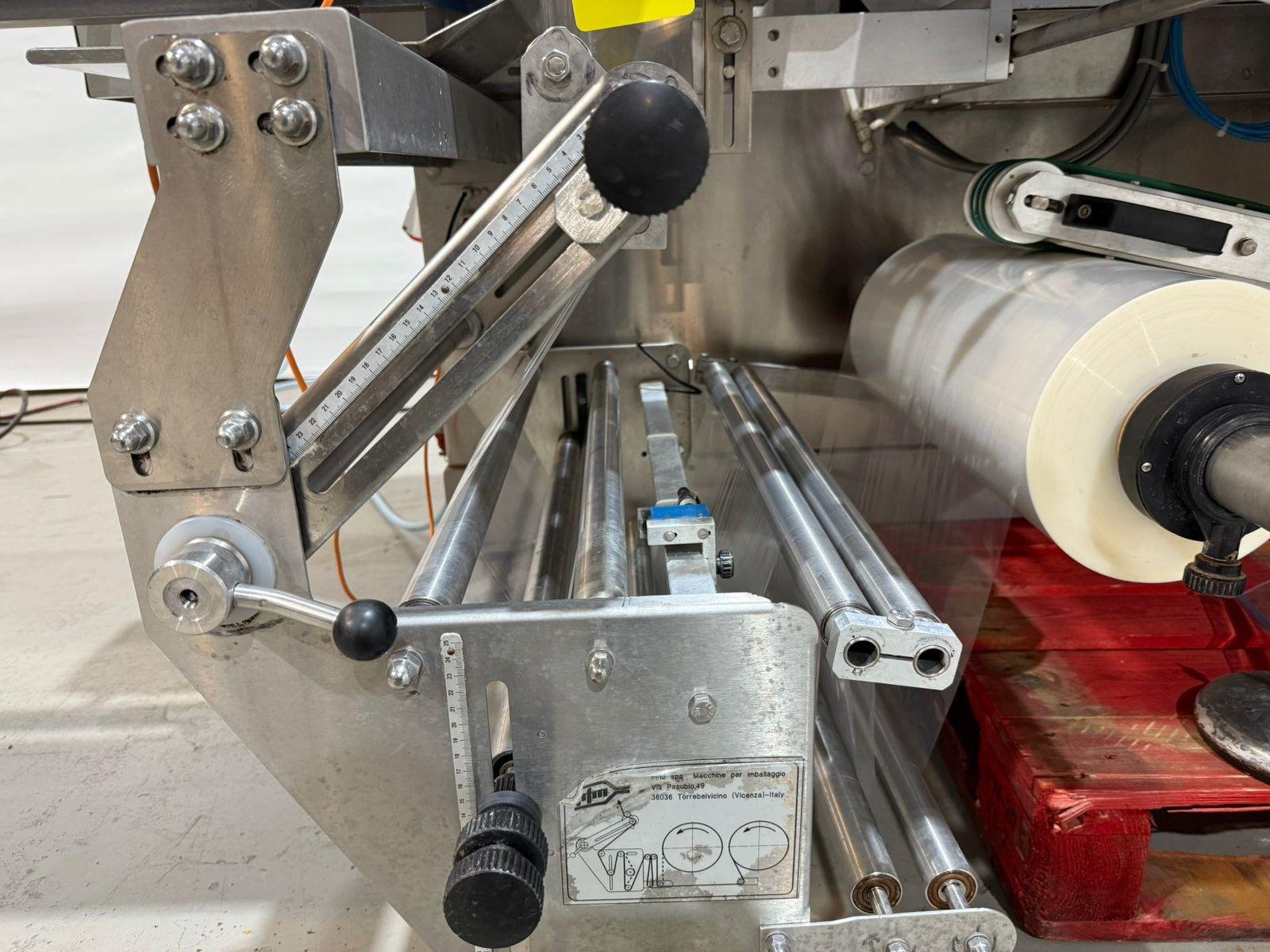 PFM flowpacker with Smipack shrink tunnel, model: Shamal, serial number: D.1624, year of construction: 2012, 400 V, 50 Hz, 12 A, 8 kW, 1100 kg, plastic belt, belt width: 250 mm, seal width: 340 mm, total dimensions flowpacker: 5400 mm x 1500 mm x 1600 mm, type Smipack: T452, serial number: 80237, year of construction: 2021, 380-415 V, 50-60 Hz, 19 A, 12750 W, total dimensions shrink tunnel: 1800 mm x 800 mm x 1500 mm.