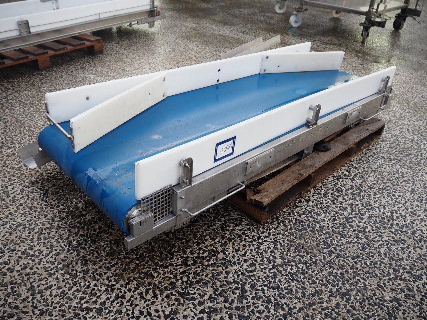 Boldtus Systems transport belt, model: BFCB 24.06, serial number: BFO 09-019.08, year of construction: 2009, plastic belt, belt width: 600 mm, total dimensions: 1900 mm x 1000 mm x 300 mm.