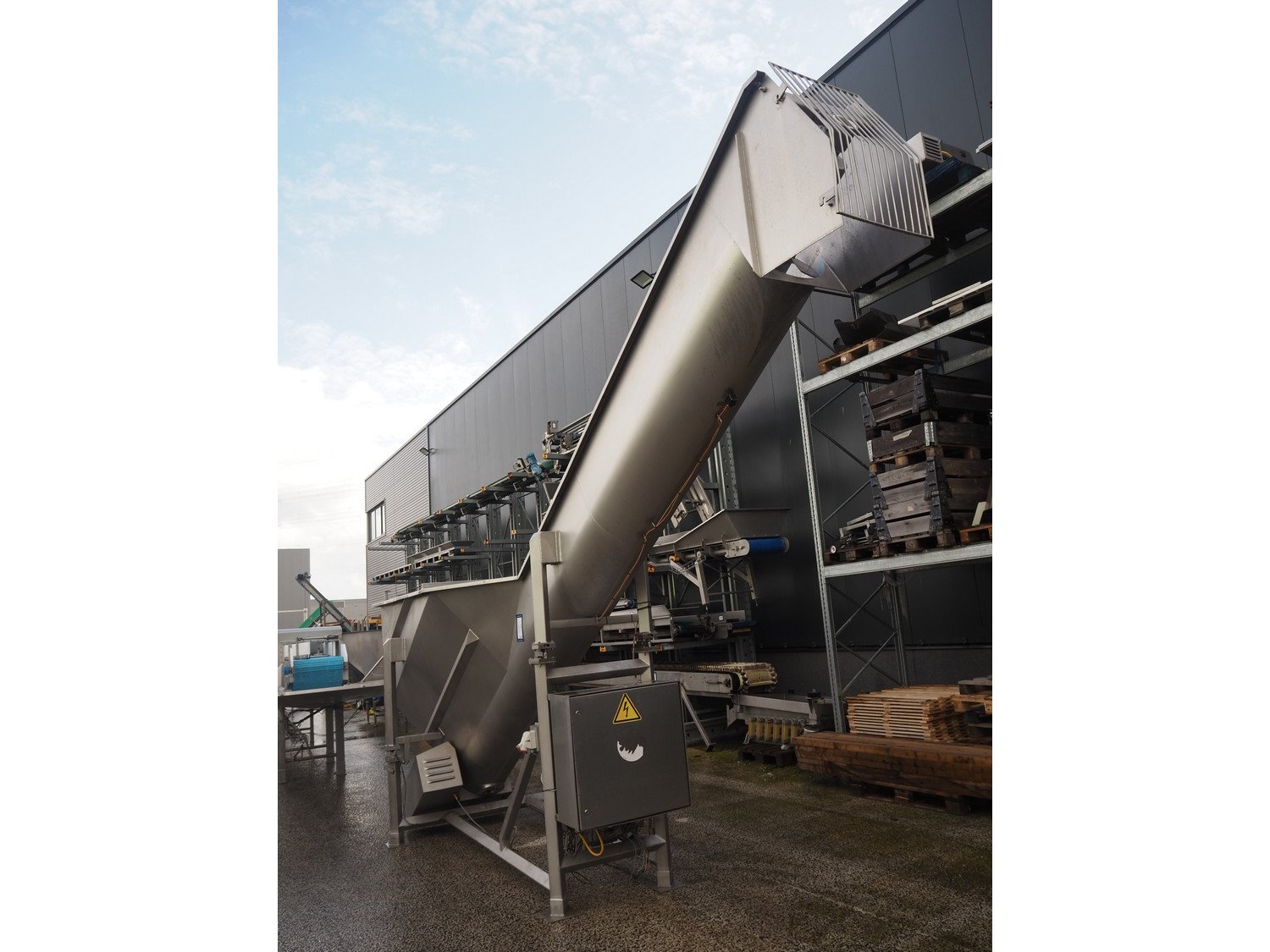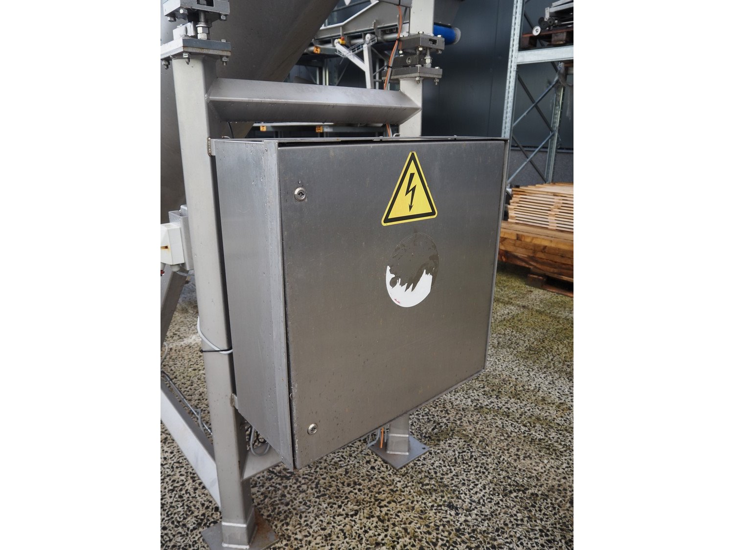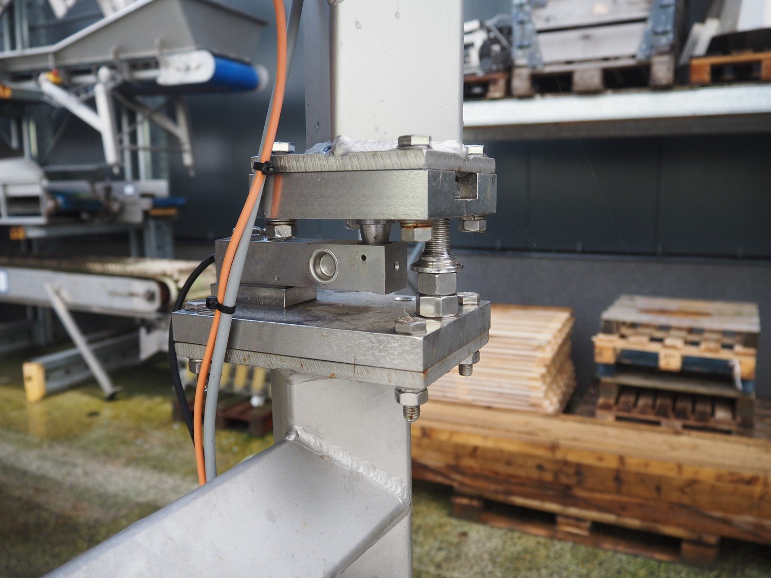 Boldt Systems elevating screw on weighing cells, model: BFCS 20.19, serial number: BFO 09-010.02, year of construction: 2009, elevating height: 3100 mm, total dimensions: 6500 mm x 1800 mm x 4000 mm.