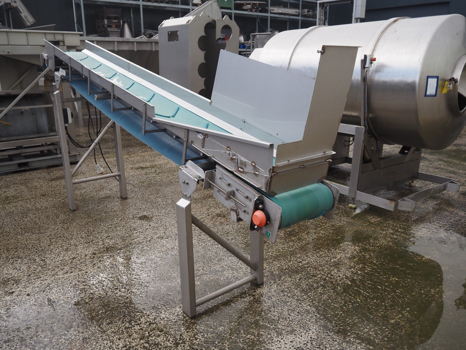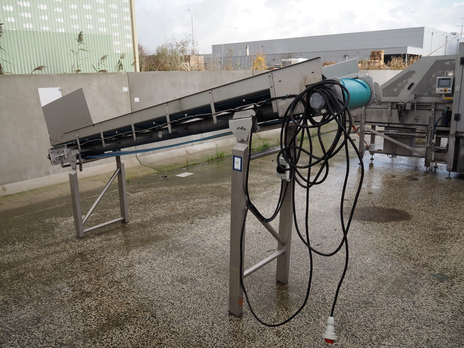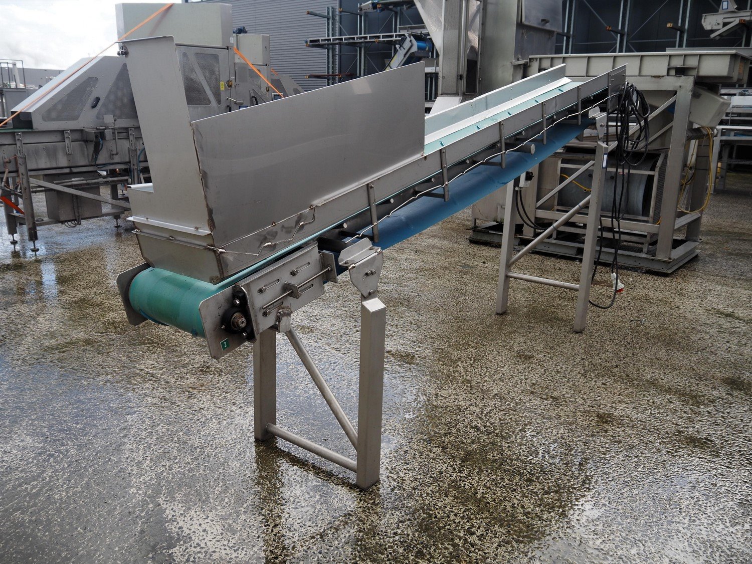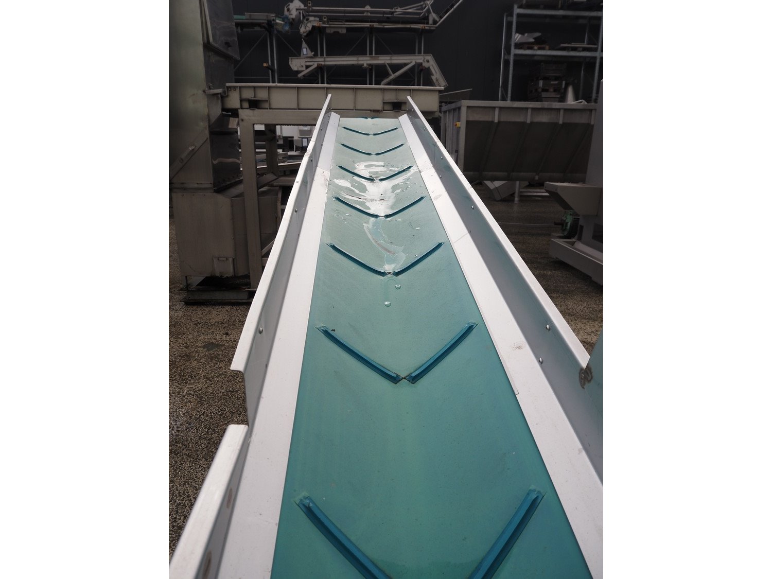 Kiremko elevating belt, number: 06-1086-BA, plastic belt, belt width: 400 mm, elevating height: 1720 mm, total dimensions: 3950 mm x 700 mm x 1850 mm.