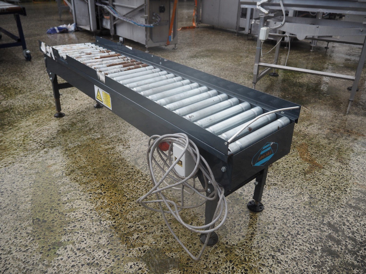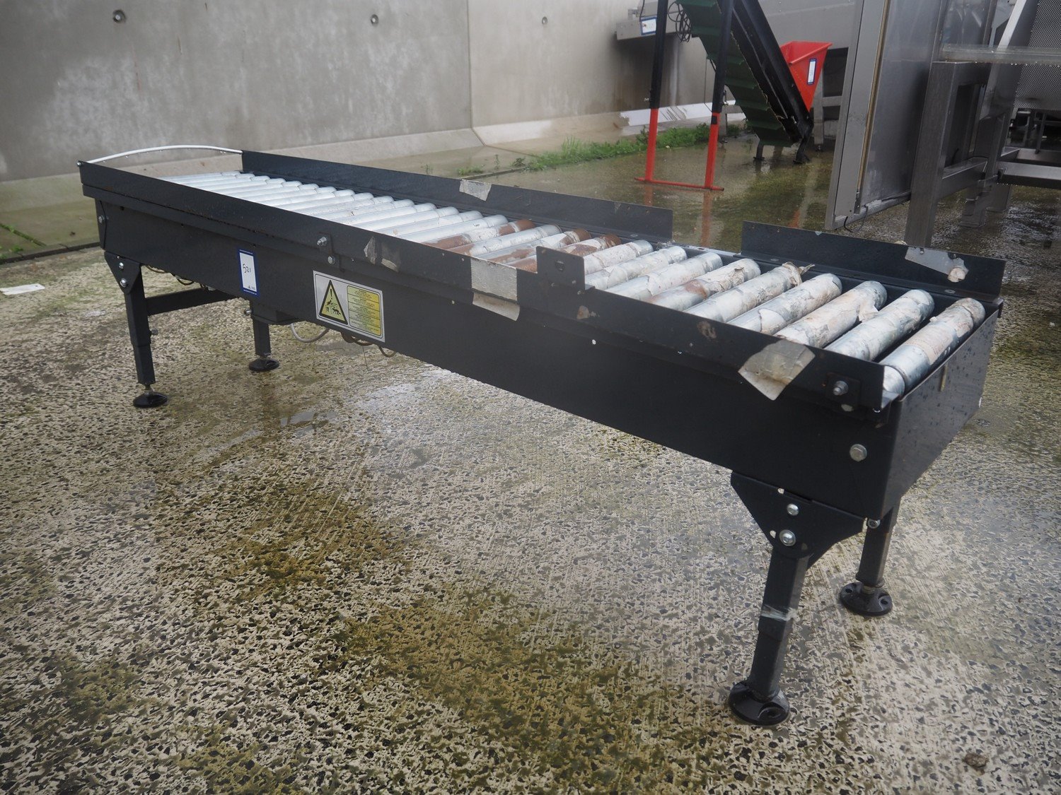 Steel driven roller conveyor, steel rollers, roller width: 400 mm, total dimensions: 2100 mm x 580 mm x 650 mm.
