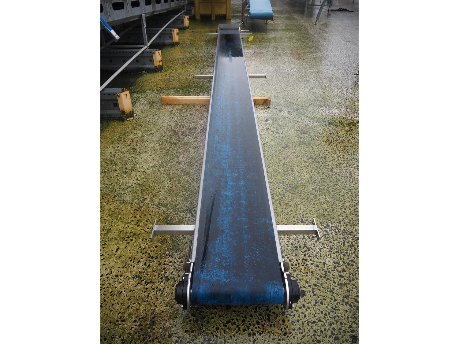 Transport belt, s/s frame, plastic belt, belt width: 400 mm, total dimensions: 6150 mm x 900 mm x 300 mm.
