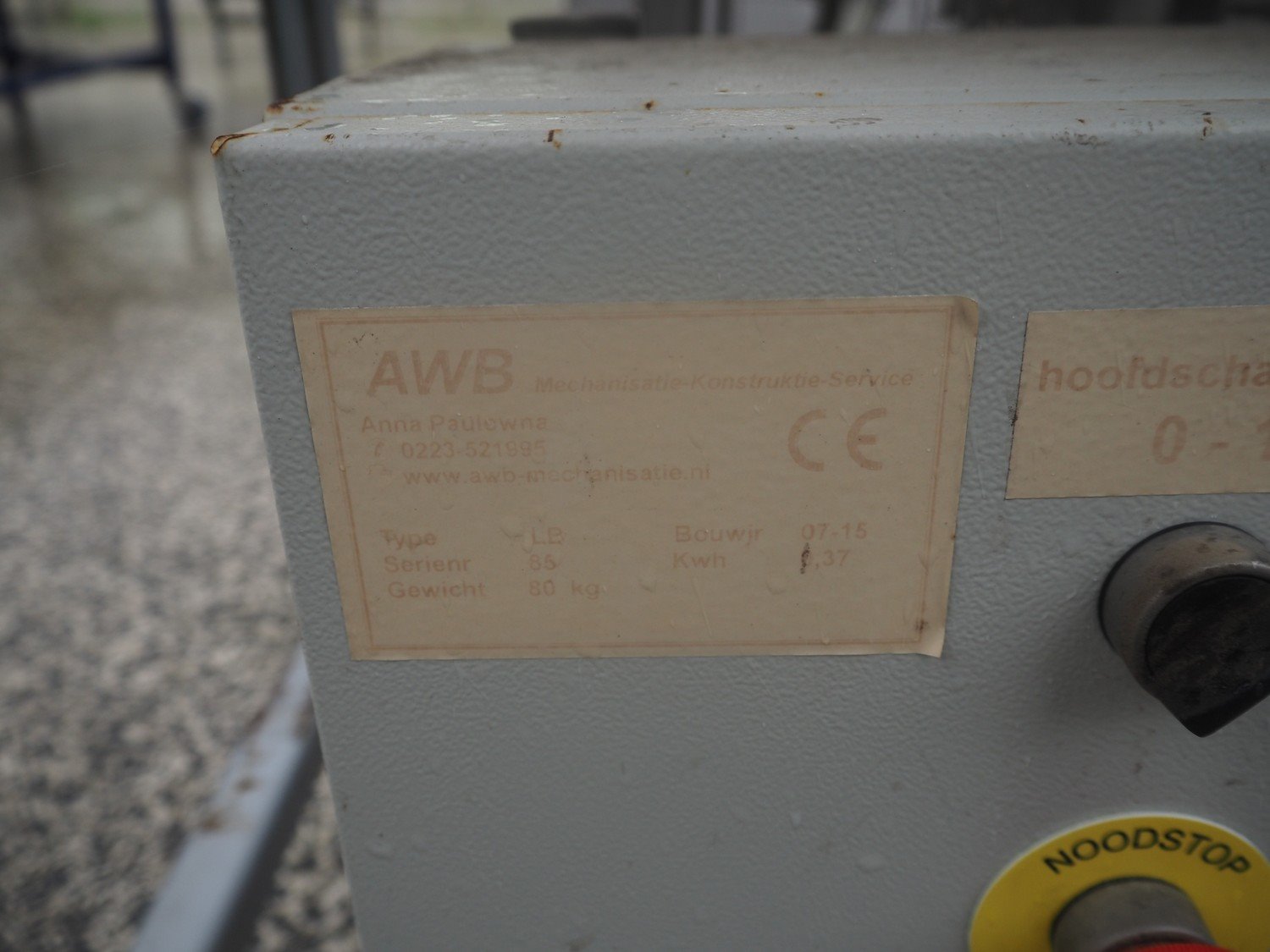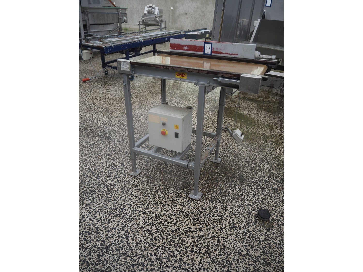 AWB transport belt, type: LB, serial number: 85, year of construction: 07-15, 0.37 kW, weight: 80 kg, plastic belt, belt width: 550 mm, total dimensions: 1050 mm x 800 mm x 1200 mm.