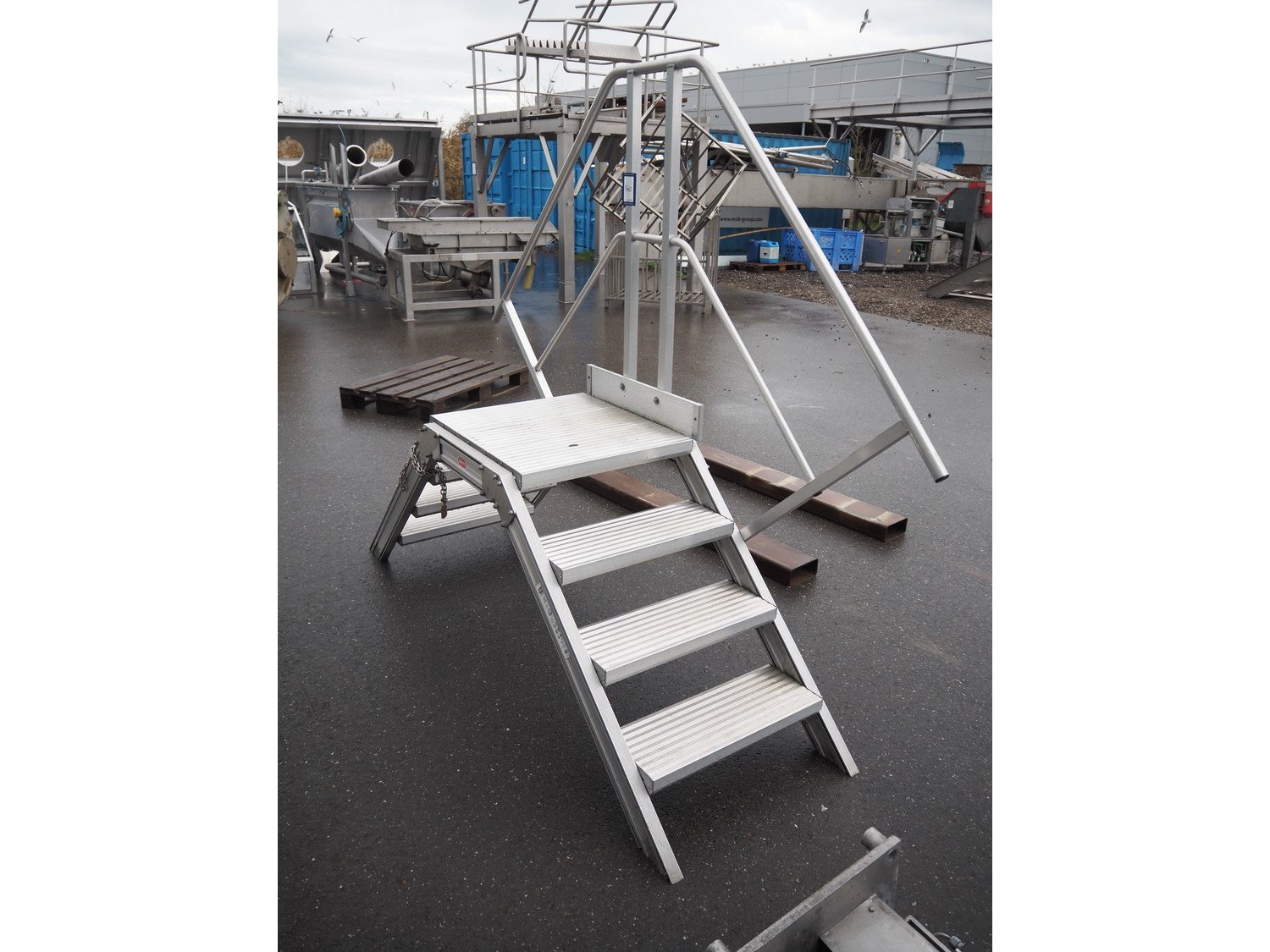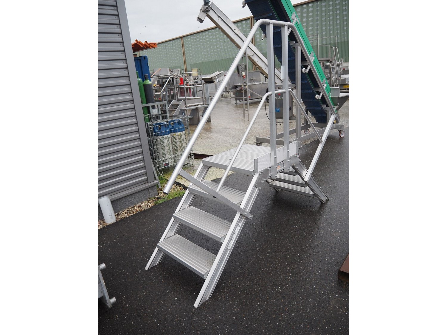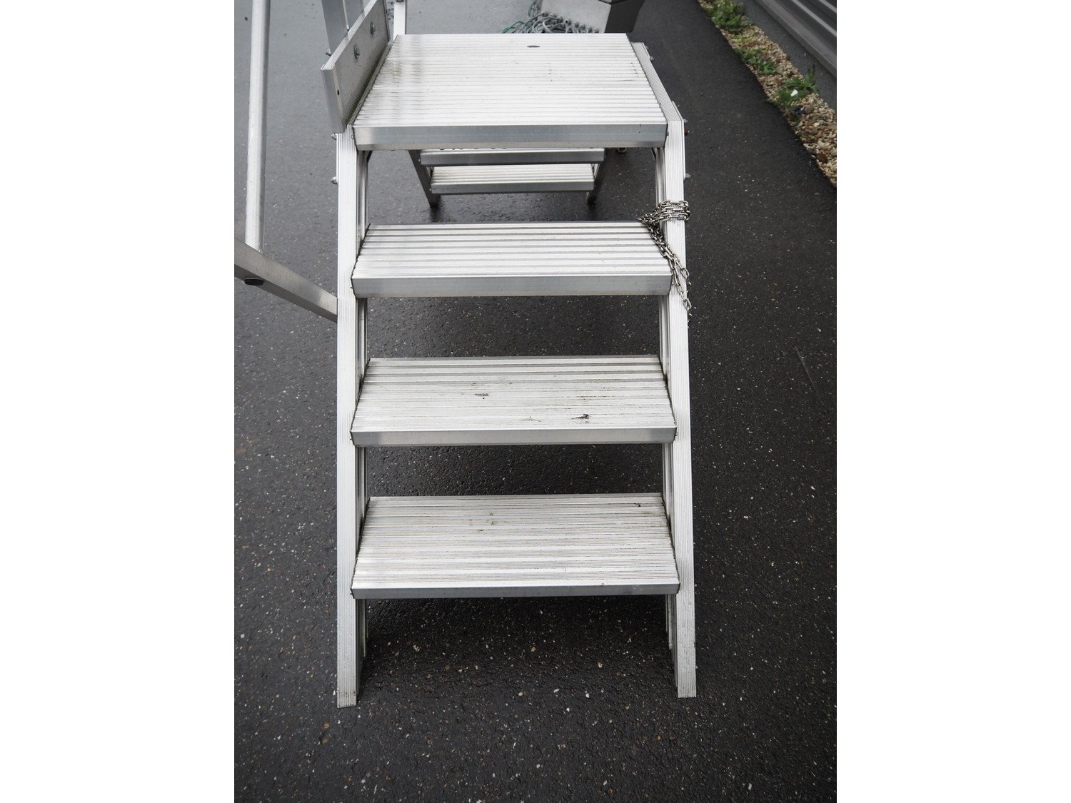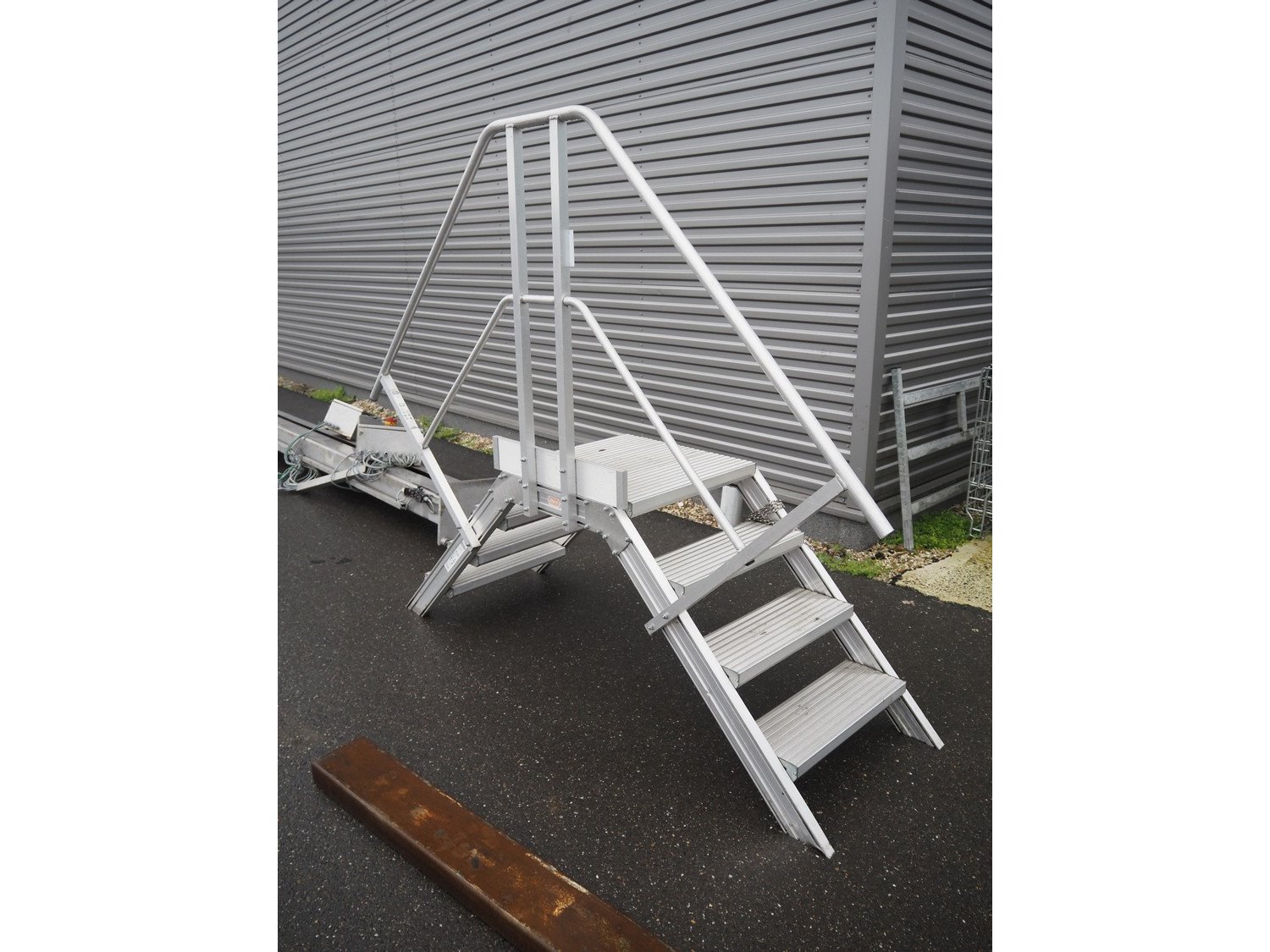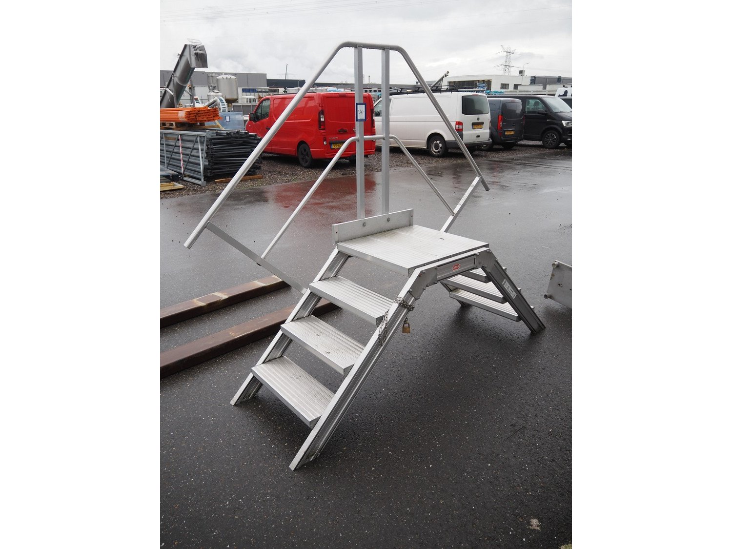 Altrex aluminium platform, maximum capacity: 250 kg, working height: 800 mm, total dimensions: 2300 mm x 700 mm x 1900 mm.