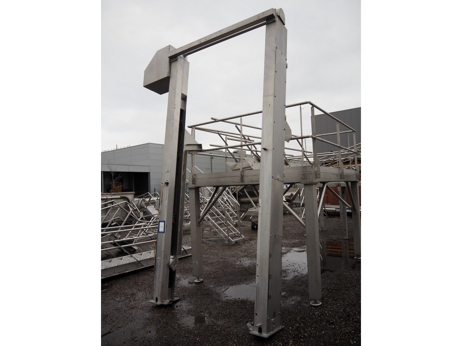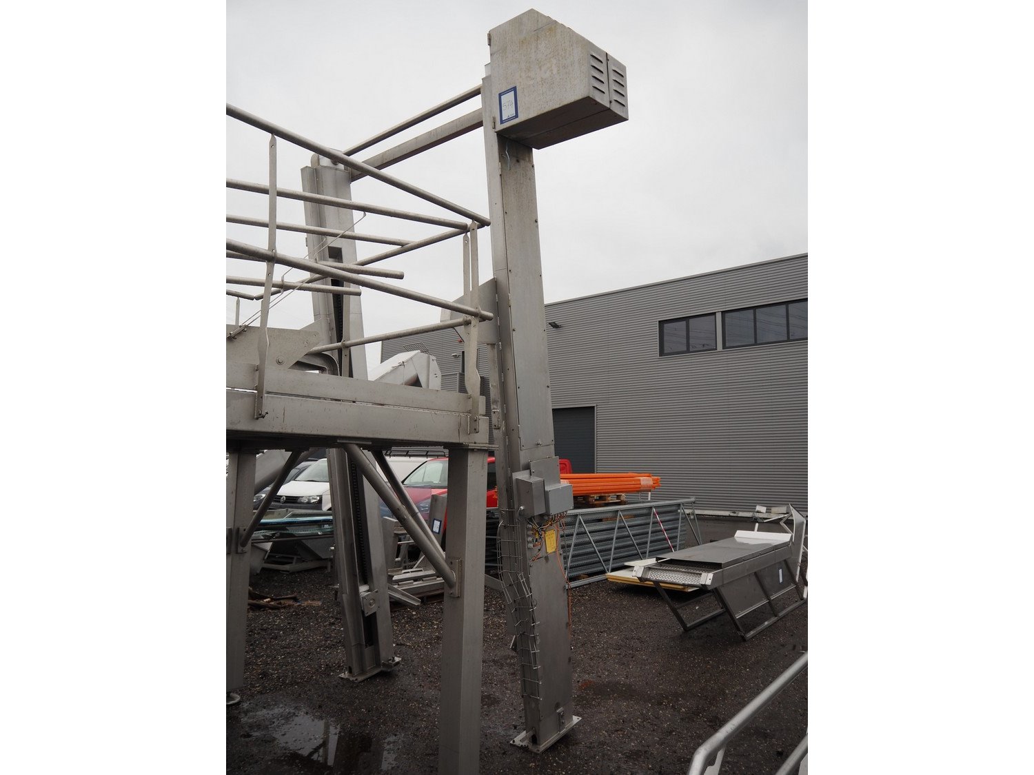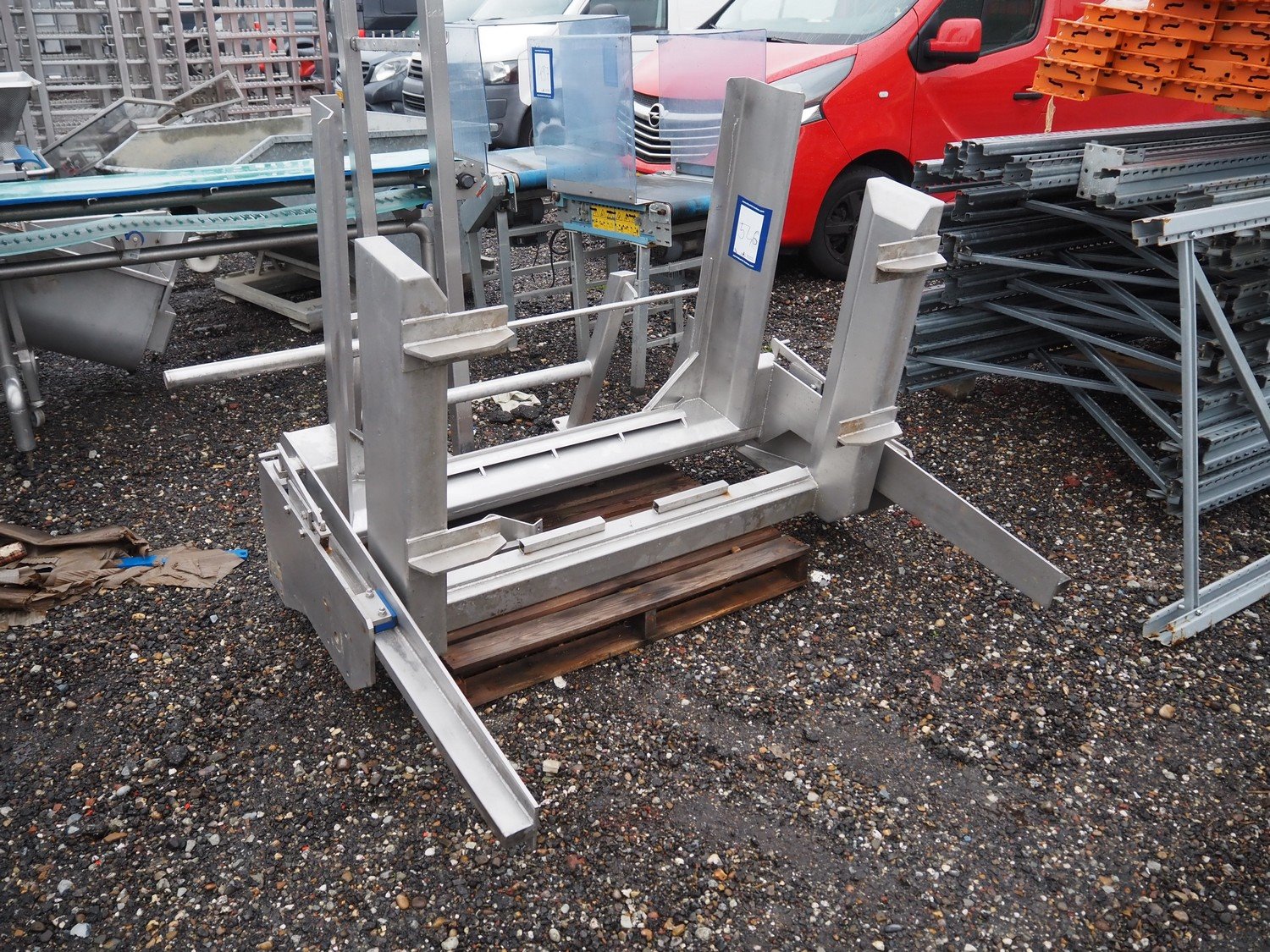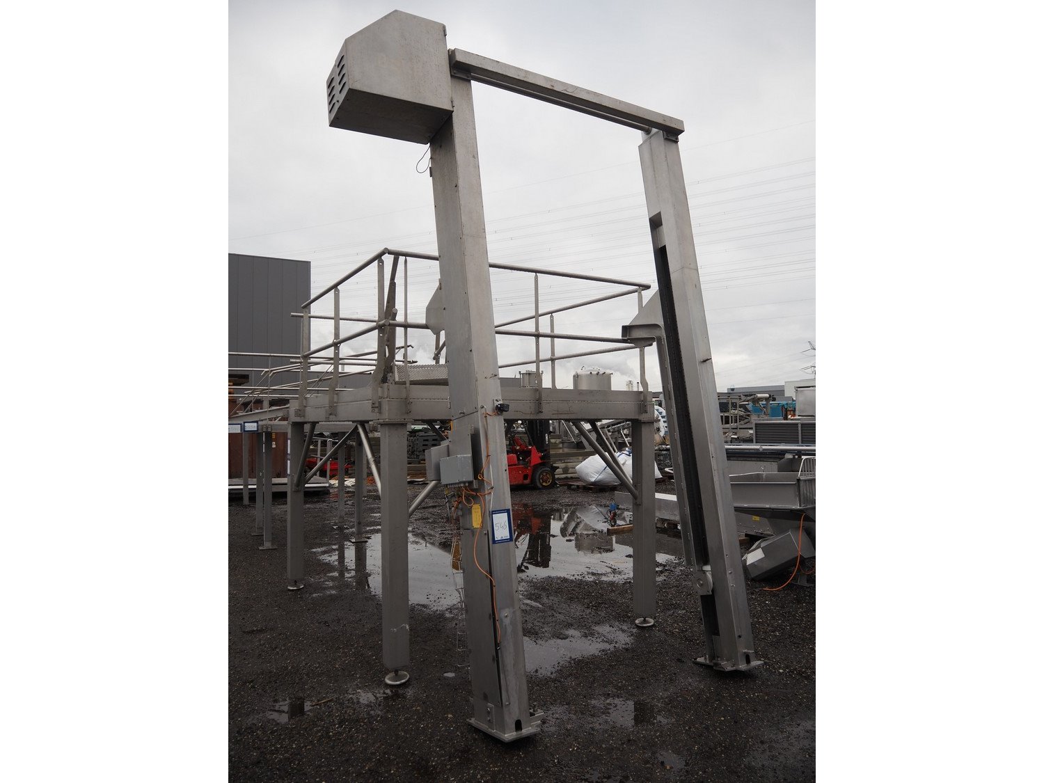Boldt Systems lifter for pallet boxes, year of construction: 2000, lifting height: 2650 mm, dimensions lifter: 2800 mm x 1100 mm x 4600 mm, dimensions lifting bin: 1900 mm x 1500 mm x 1200 mm.