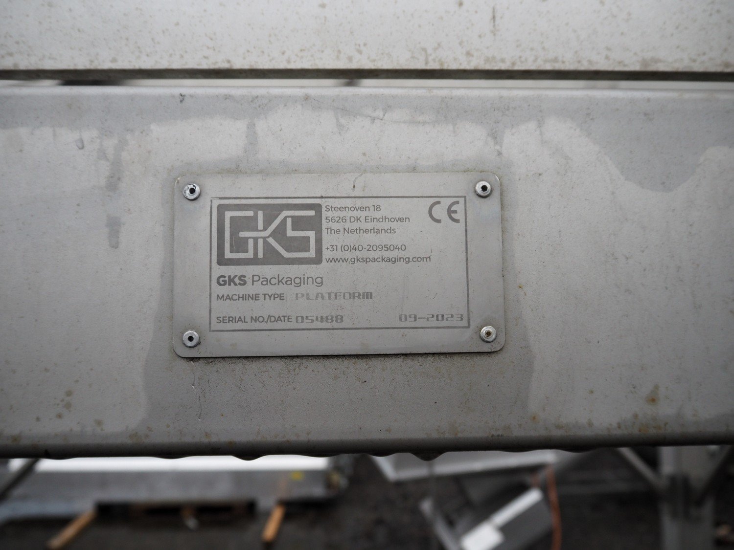 GKS s/s platform with stairs, serial number: 05488, year of construction: 09-2023, platform height: 2020 mm, total dimensions: 3250 mm x 2530 mm x 3150 mm.