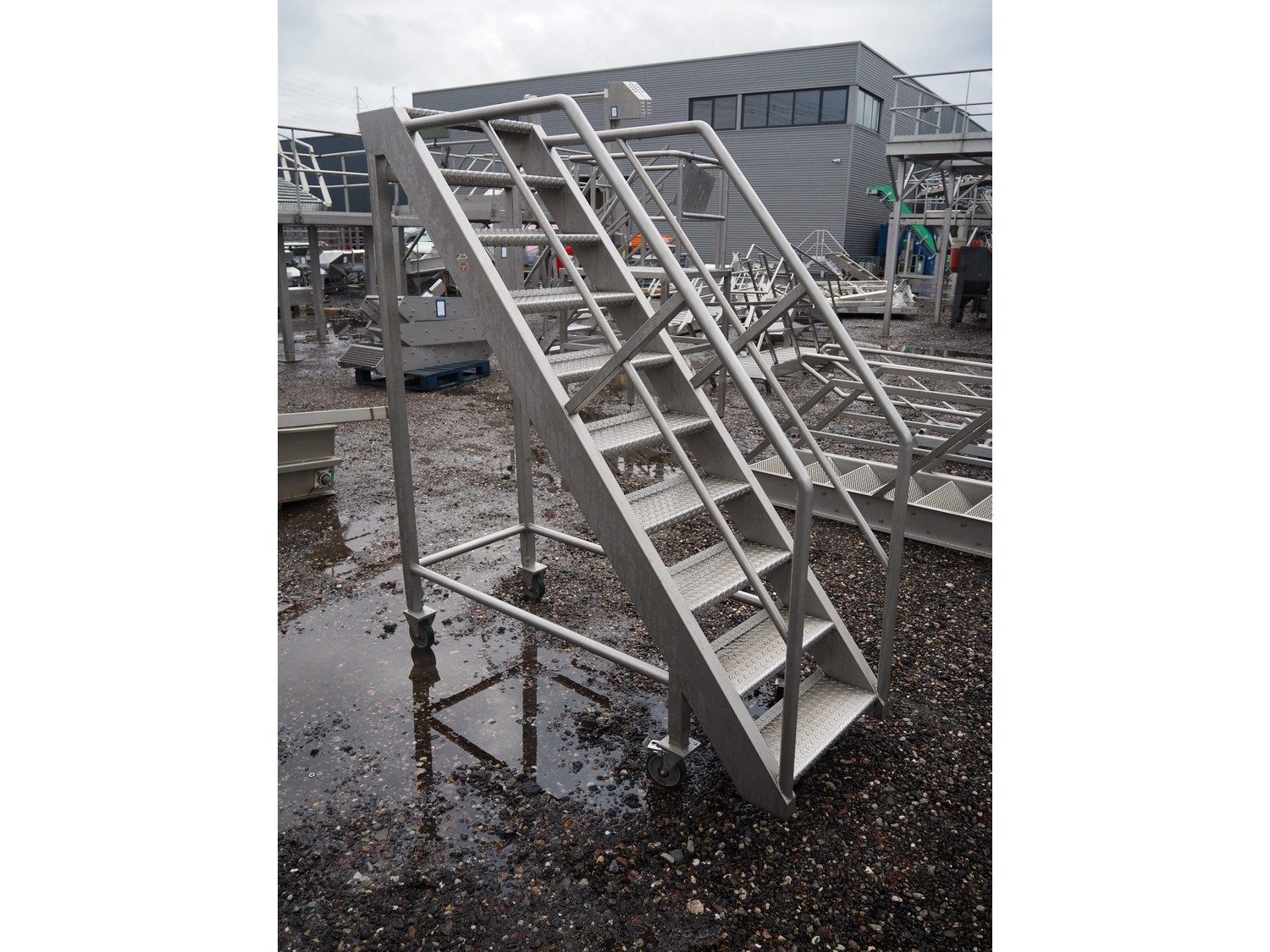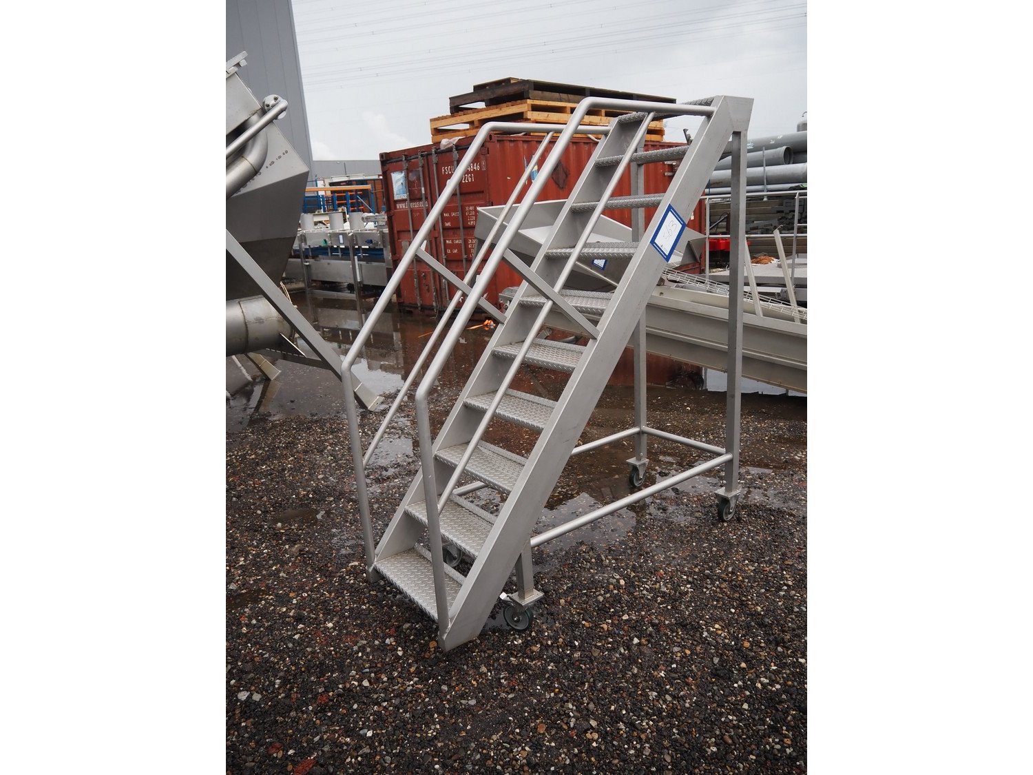 Mobile s/s stairs, 9 steps, dimensions: 1800 mm x 670 mm x 2050 mm.