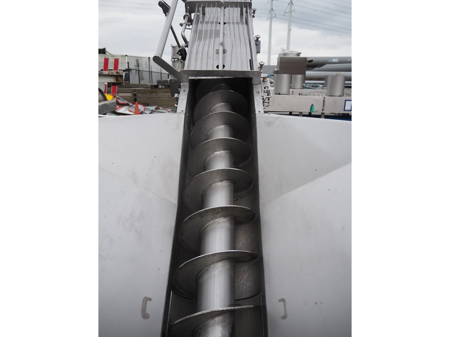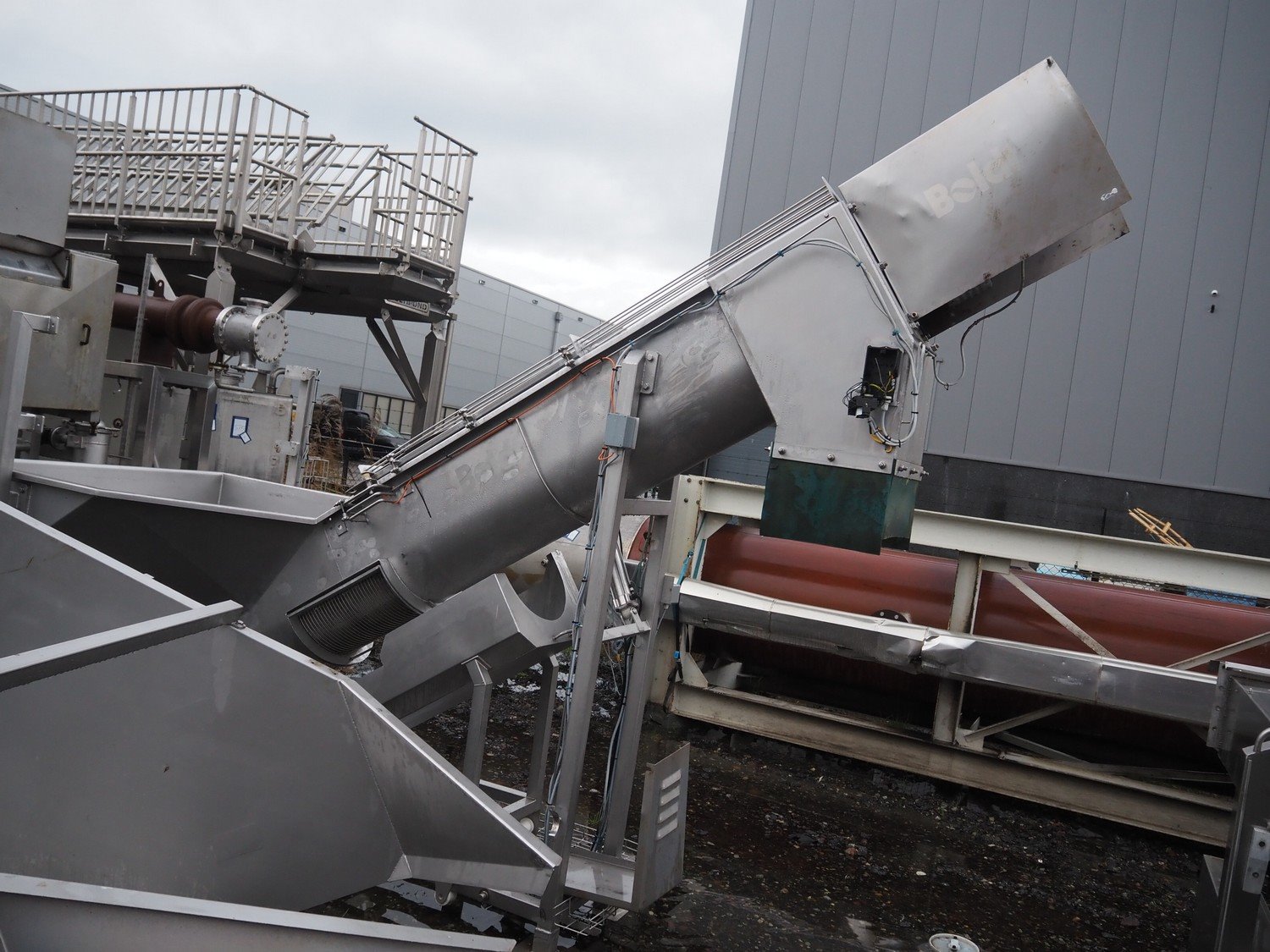 Boldt Systems elevating screw, type: BFCS 16/12, serial number: BFO 09-019.05, year of construction: 2009, s/s screw, diameter screw: 370 mm, tier: 220 mm, elevating height: 1900 mm, total dimensions: 3800 mm x 2000 mm x 3400 mm.
