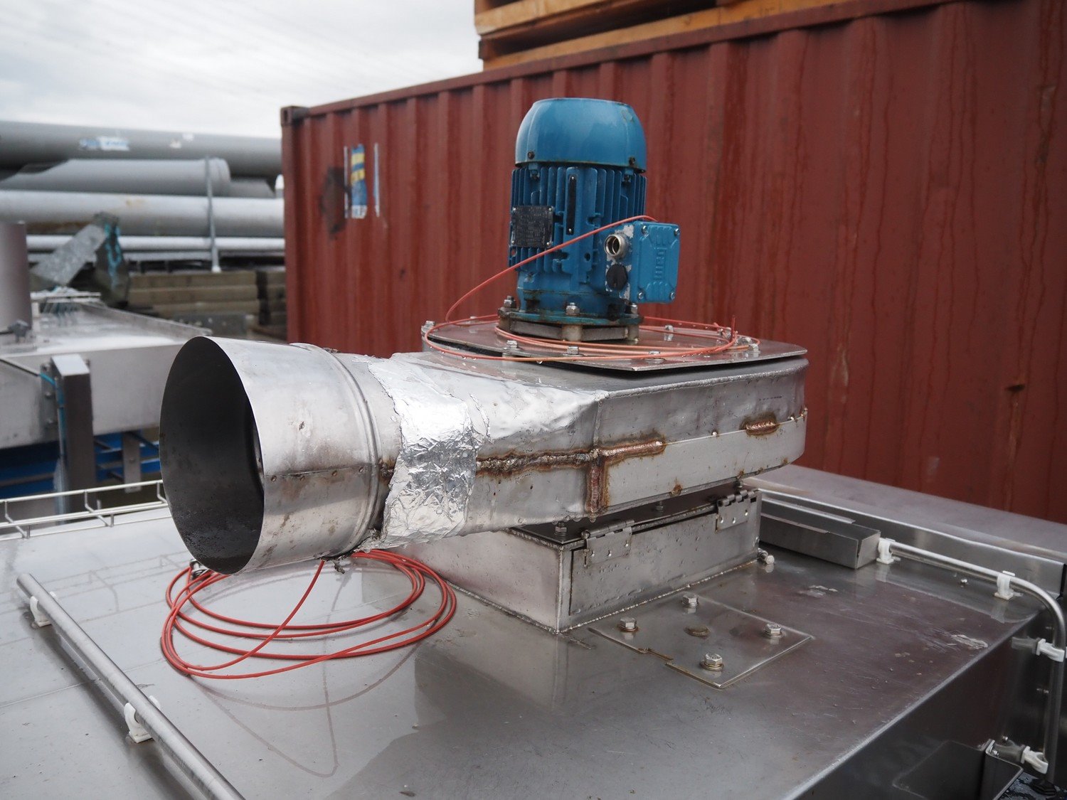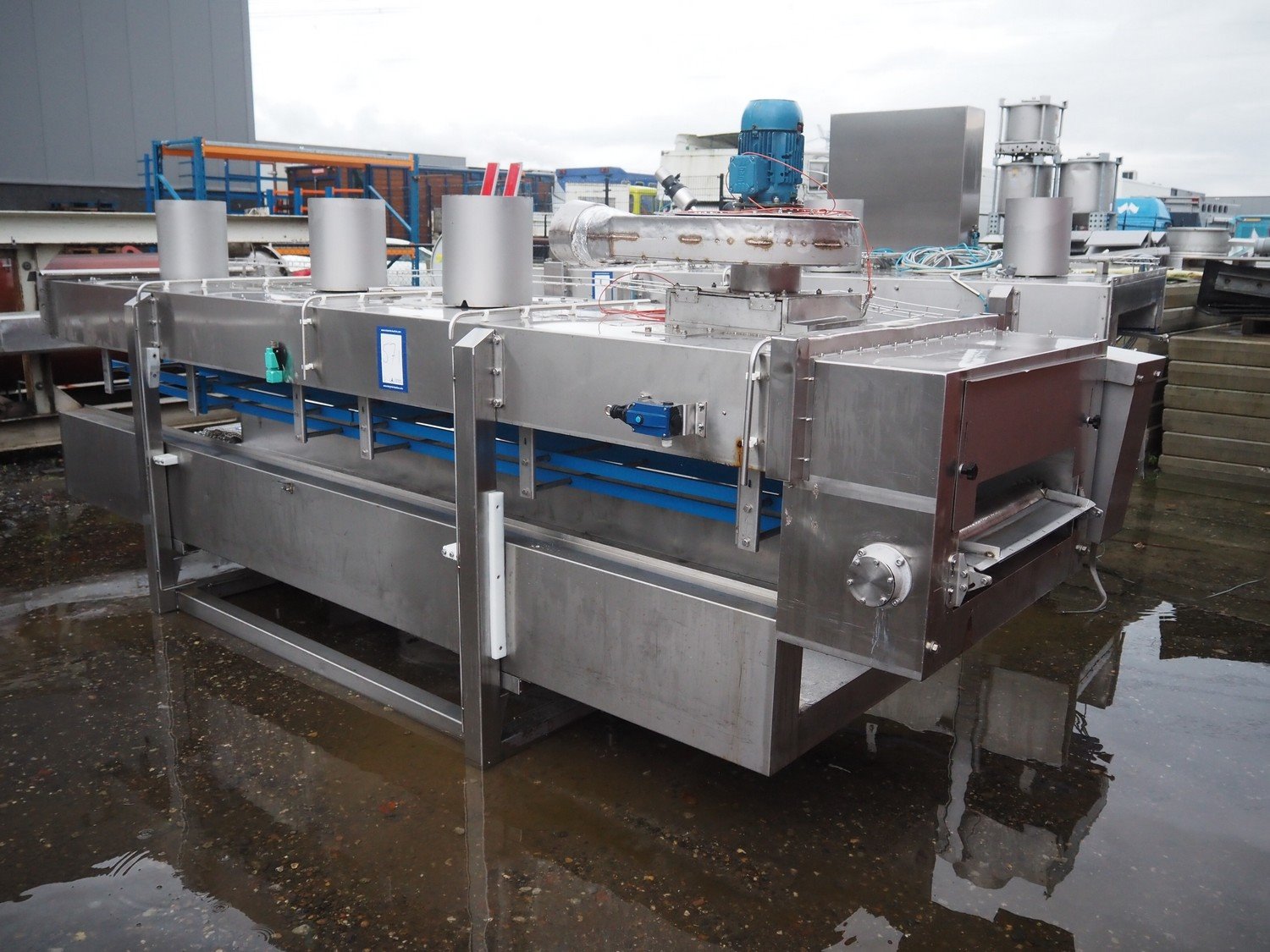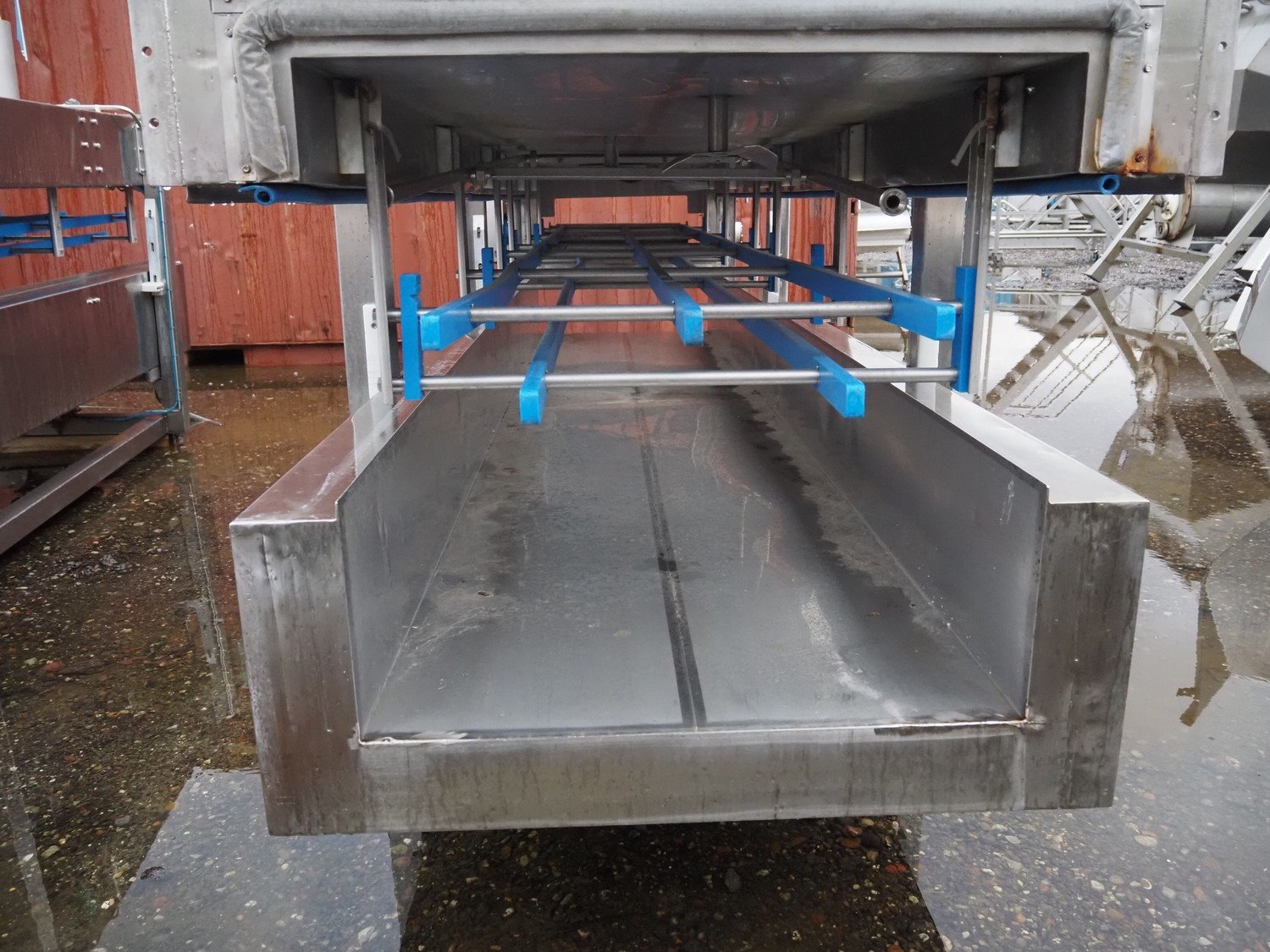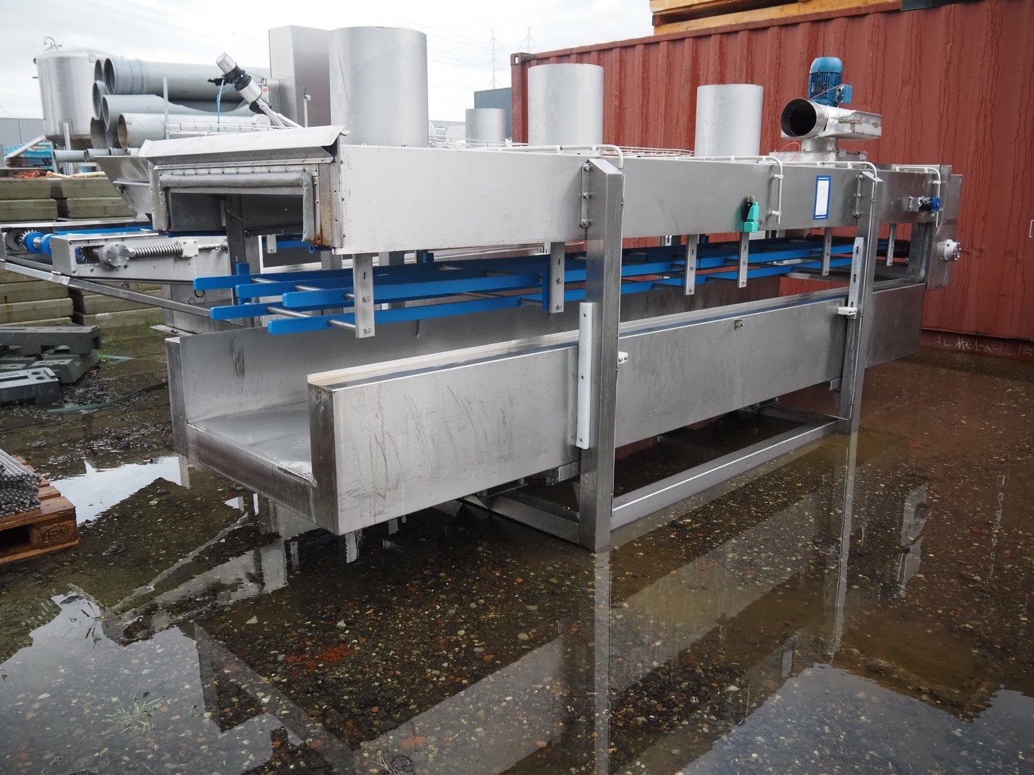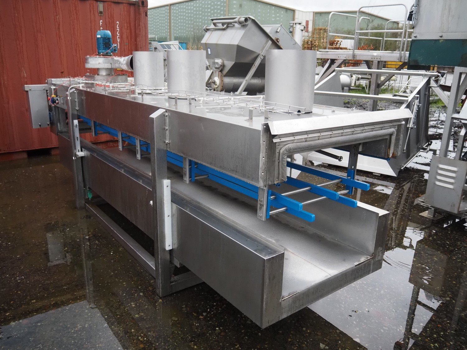 Thele nitrogen belt freezer, model: LN2 Froster, year of construction: 2018, 400 V, 3 Ph, 50 Hz, 25/24 A, 7 kW, maximum belt width: 660 mm, dimensions: (1x) 3900 mm x 1400 mm x 2400 mm, (1x) 4400 mm x 1600 mm x 1800 mm. Incomplete.