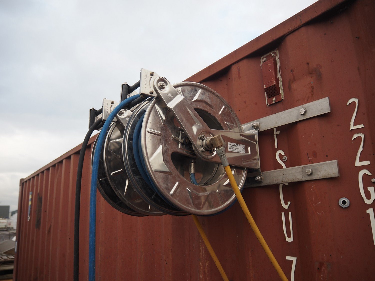 20 ft container used as soap mixing station, Teha soap mixers, 2 Ramex hose reels, dimensions: 6100 mm x 2900 mm x 2600 mm.