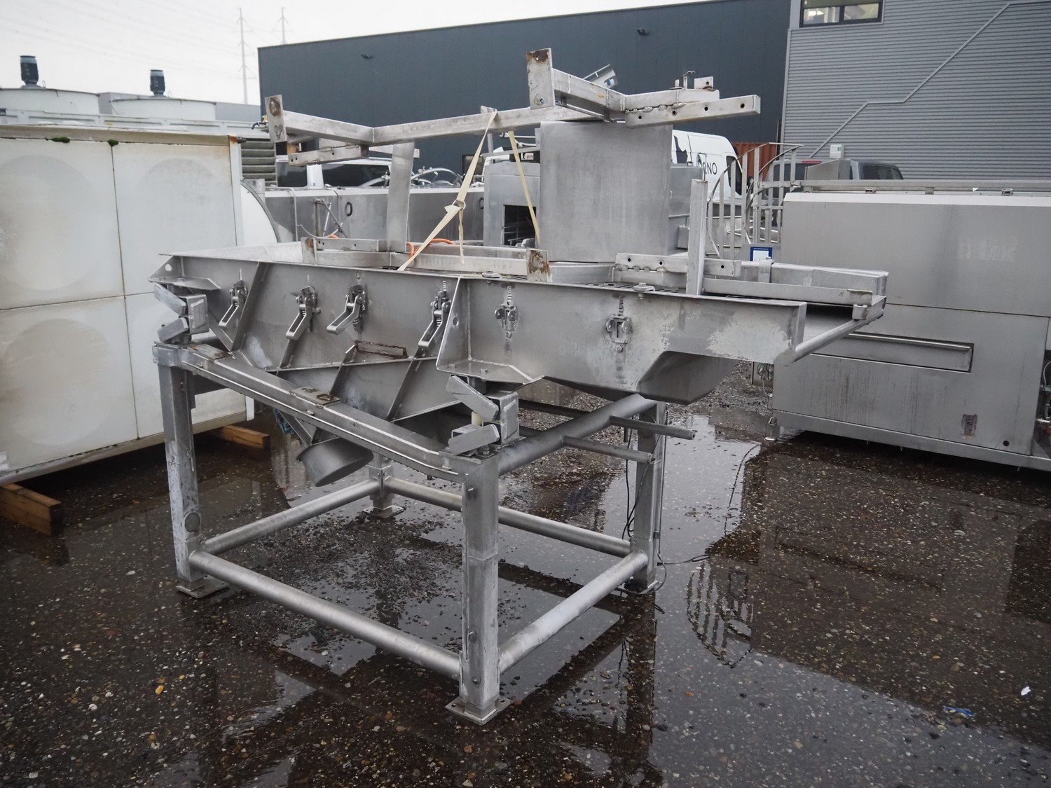 S/s vibrating gutter, gutter width: 880 mm, total dimensions: 2500 mm x 1250 mm x 1800 mm. Incomplete.