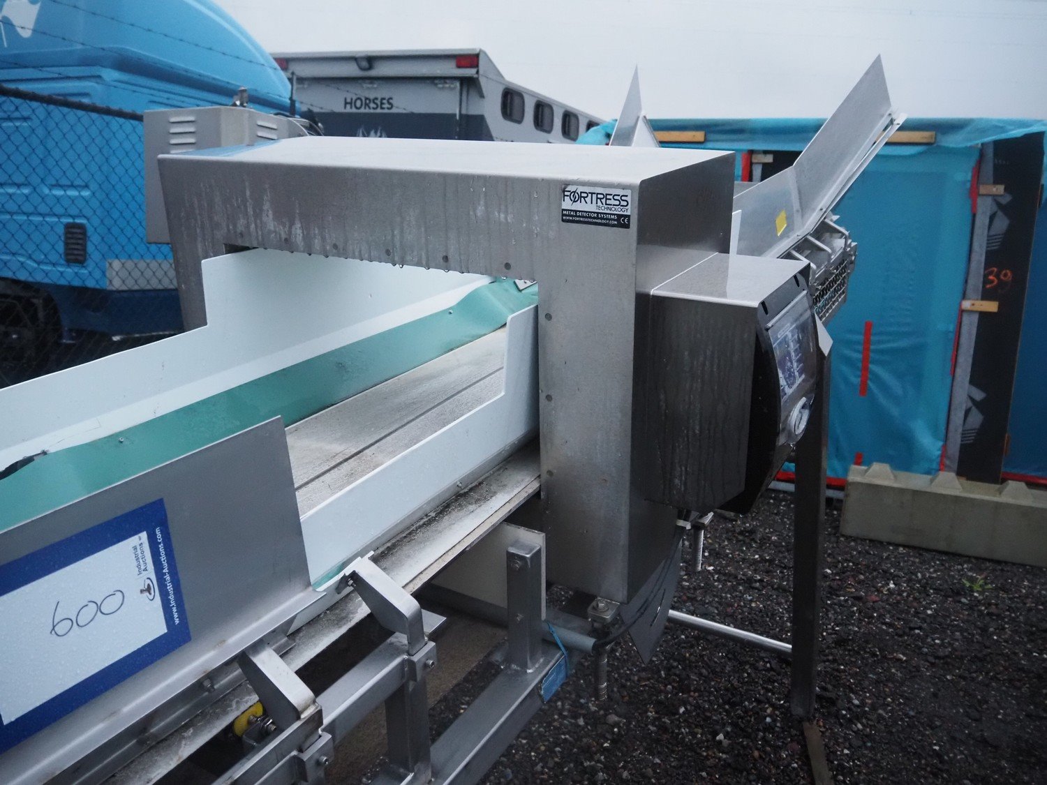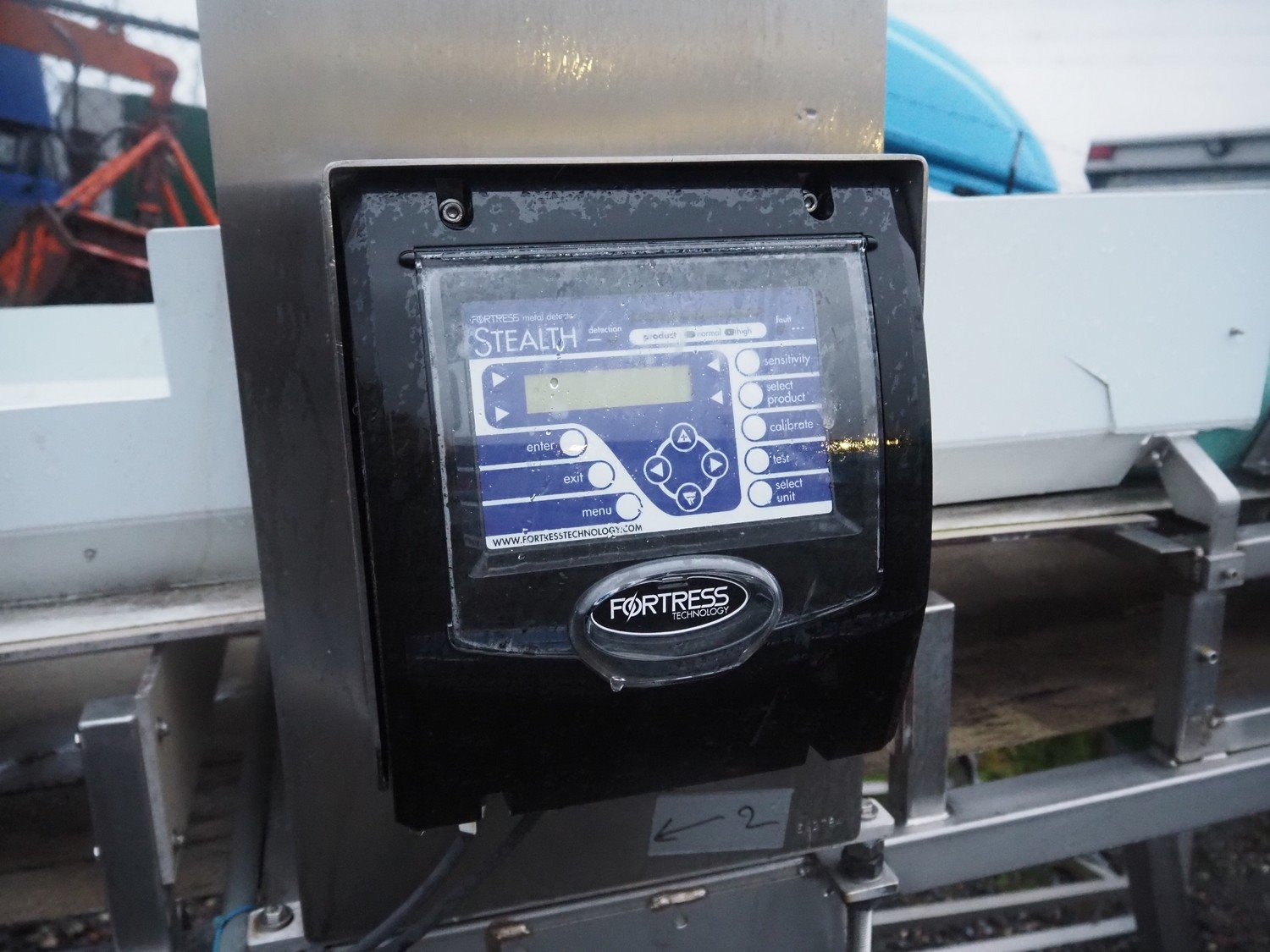Fortress metal detector, model: Fortress Stealth, plastic belt, belt width: 620 mm, clearance: 610 mm x 310 mm, total dimensions: 6300 mm x 1200 mm x 2500 mm. Incomplete, missing one leg.