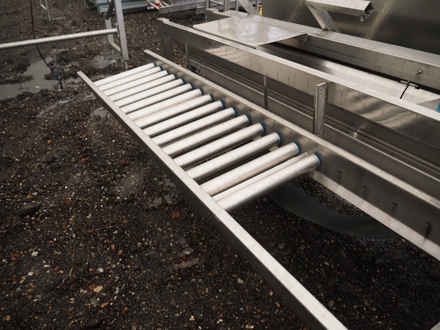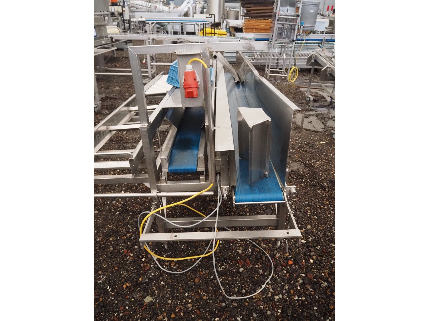 Transport belt, 2 plastic belts, belt width: 225 mm and 175 mm, s/s rollers, roller width: 400 mm, total dimensions: 3950 mm x 1400 mm x 1360 mm.