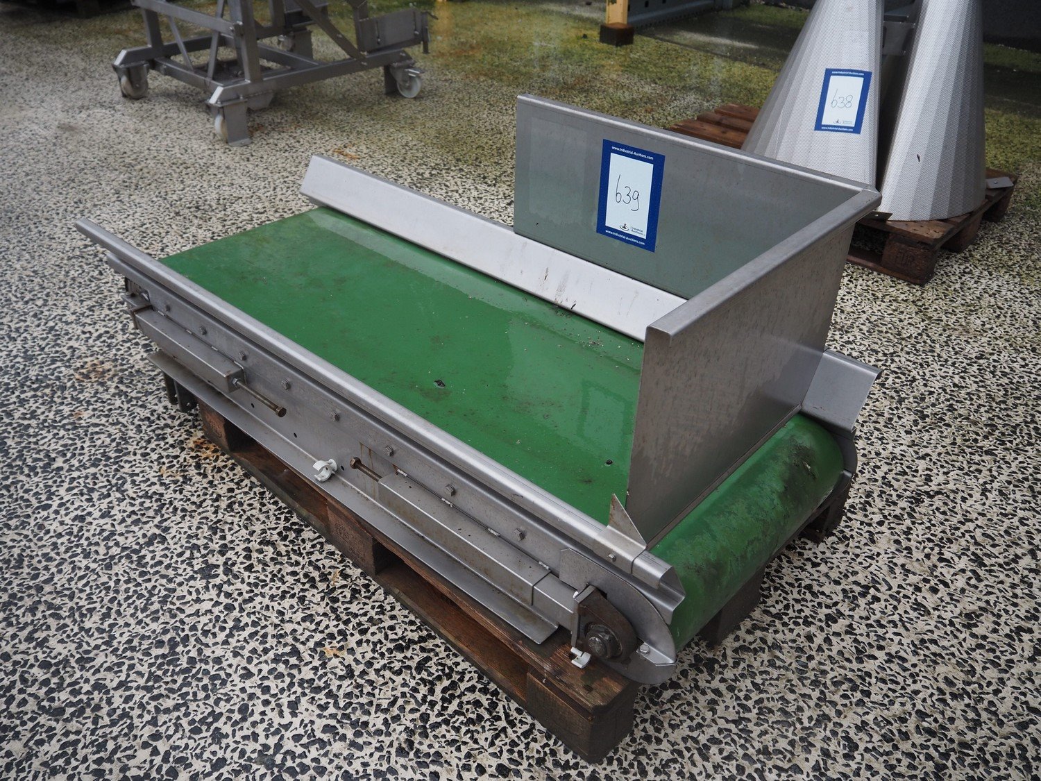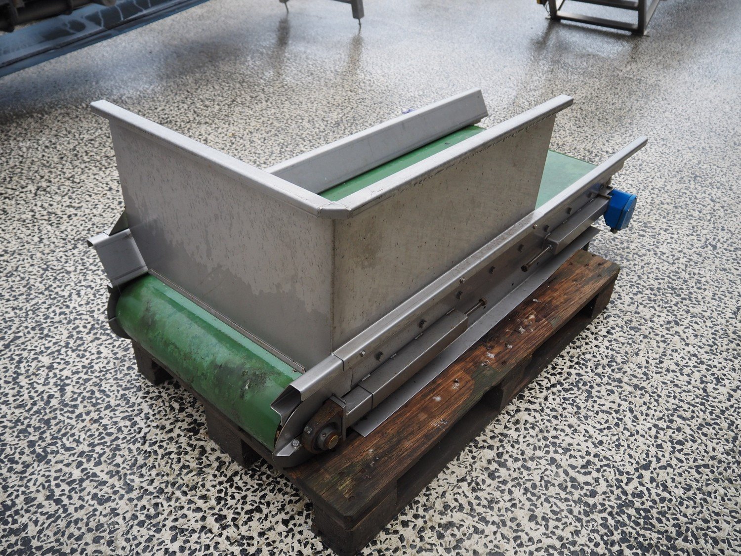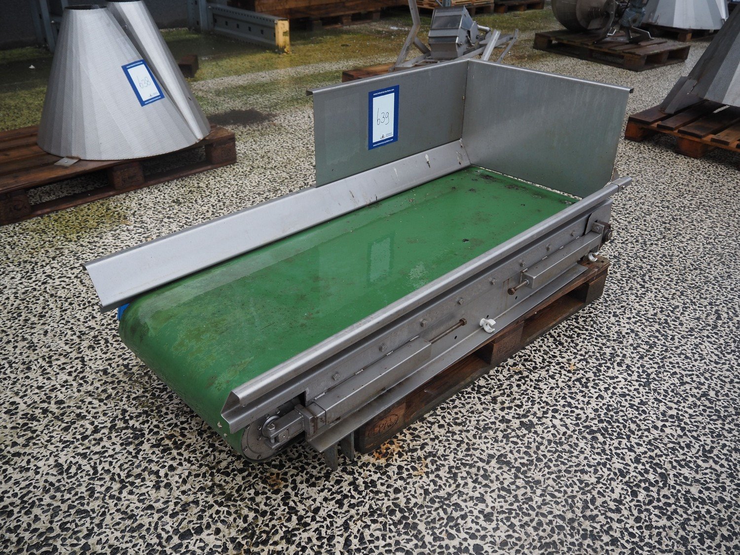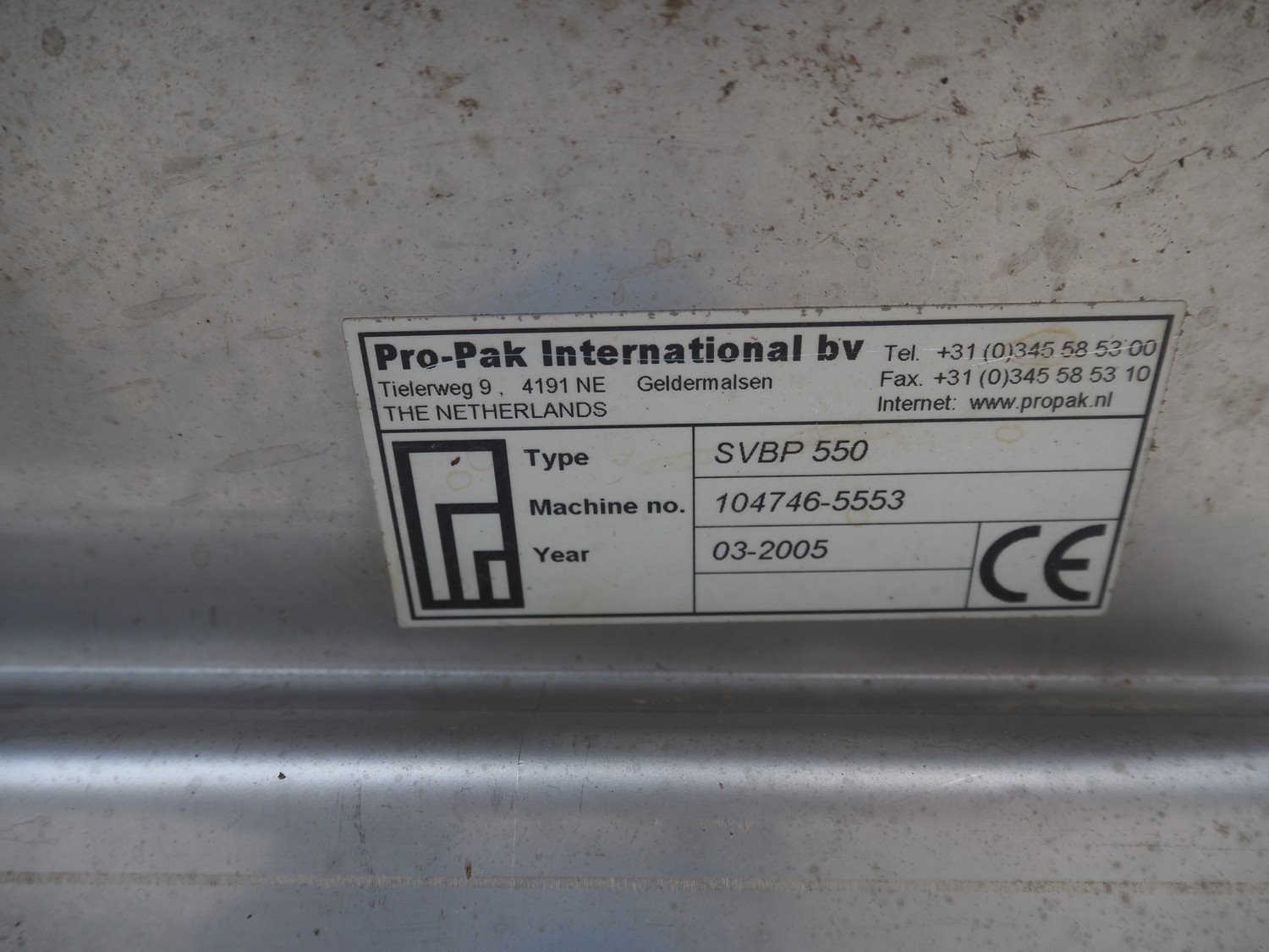 Pro-Pak International transport belt, type: SVBP 550, machine number: 104746-5553, year of construction: 03-2005, s/s frame, plastic belt, belt width: 550 mm, total dimensions: 1600 mm x 700 mm x 700 mm.