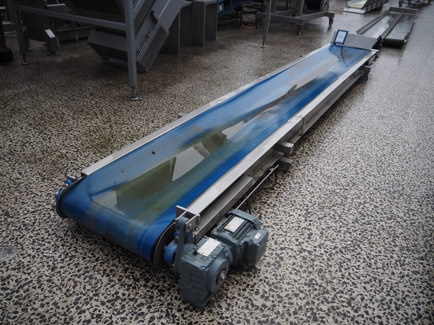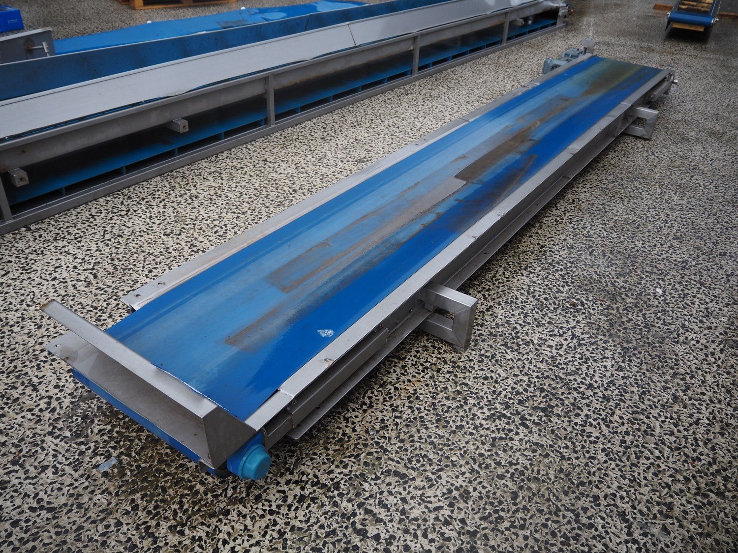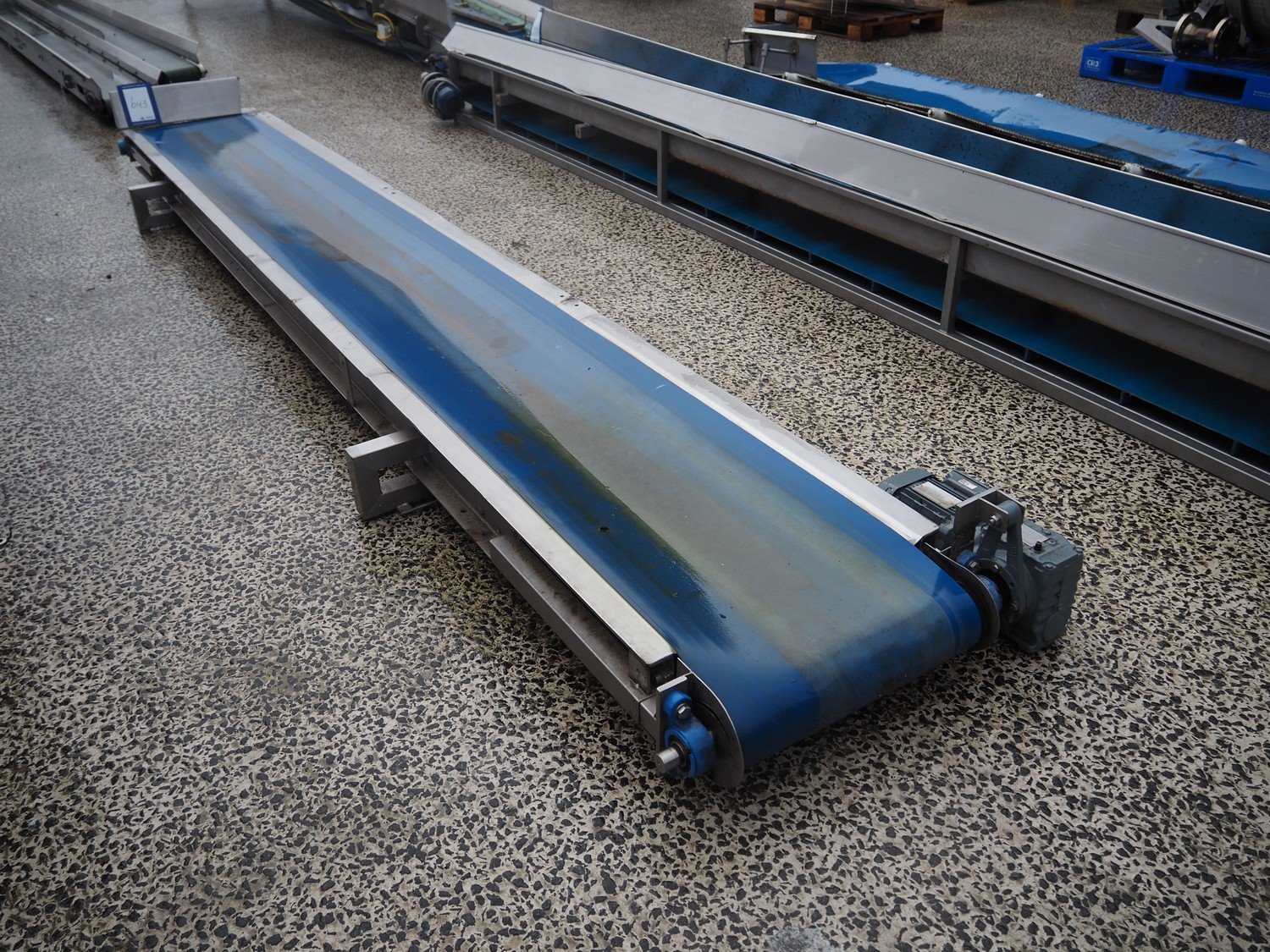Transport belt, s/s frame, plastic belt, belt width: 500 mm, total dimensions: 4500 mm x 900 mm x 370 mm.