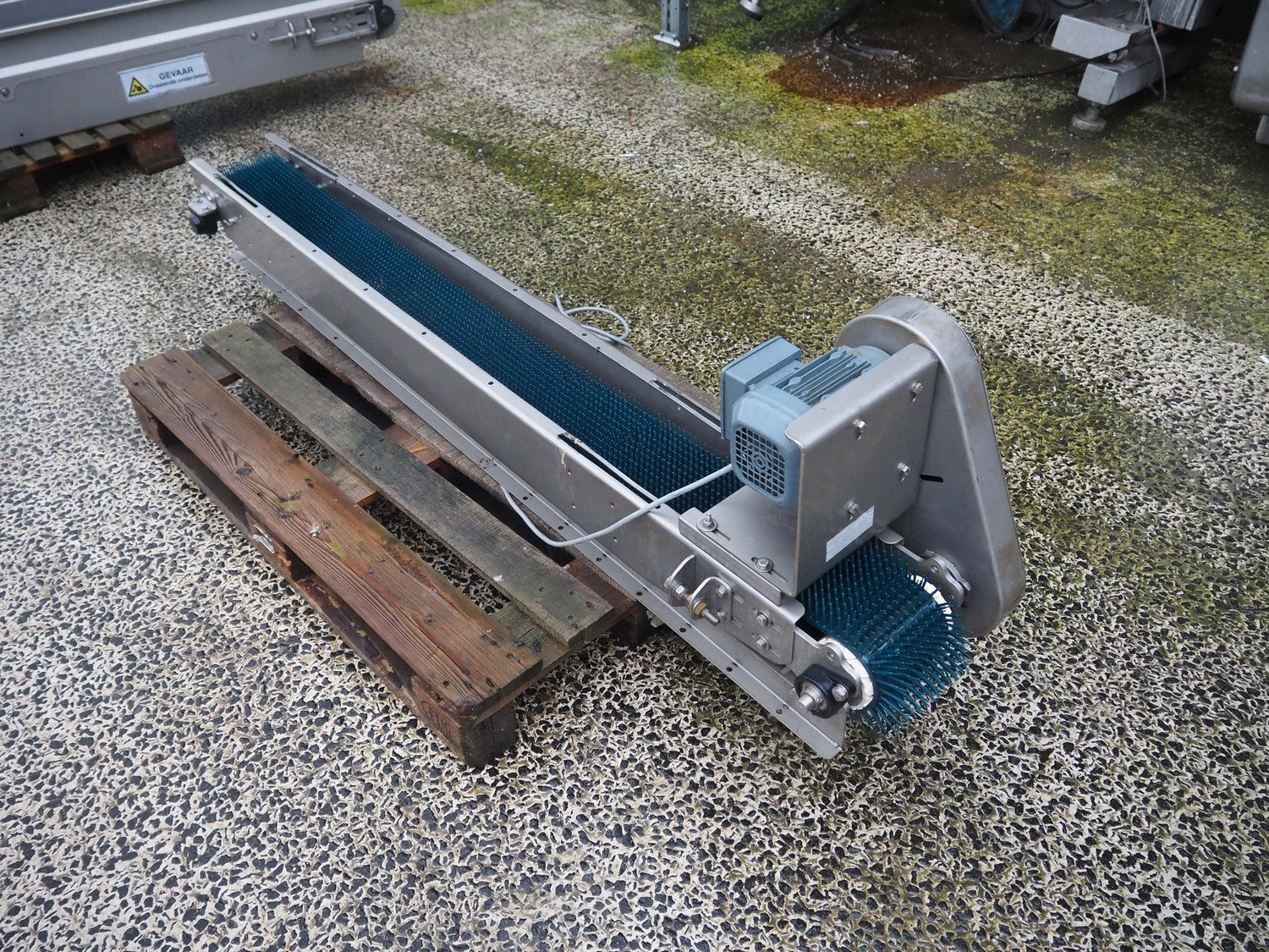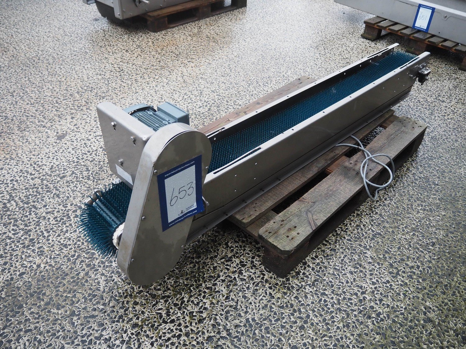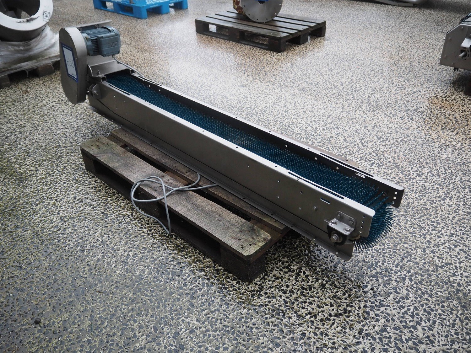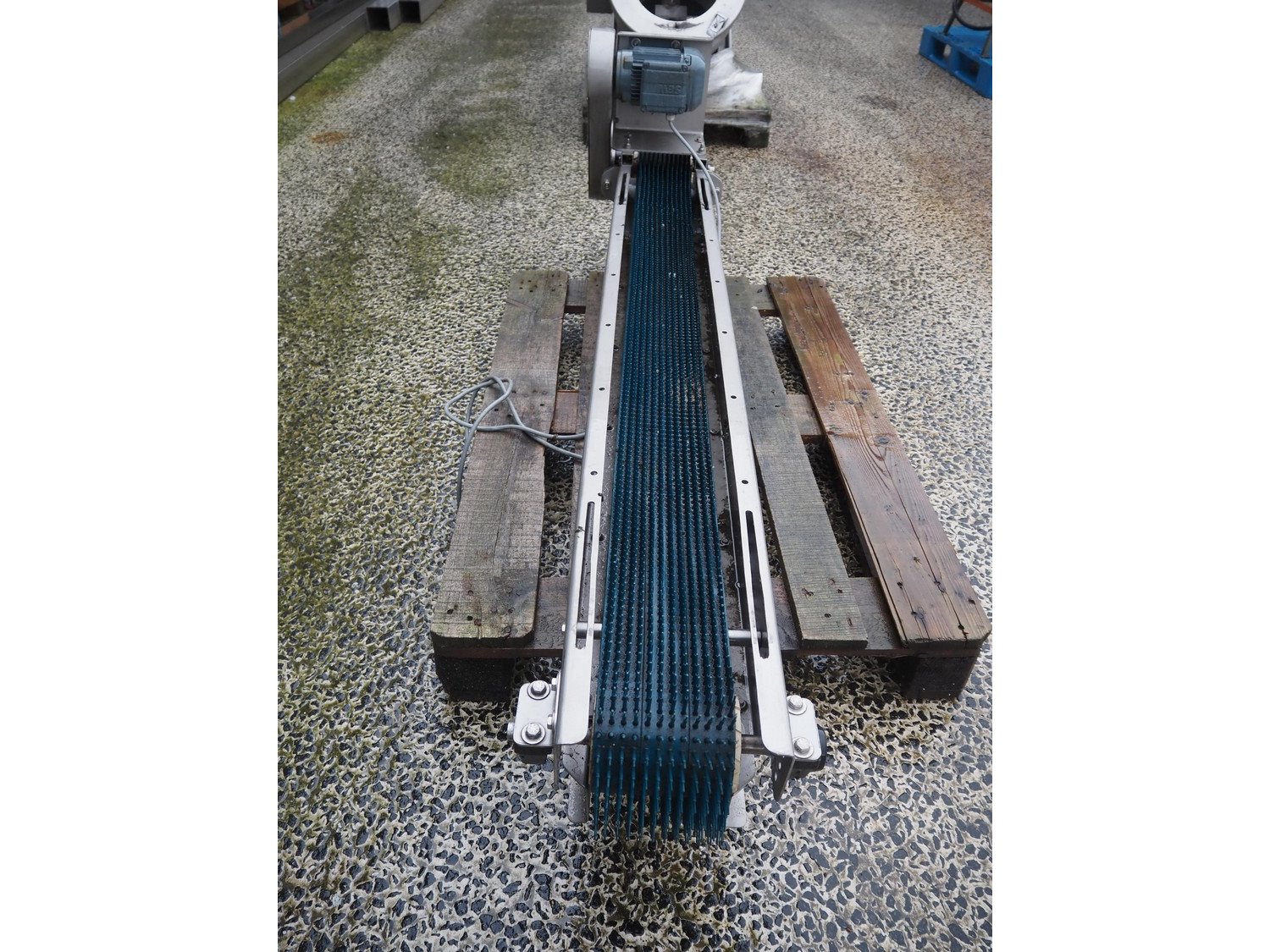 Transport belt, s/s frame, plastic belt, belt width: 140 mm, total dimensions: 2000 mm x 350 mm x 500 mm.