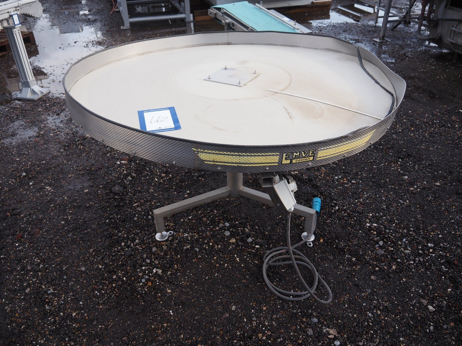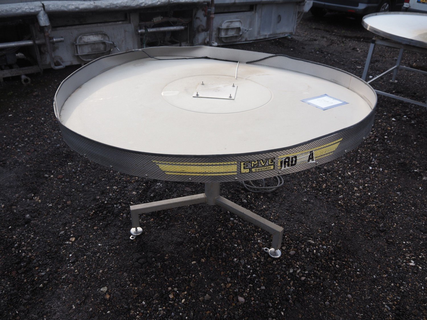 Emve turning table, s/s frame, plastic top, dimensions: Ø 1500 mm x 880 mm. Damaged.