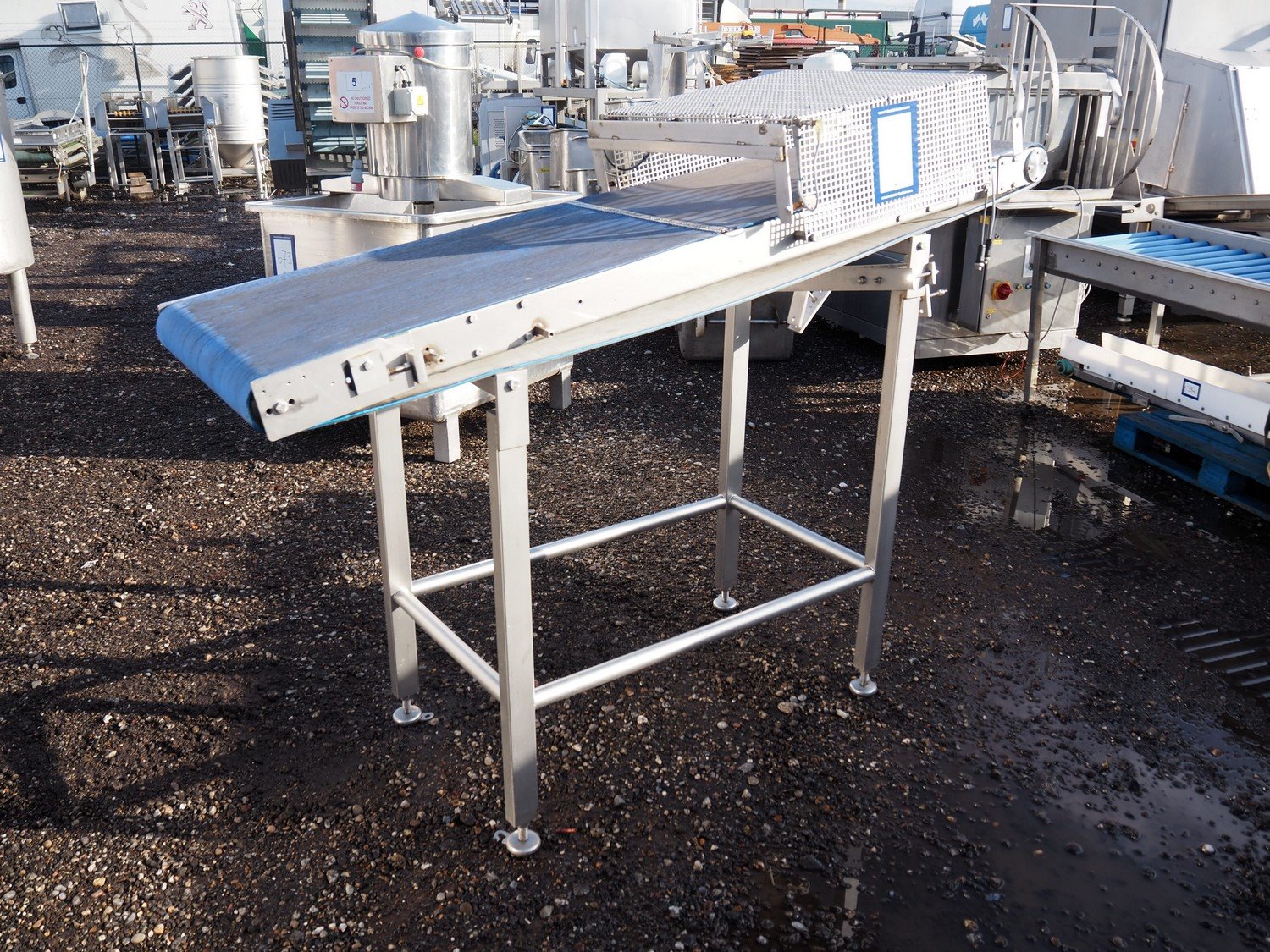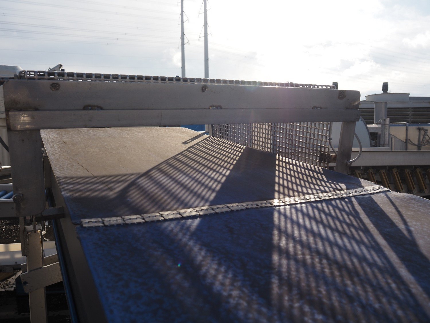 Elevating belt, plastic belt, belt width: 560 mm, elevating height: 1370 mm, total dimensions: 1950 mm x 730 mm x 1600 mm.