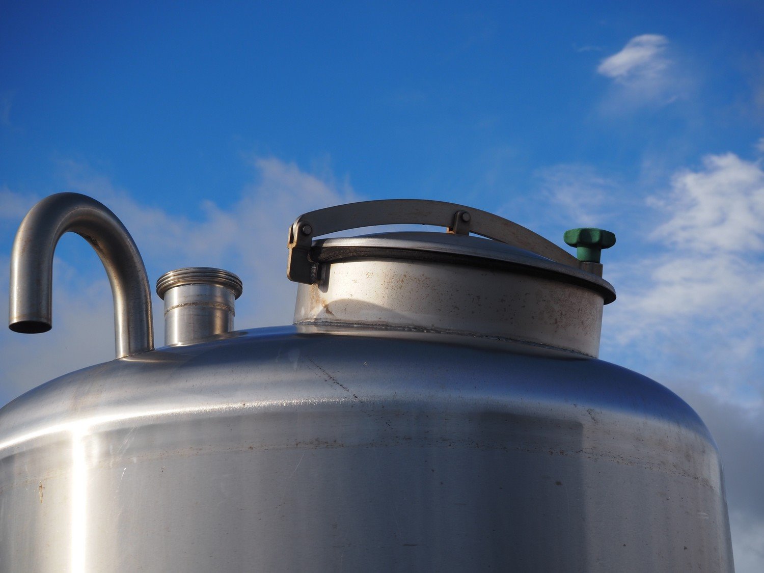 S/s tank, dimensions tank: Ø 1100 mm x 2000 mm, total dimensions: 1200 mm x 1200 mm x 2900 mm.