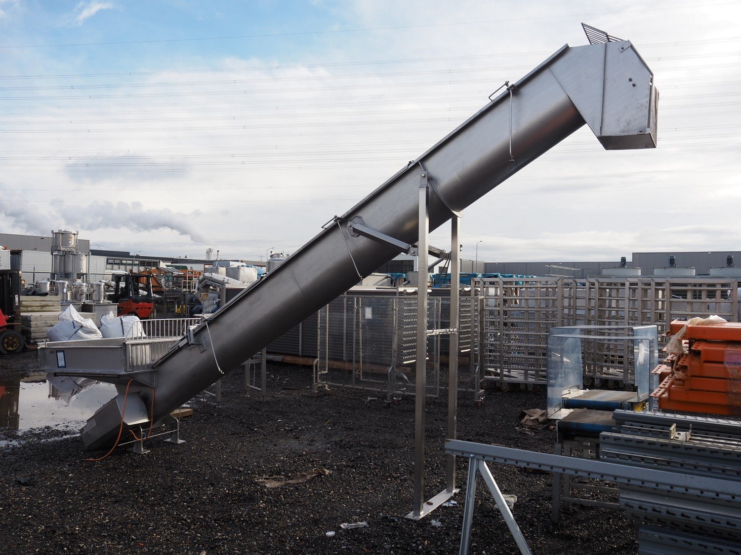 S/s elevating screw, diameter screw: 350 mm, tier: 330 mm, elevating height: 2800 mm, total dimensions: 6000 mm x 1400 mm x 3700 mm.