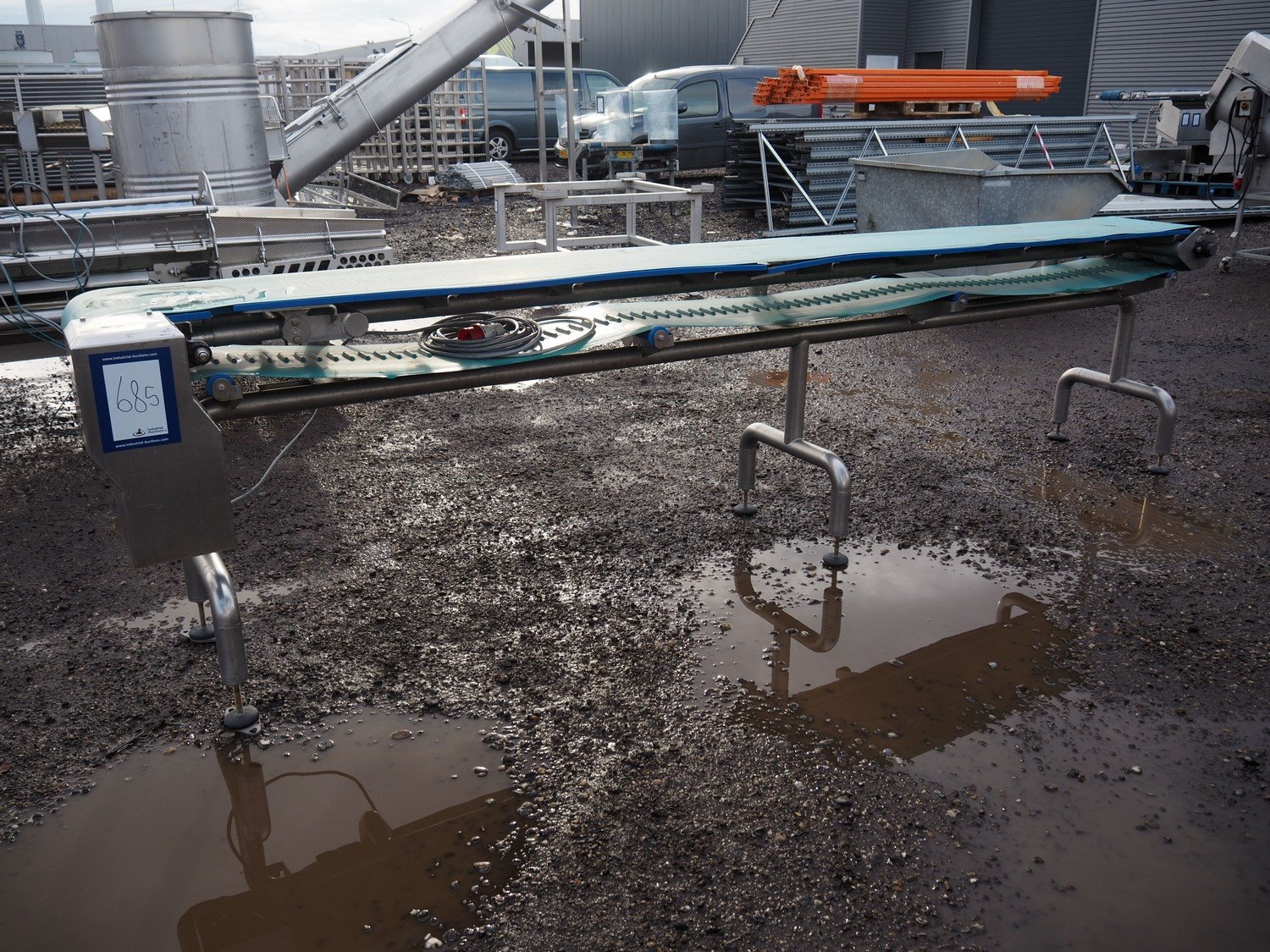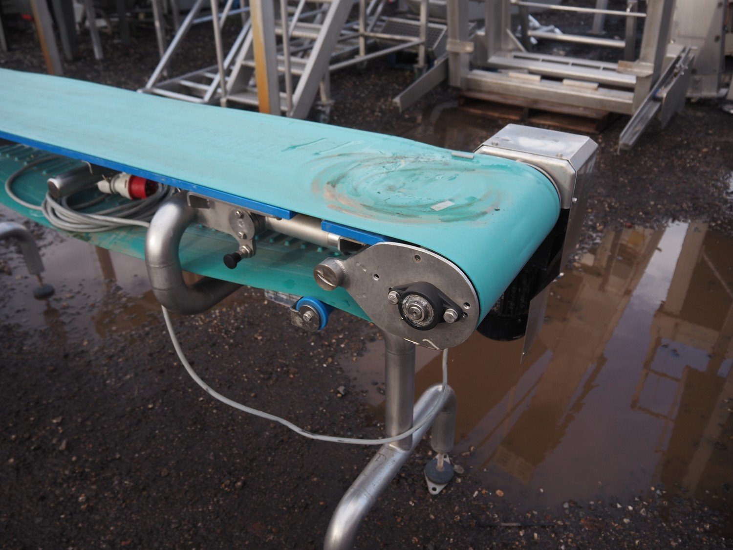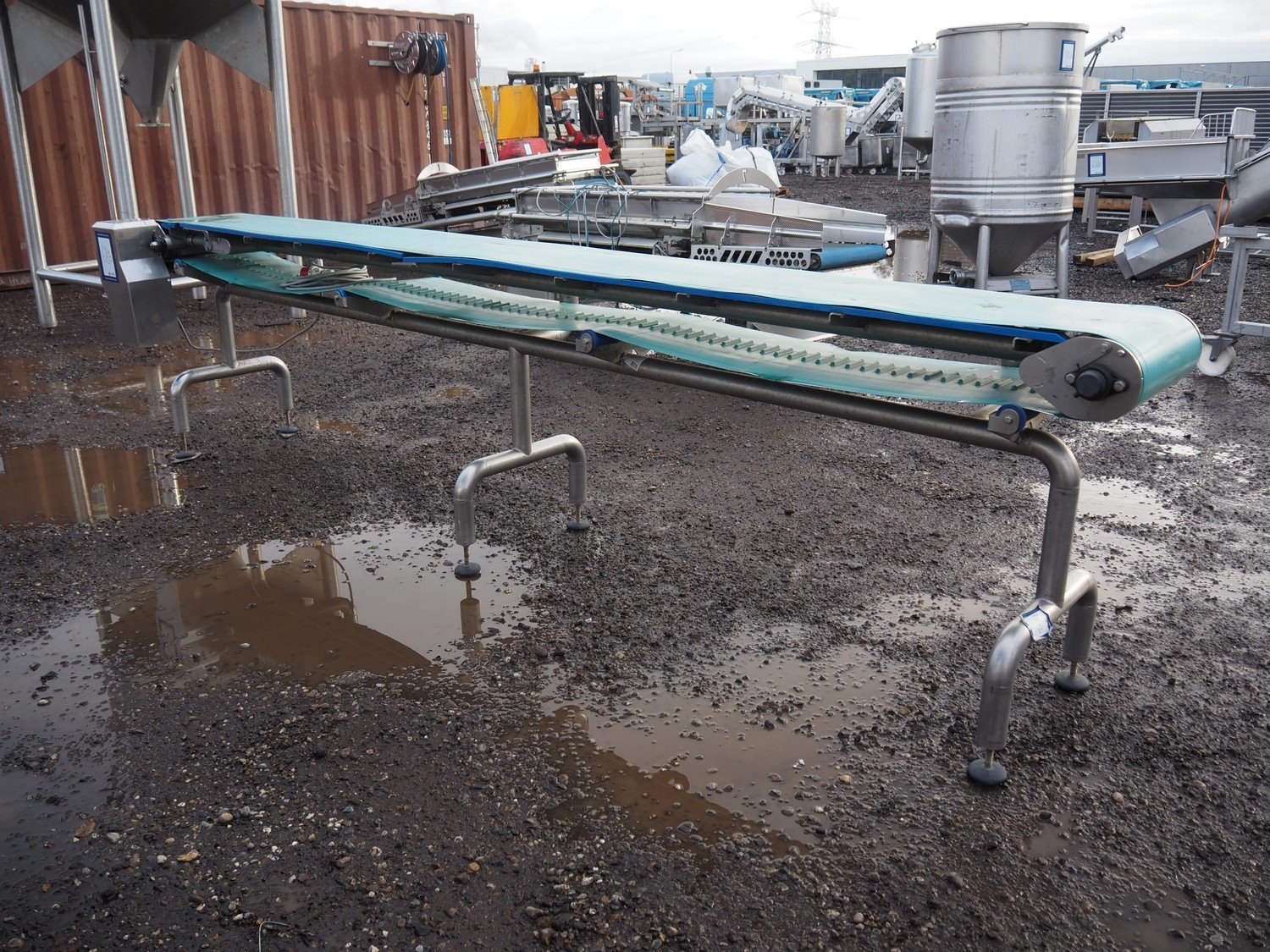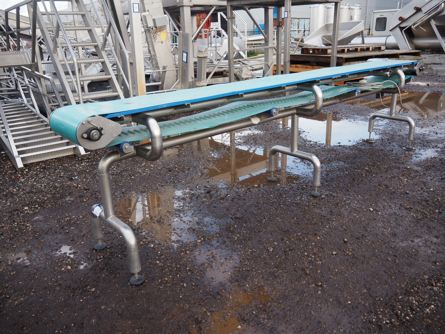 Transport belt, s/s frame, plastic belt, belt width: 370 mm, total dimensions: 3900 mm x 600 mm x 1000 mm.
