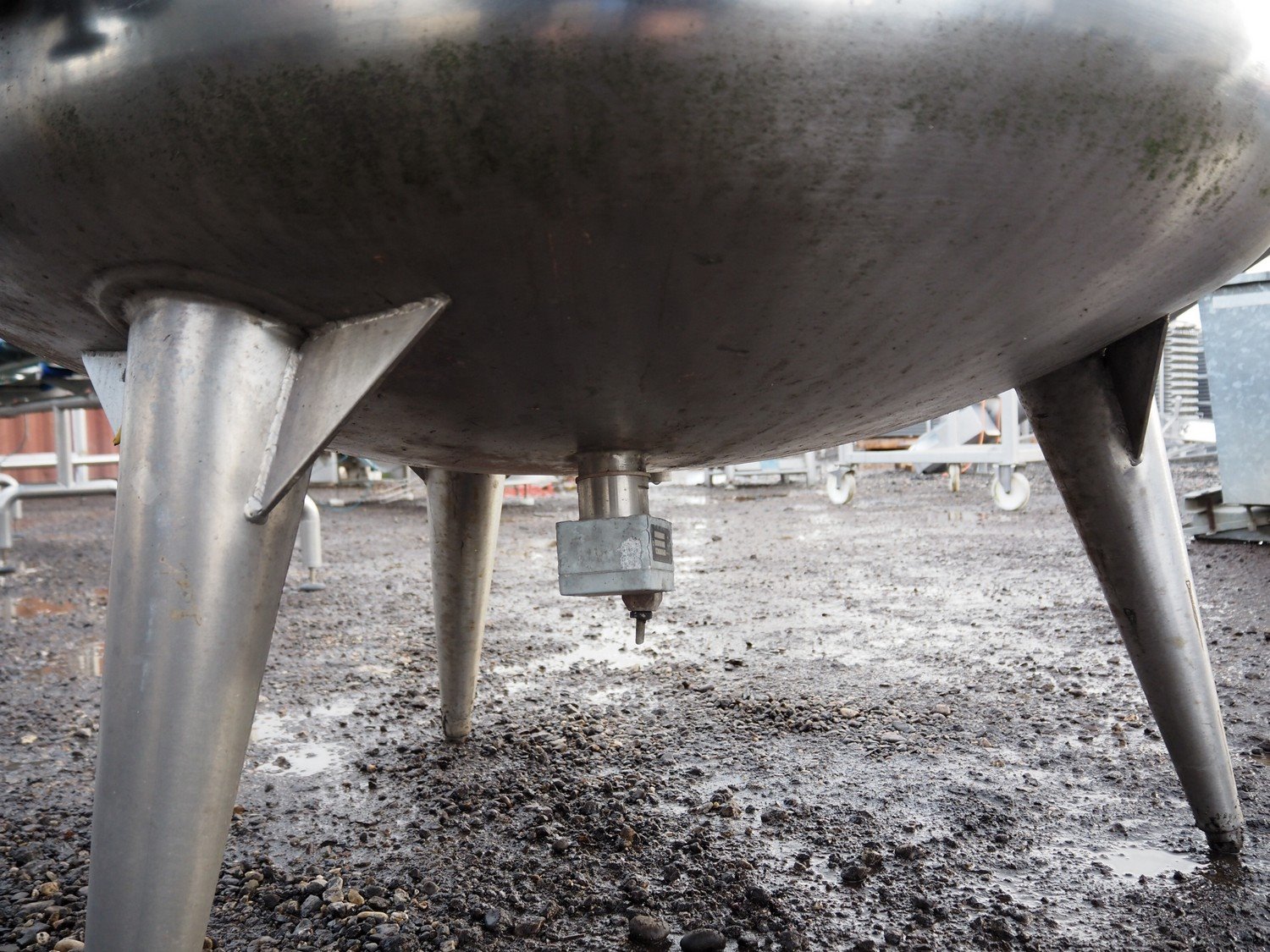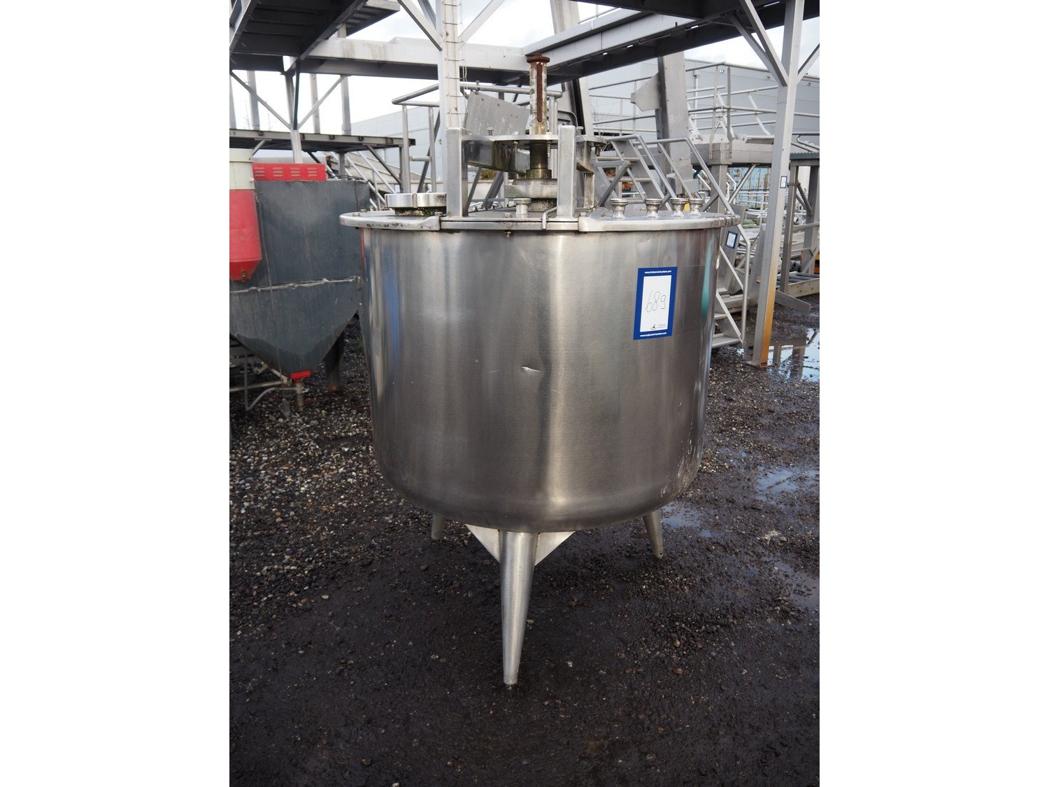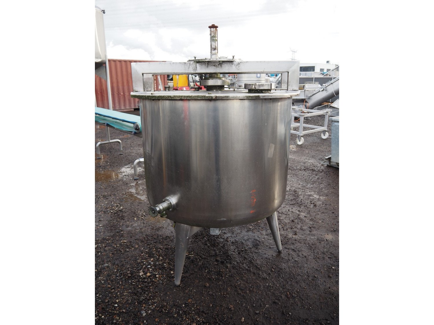 S/s mixing tank, inside dimensions: ø 1200 mm x 1000 mm, total dimensions: ø 1300 mm x 2000 mm. Missing motor.