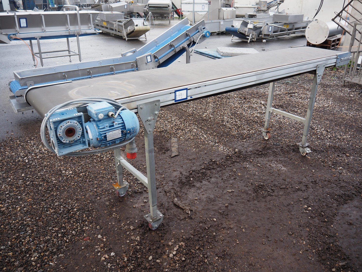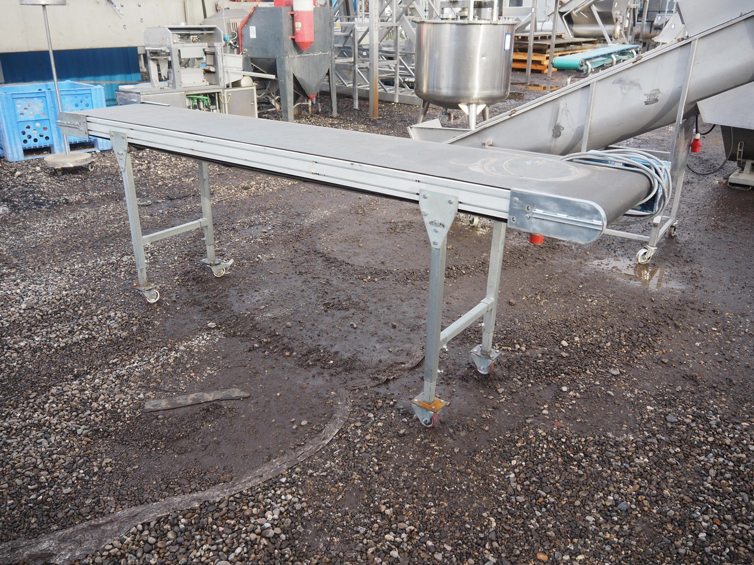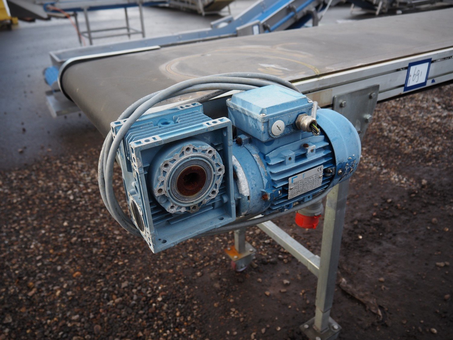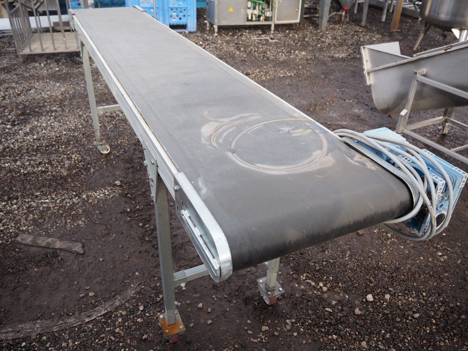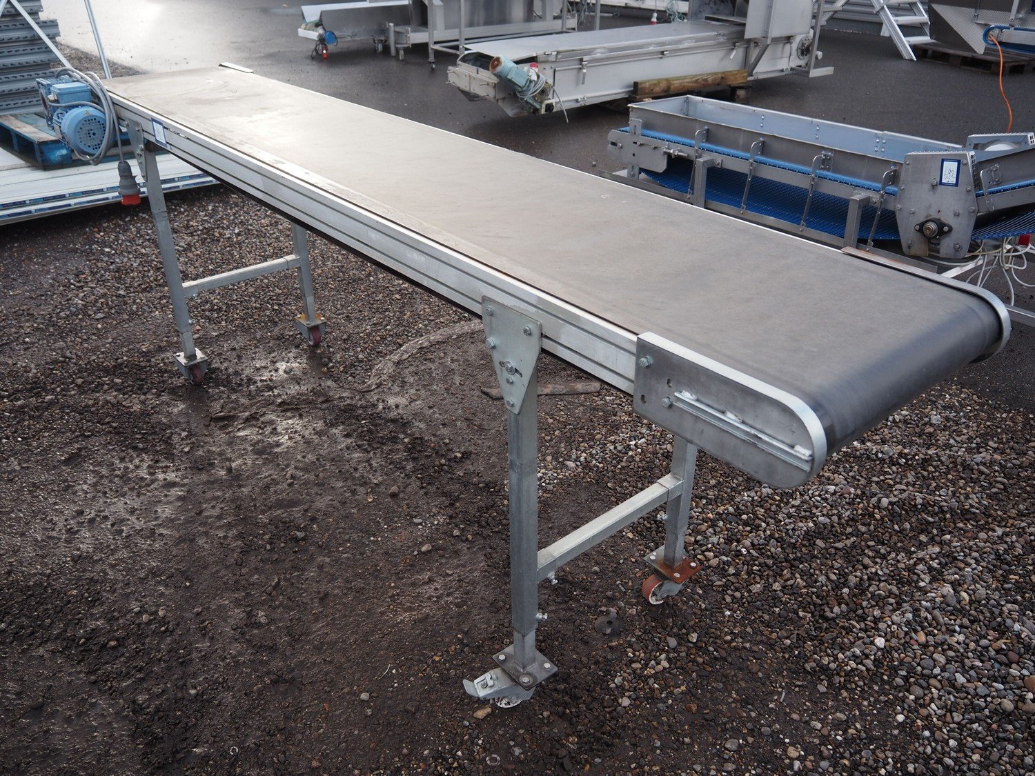 Viscon mobile transport belt, type: Vitra Bandtr. Serial number: 68419-470, year of construction: 2008, aluminium frame, plastic belt, belt width: 500 mm, total dimensions: 3000 mm x 700 mm x 1000 mm.