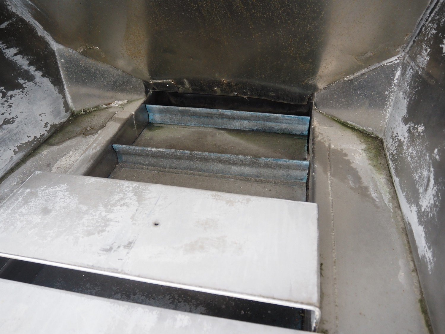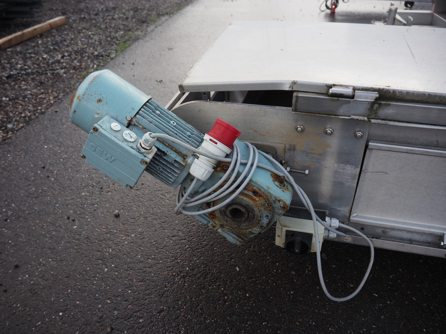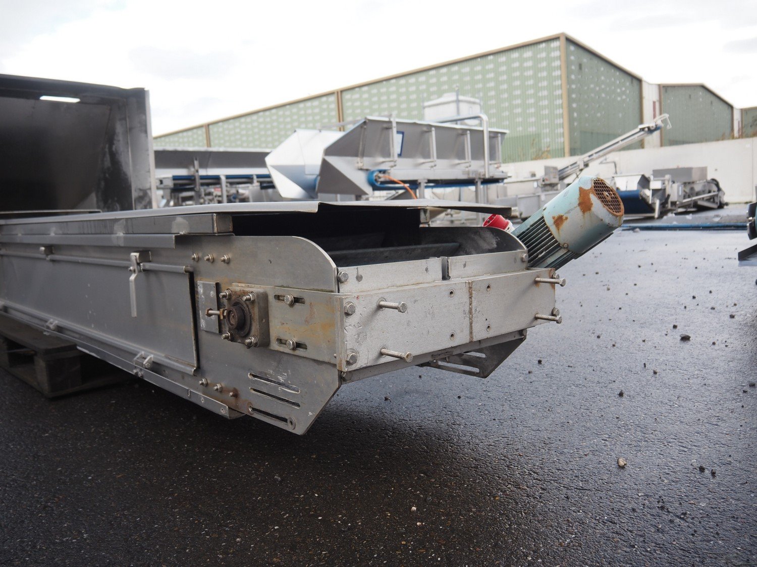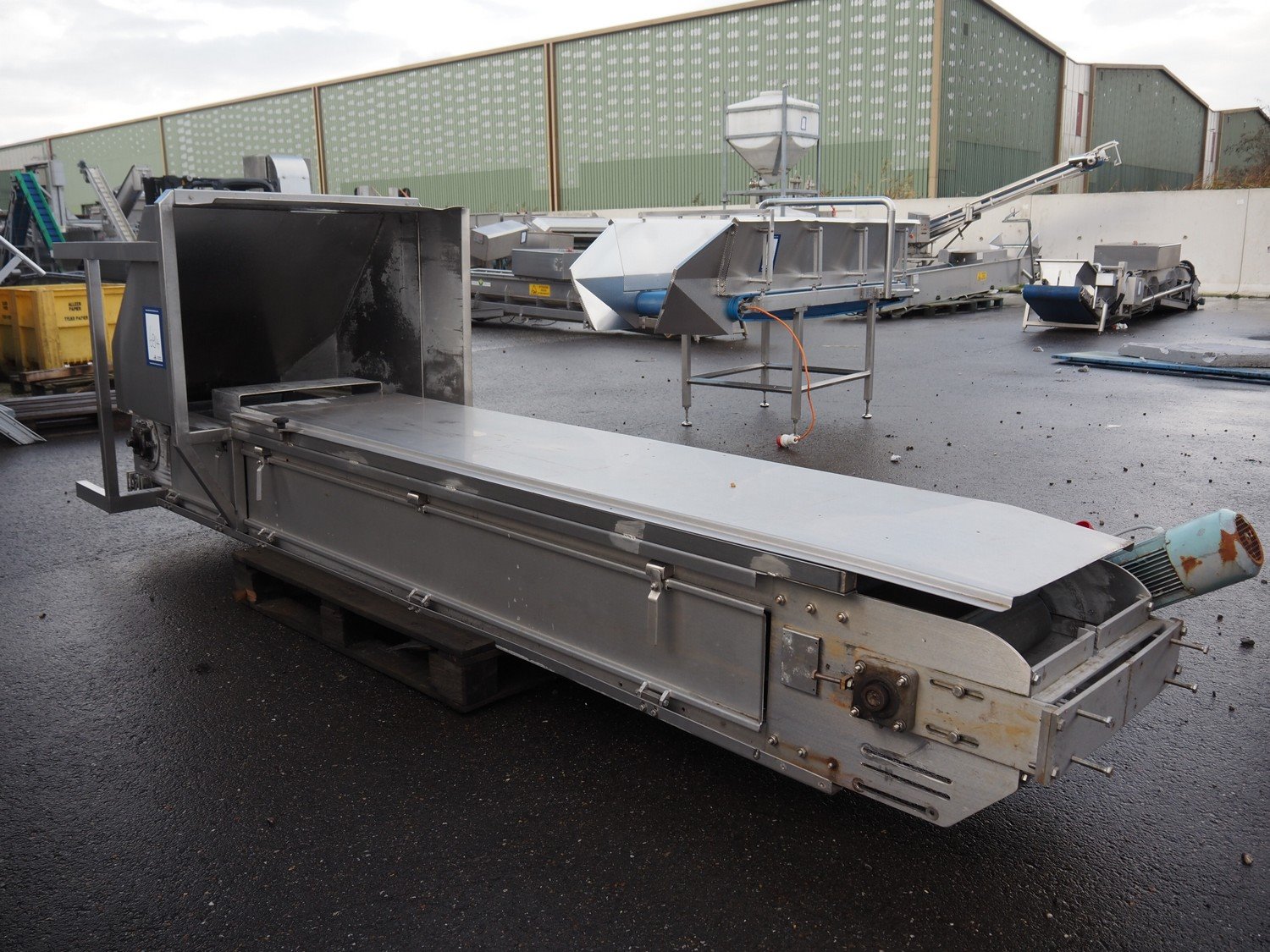 Elevating belt, s/s frame, plastic belt with dividers, belt width: 530 mm, divider height: 70 mm, distance between dividers: 260 mm, total dimensions: 3800 mm x 950 mm x 1300 mm.