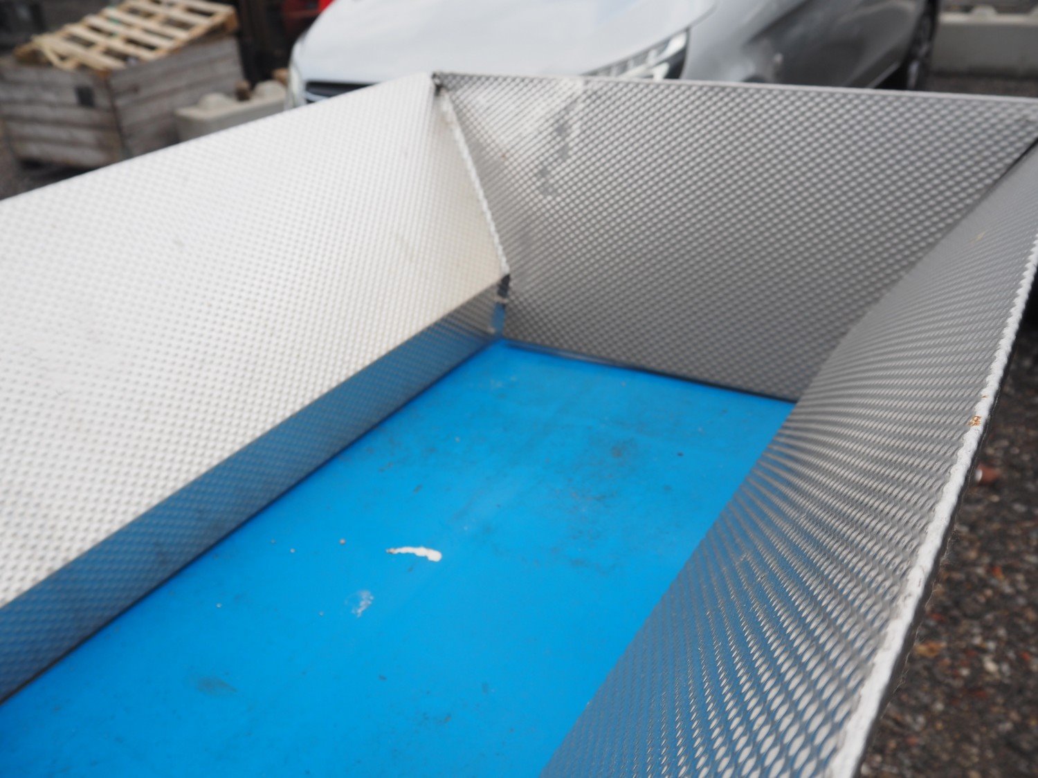 Jasa mobile transport belt, type: Aanvoerband, machine number: 12700, year of construction: 2016, 230 V, 1 Ph, 0.75 kW, s/s frame, plastic belt, belt width: 420 mm, total dimensions: 4100 mm x 750 mm x 1300 mm.
