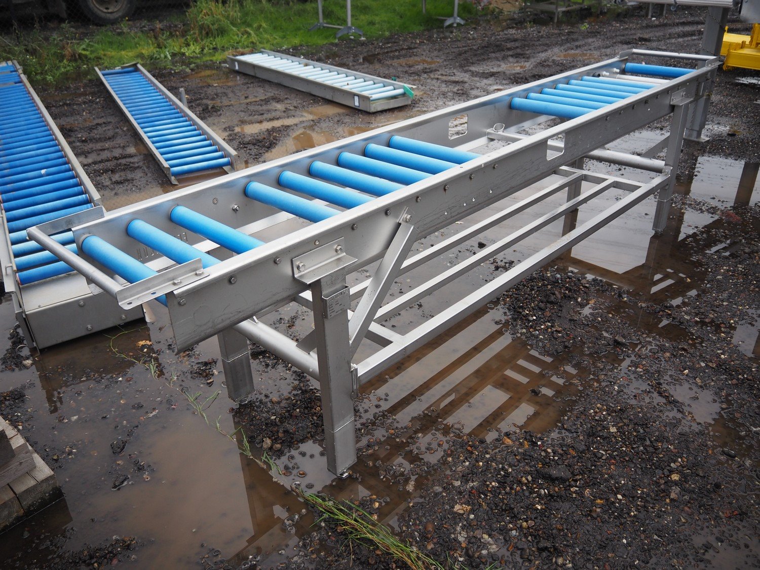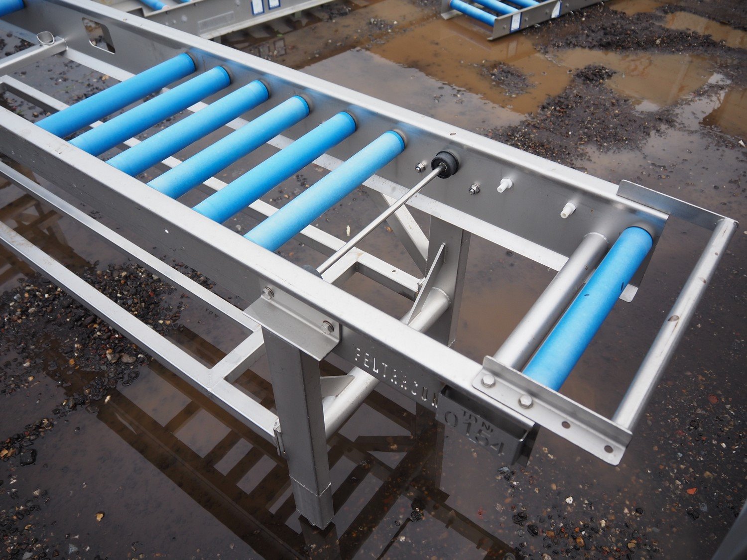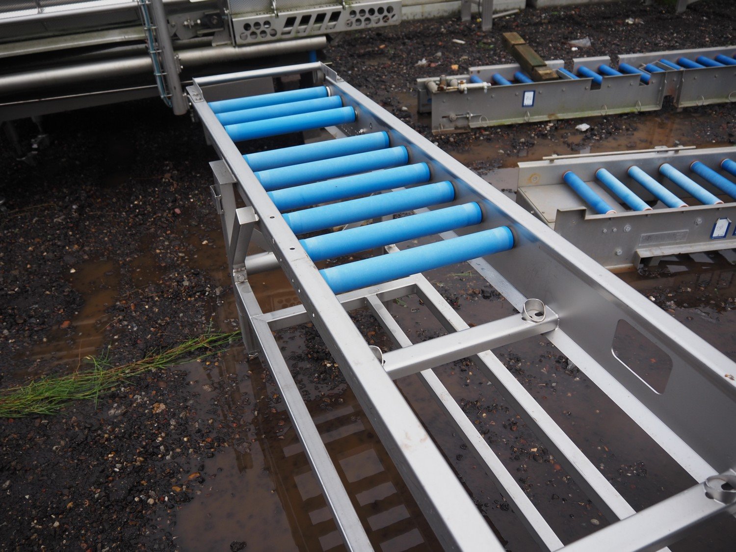 Feltracon roller conveyor, s/s frame, type: 72K, number: 3577-72K1, year of construction: 2008, plastic rollers, roller width: 400 mm, total dimensions: 3100 mm x 500 mm x 800 mm.