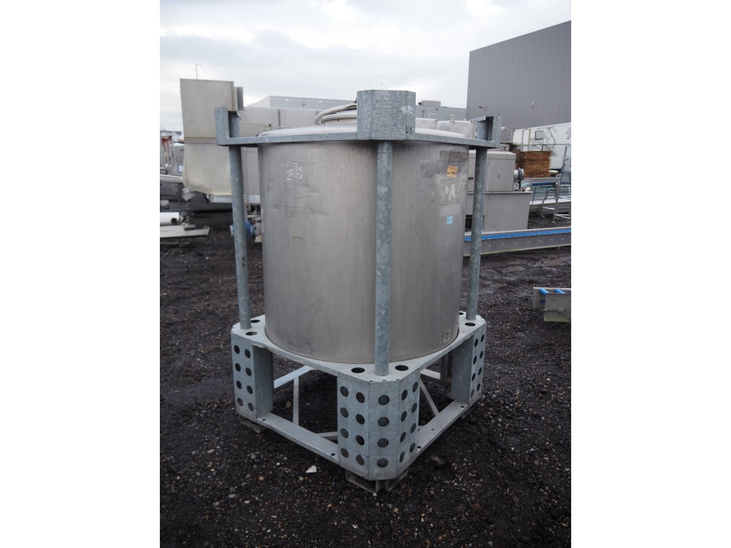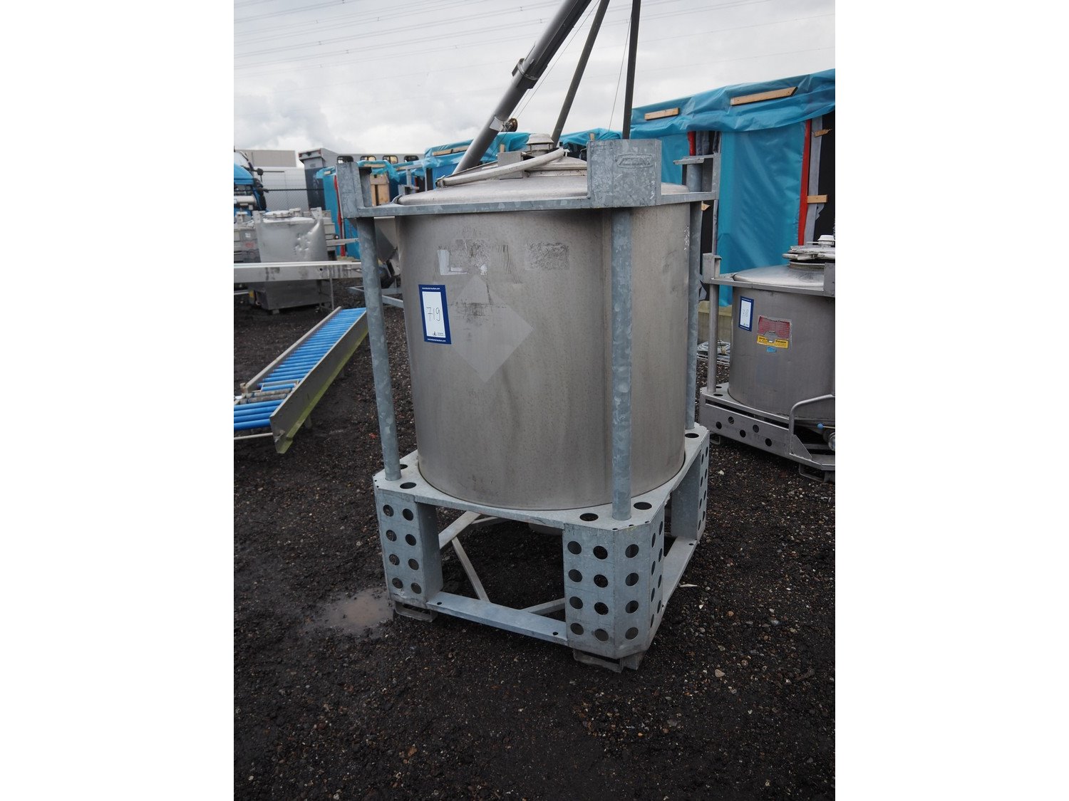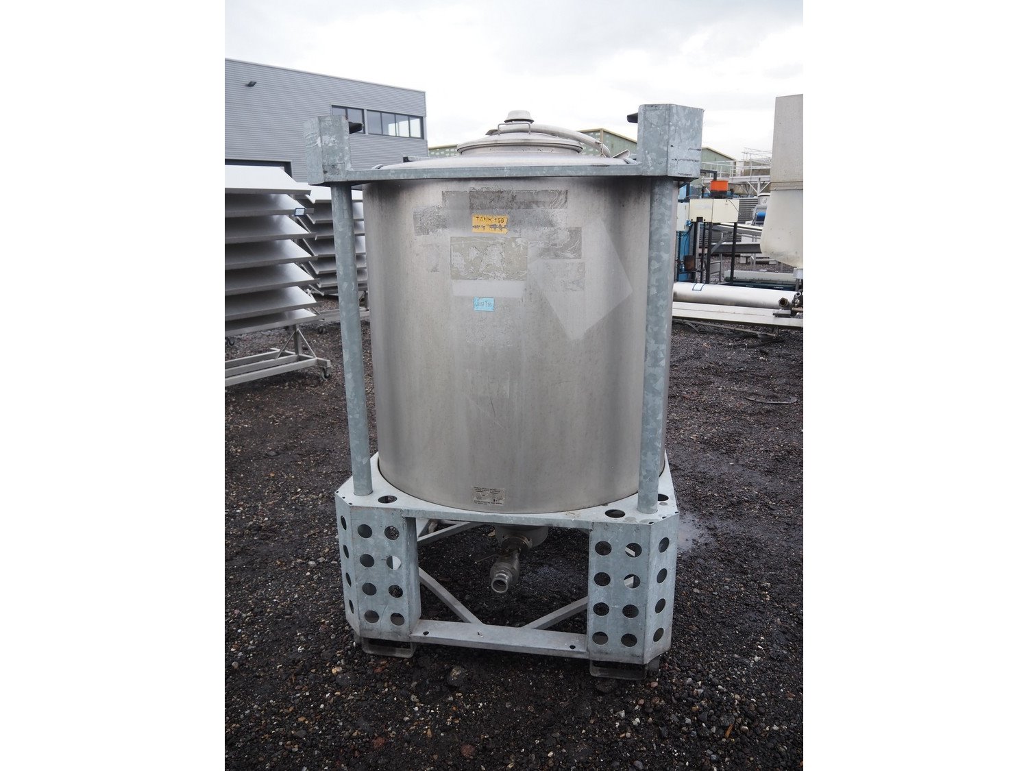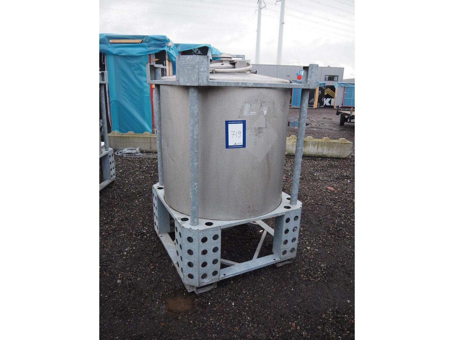 Behälter kg - Bremen s/s tank on steel frame, volume: 1081 liter, dimensions frame: 1150 mm x 1150 mm x 1750.