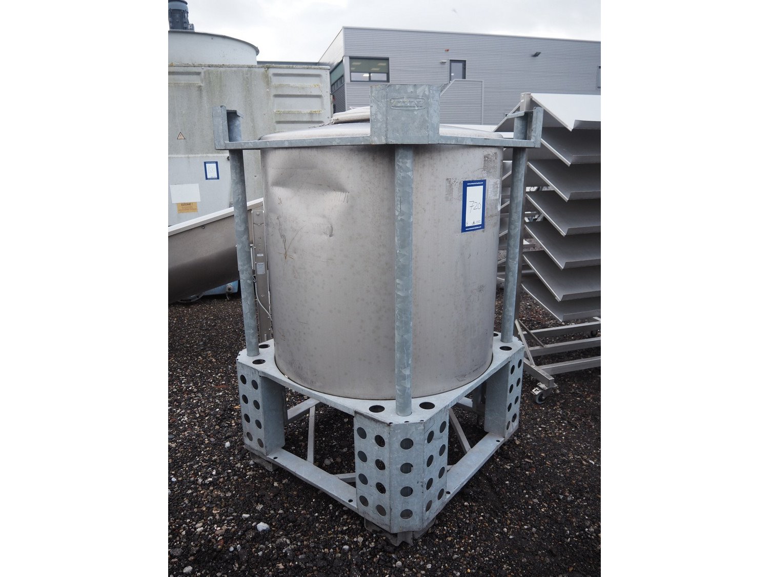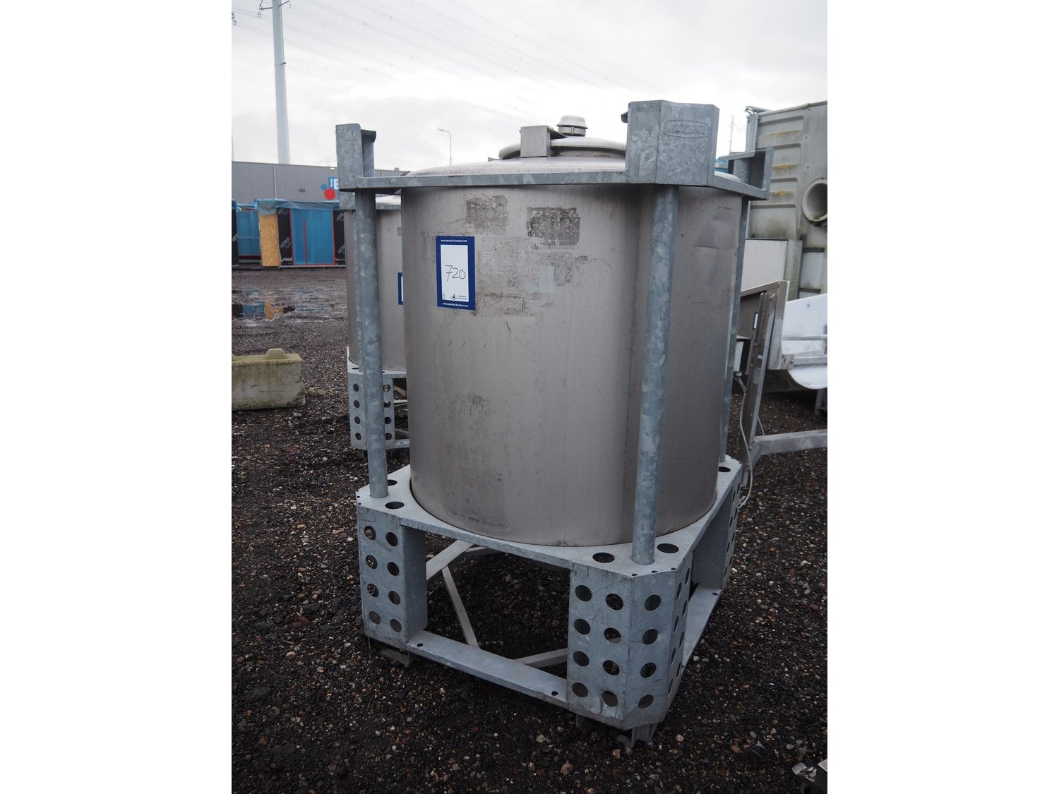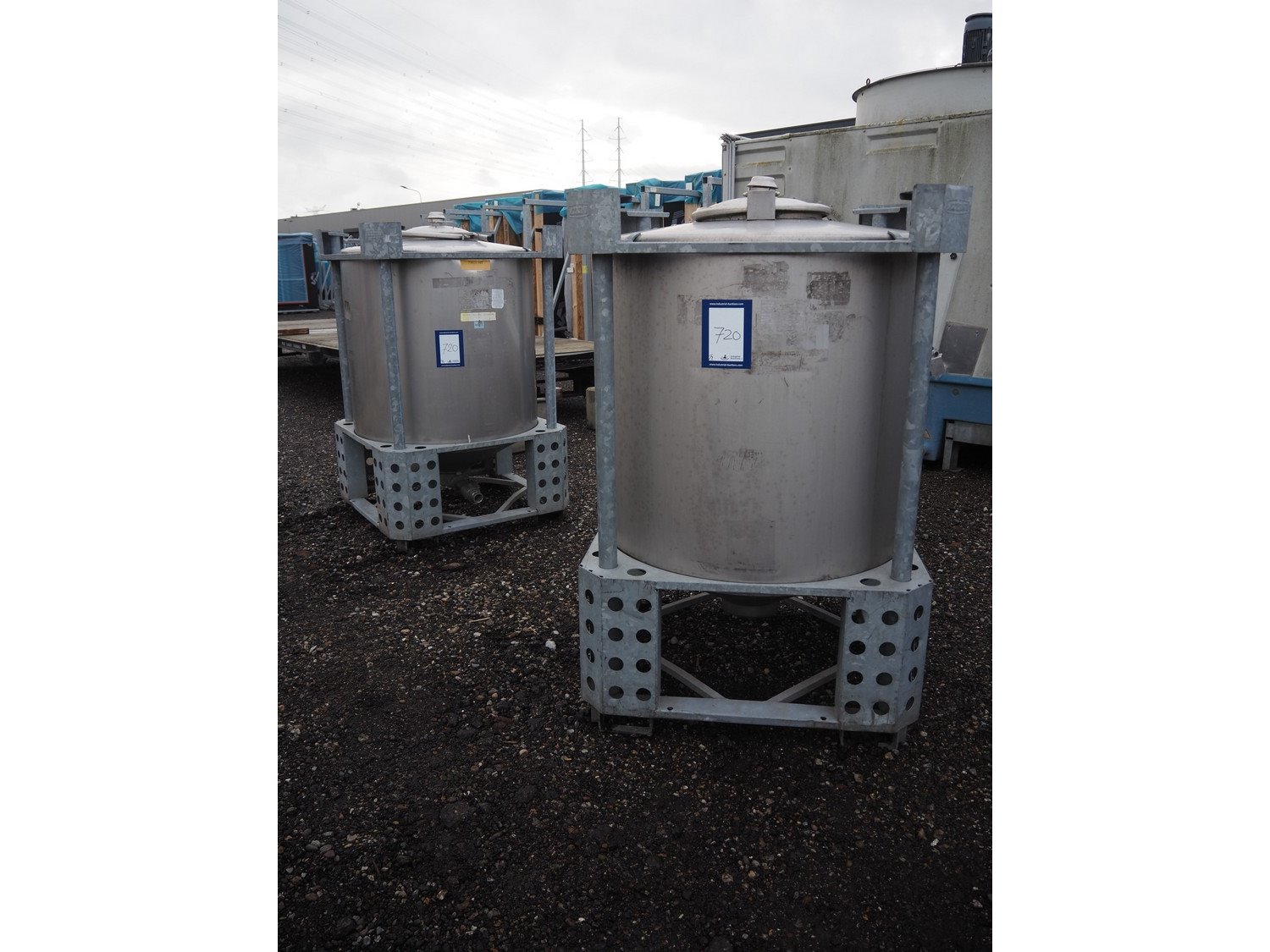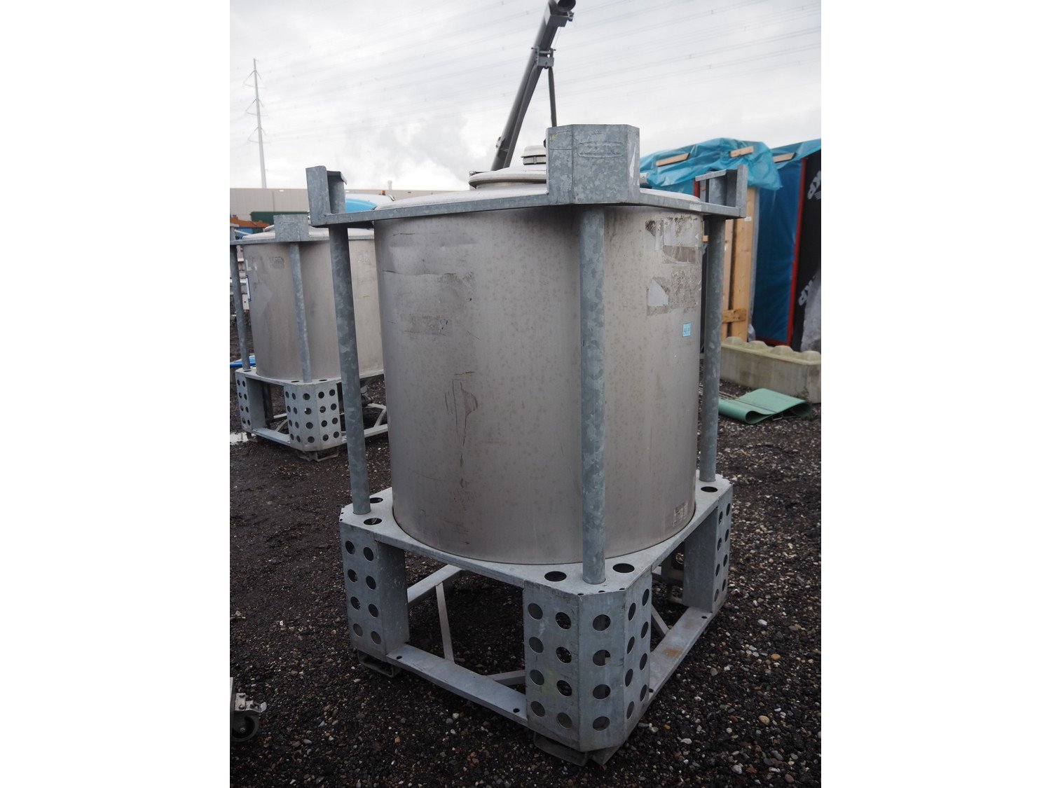 2 Behälter kg - Bremen s/s tanks on steel frames, fabrication number: 37457, year of construction: 11.04, tank dimensions: (2x) Ø 1100 mm x 1400 mm, dimensions frame: (2x) 1150 mm x 1150 mm x 1750.