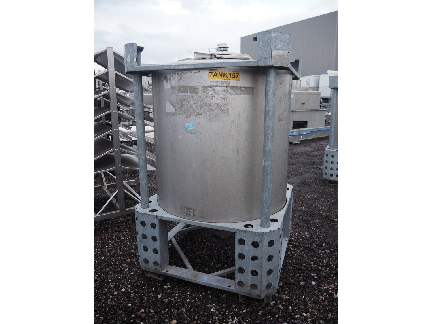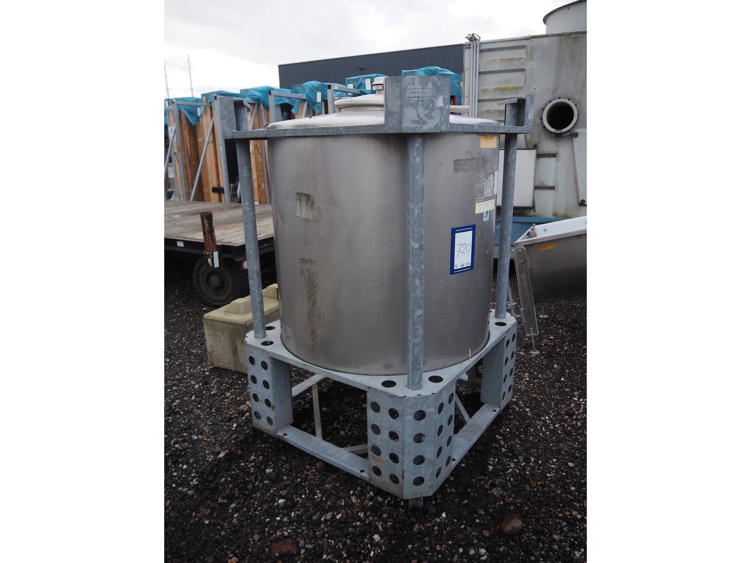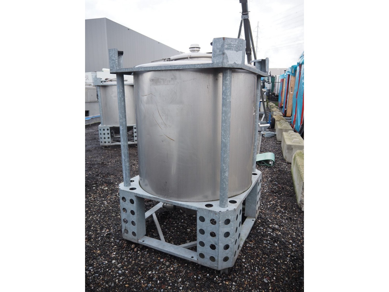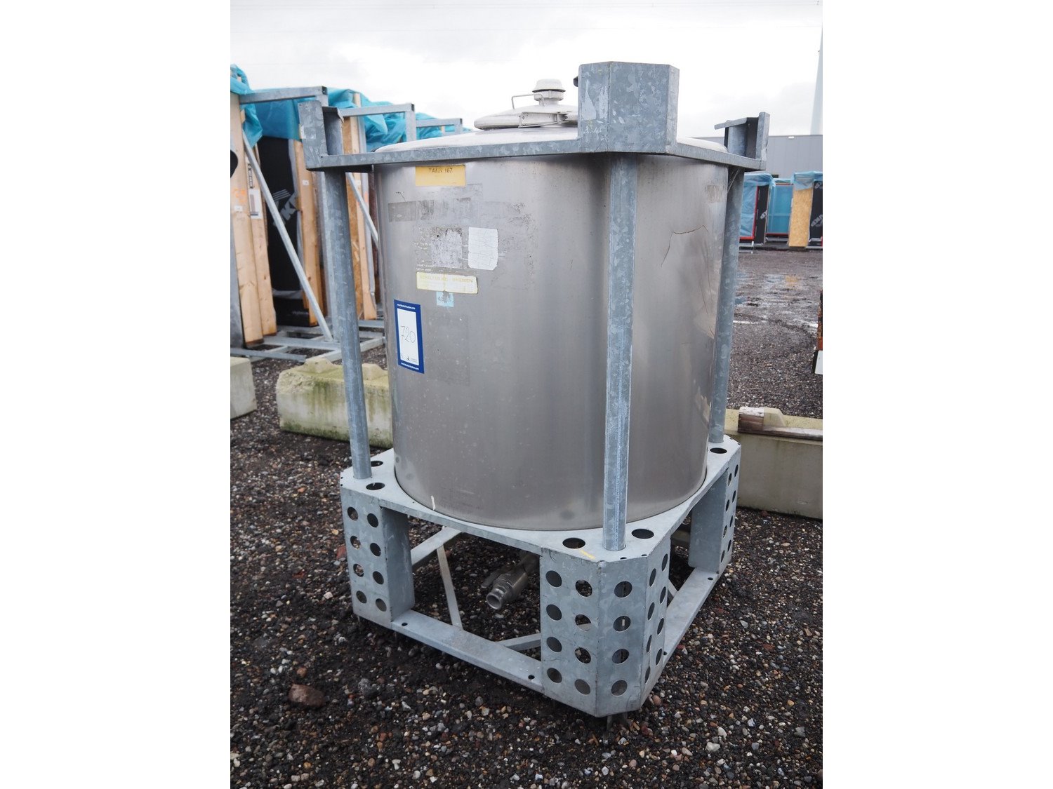 2 Behälter kg - Bremen s/s tanks on steel frames, fabrication number: 37457, year of construction: 11.04, tank dimensions: (2x) Ø 1100 mm x 1400 mm, dimensions frame: (2x) 1150 mm x 1150 mm x 1750.
