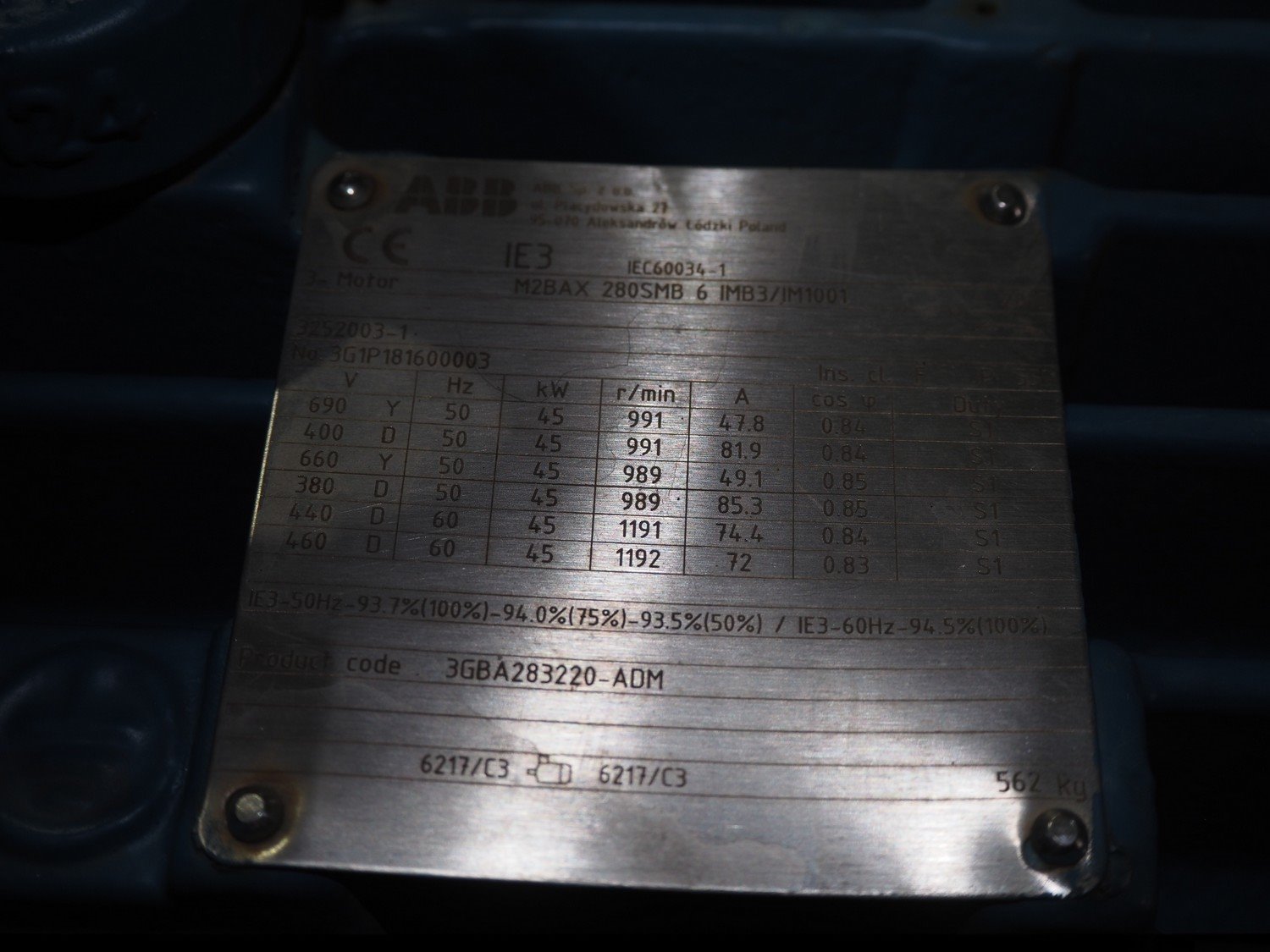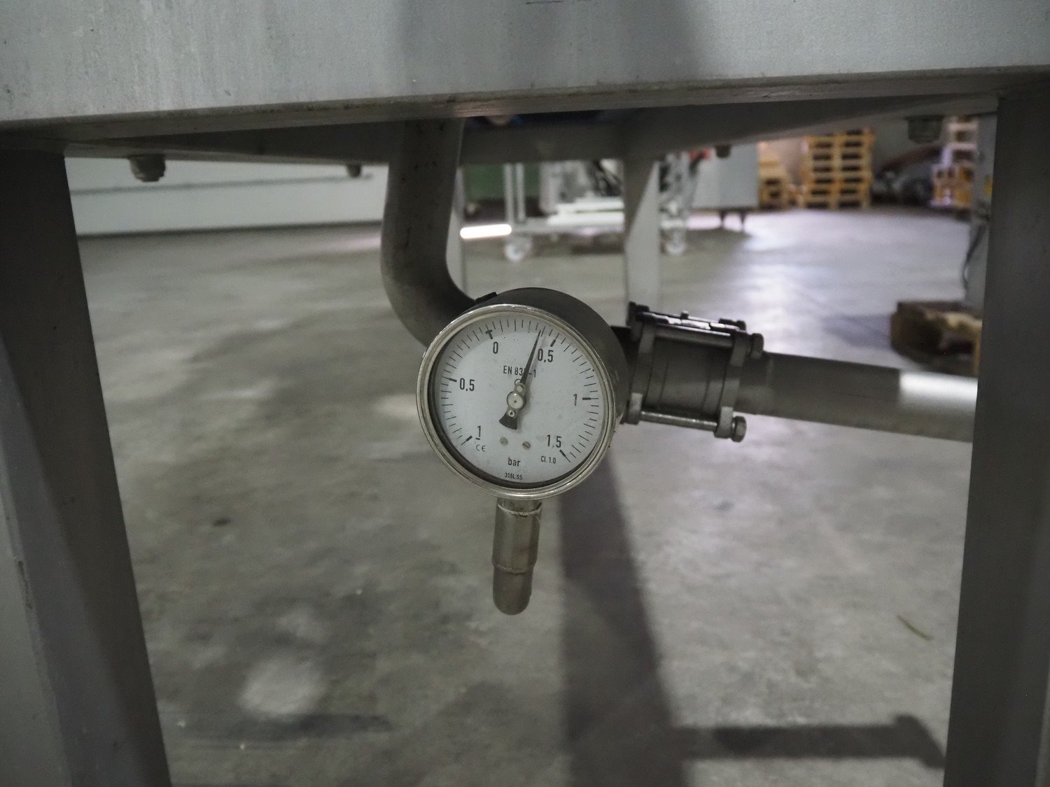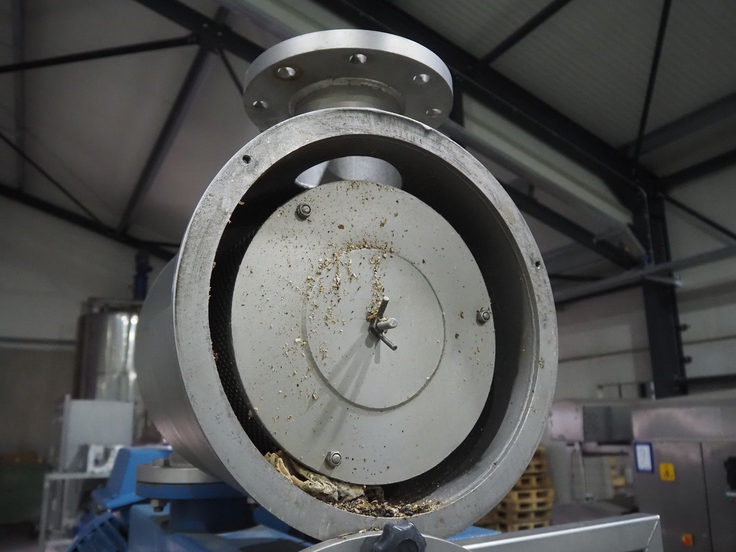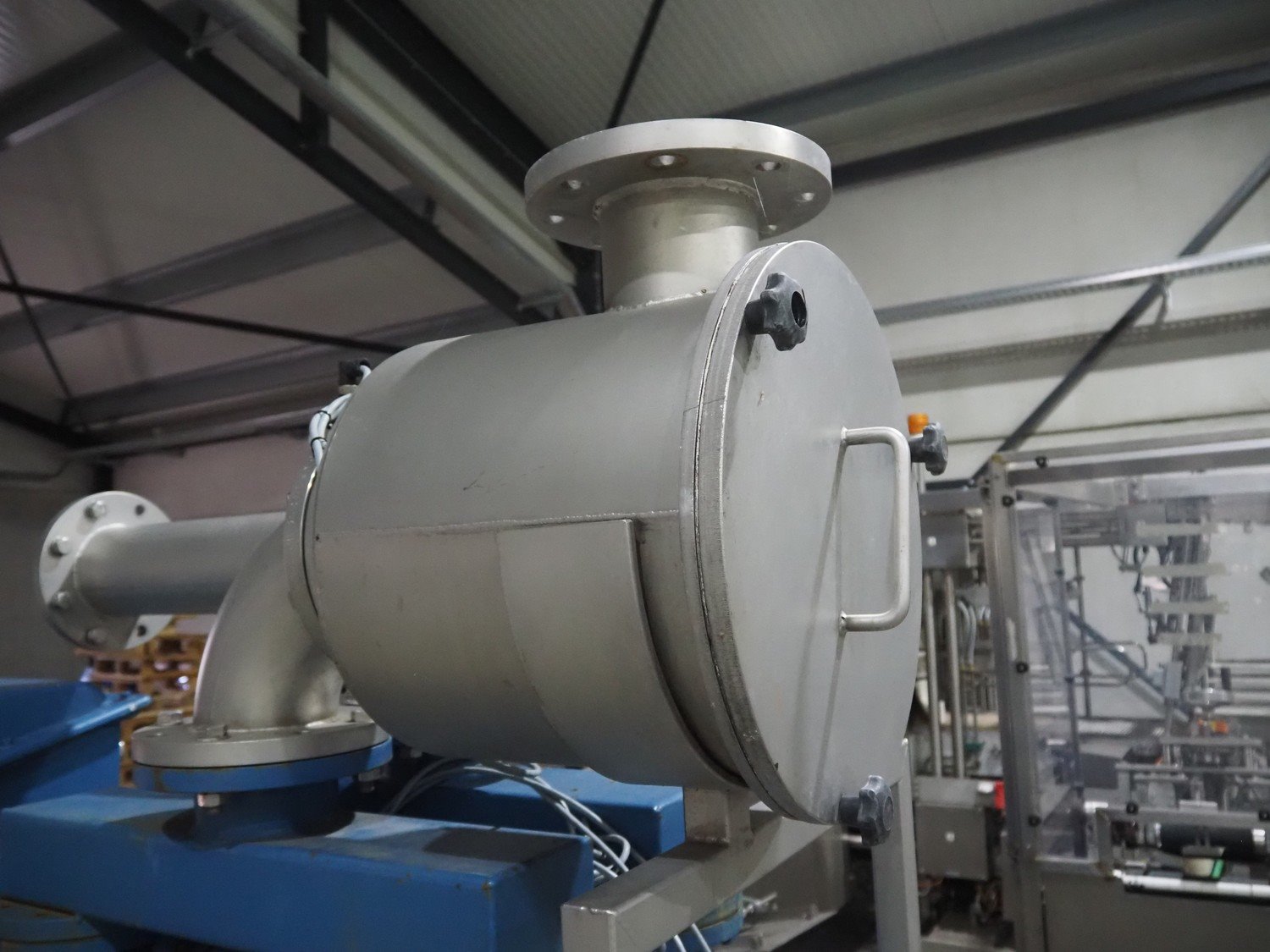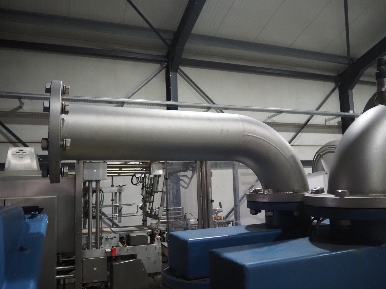 Travaini vacuum pump on s/s frame, type: TRSE 125-1550/XC/RZ, serial number: GG307, year of construction: 2018, weight: 1334 kg, pipe diameter: 120 mm, total dimensions: 2350 mm x 770 mm x 2050 mm.